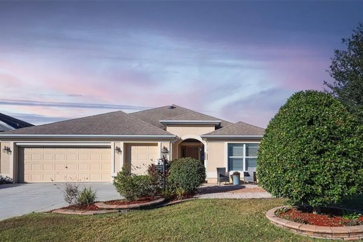 Welcome Home to this beautifully maintained IRIS model located in the desirable Village of Sanibel, perfectly positioned on a LARGE CORNER LOT lot with classic Florida landscaping, flowering palms, and a pavered patio that creates inviting curb appeal from the moment you arrive. NEW IMPROVED PRICE !! Step inside to an open, light-filled floor plan featuring engineered wood and tile flooring, volume ceilings, and seamless flow through the living and dining areas, ideal for both everyday living and entertaining. The kitchen is thoughtfully designed with GRANITE countertops, stainless steel appliances, ample cabinetry that includes 2 add'l pantry cabinets flanking the eat-in nook space, and open sightlines to the main living spaces, making it a natural gathering point for family and friends. The spacious primary suite offers ABUNDANT NATURAL LIGHT, a generous walk-in closet with customized storage, and a relaxing retreat at the end of the day. Primary bathroom is appointed with double vanities, a spacious step-in shower with a bench. Two guest bedrooms are well separated for privacy and both feature customized closets, providing comfortable accommodations for visitors or flexible space for hobbies or a home office. The guest bathroom is nicely appointed with granite and a tub/shower combo. At the rear of the home, the enclosed lanai with privacy shades creates a peaceful extension of the living space, perfect for enjoying the Florida lifestyle year-round. Completing the home is a convenient 2-plus GOLF CART GARAGE with utility sink, offering excellent storage and convenience. Attic is insulated with Radiant Barrier and is equipped with flooring and stand-up storage overhead. HVAC approx 2 years old. Built in 2012. Ideally located just minutes from Brownwood Paddock Square and Lake Sumter Landing, the Village of Sanibel provides easy access to executive golf courses, recreation centers, pools, shopping, dining, and nightly entertainment, making this home an exceptional opportunity to enjoy everything The Villages lifestyle has to offer.