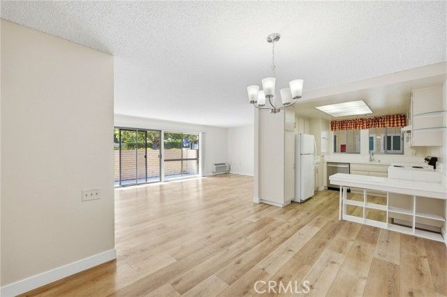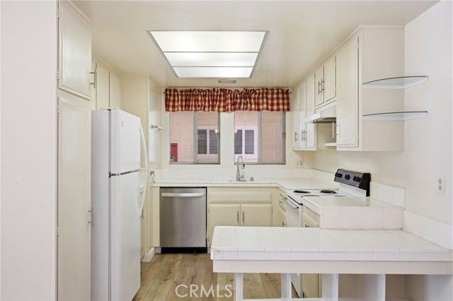 Charming 2-bedroom, 2-bath condo located in the highly sought-after Laguna Woods Village. This desirable single-level, street-level home offers easy access with no stairs and no one above, providing both convenience and privacy. The interior has been refreshed with new plank flooring and fresh paint throughout, creating a clean and inviting living space. Upon entry, you’re welcomed into a spacious living room filled with natural light, highlighted by a large sliding glass door that opens to your own private patio—perfect for relaxing or enjoying the outdoors. The kitchen is fully equipped with all appliances, including a refrigerator, new garbage disposal, and an in-unit washer and dryer for added convenience. Both bedrooms offer direct access to the patio, allowing you to enjoy peaceful mornings and evenings right from your room. The layout includes two well-sized bathrooms—one featuring a walk-in shower and the other a tub/shower combination. Ample closet space and additional storage can be found throughout the home. Ideally situated at the end of a quiet cul-de-sac, this home is part of the vibrant 55+ community of Laguna Woods Village, offering an incredible array of amenities including 5 swimming pools, 2 fitness centers, 7 clubhouses, golf courses, tennis courts, bocce ball, an equestrian center, and much more. Enjoy resort-style living in one of Orange County’s premier active adult communities.