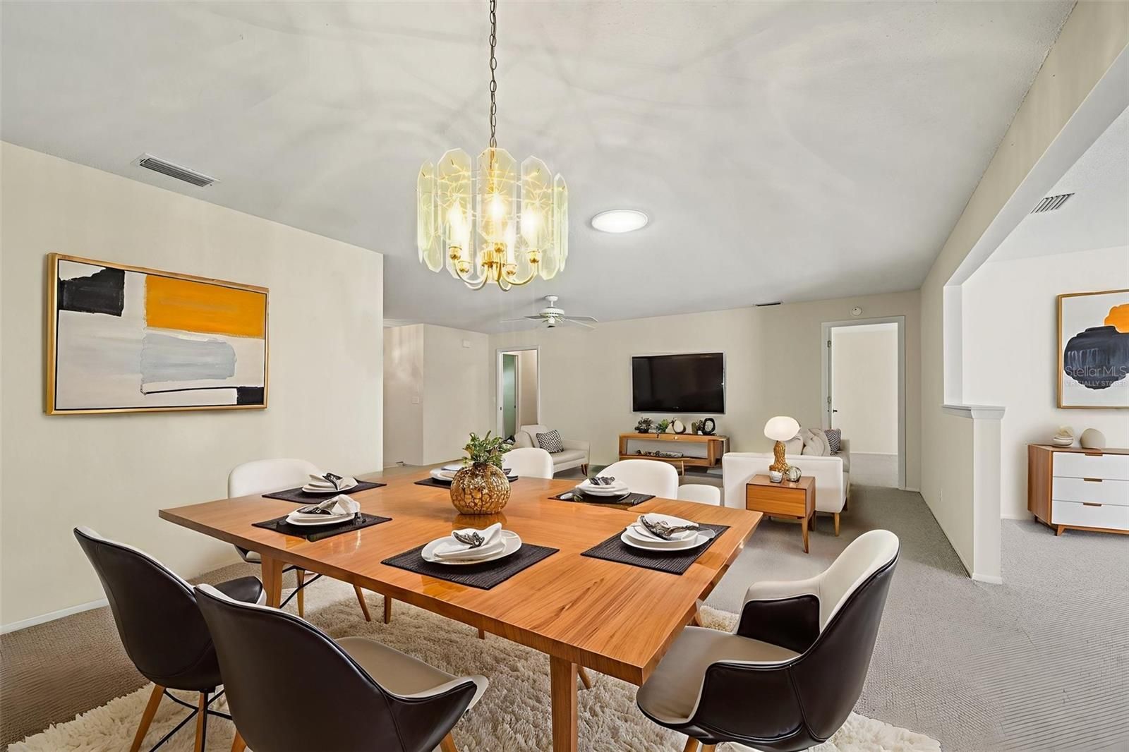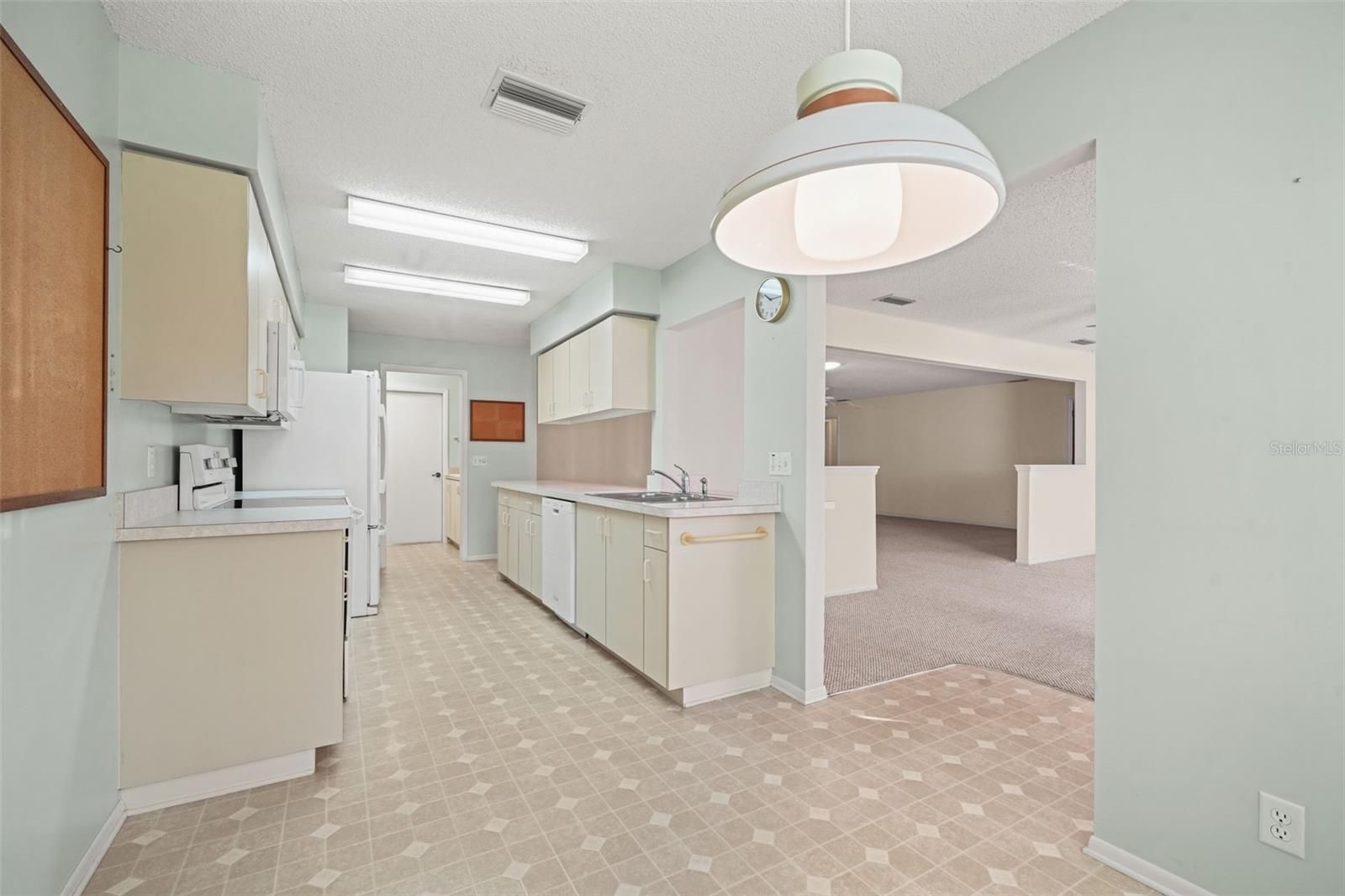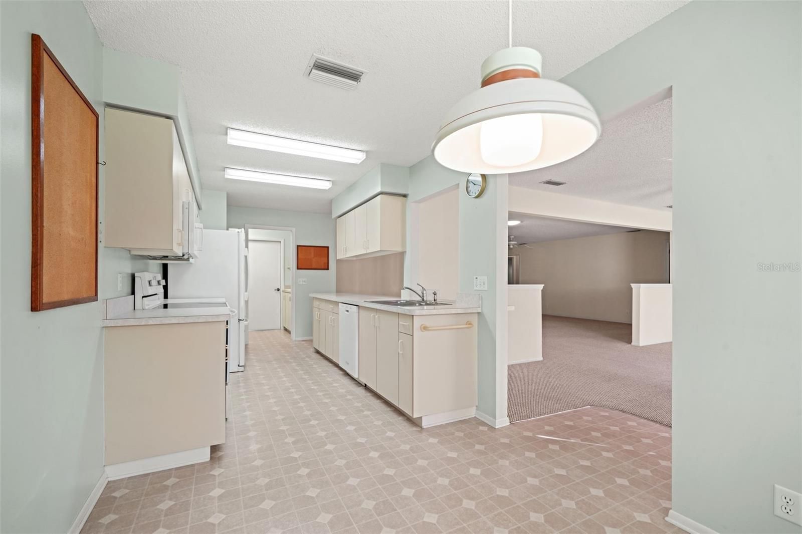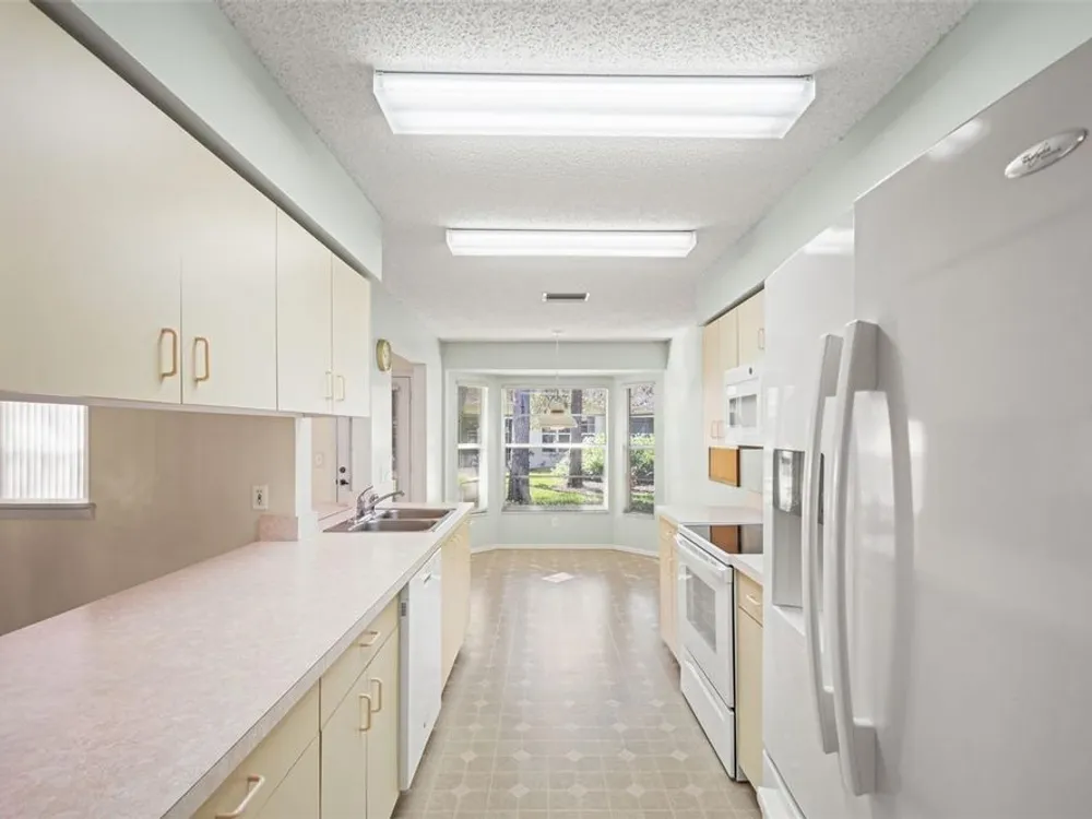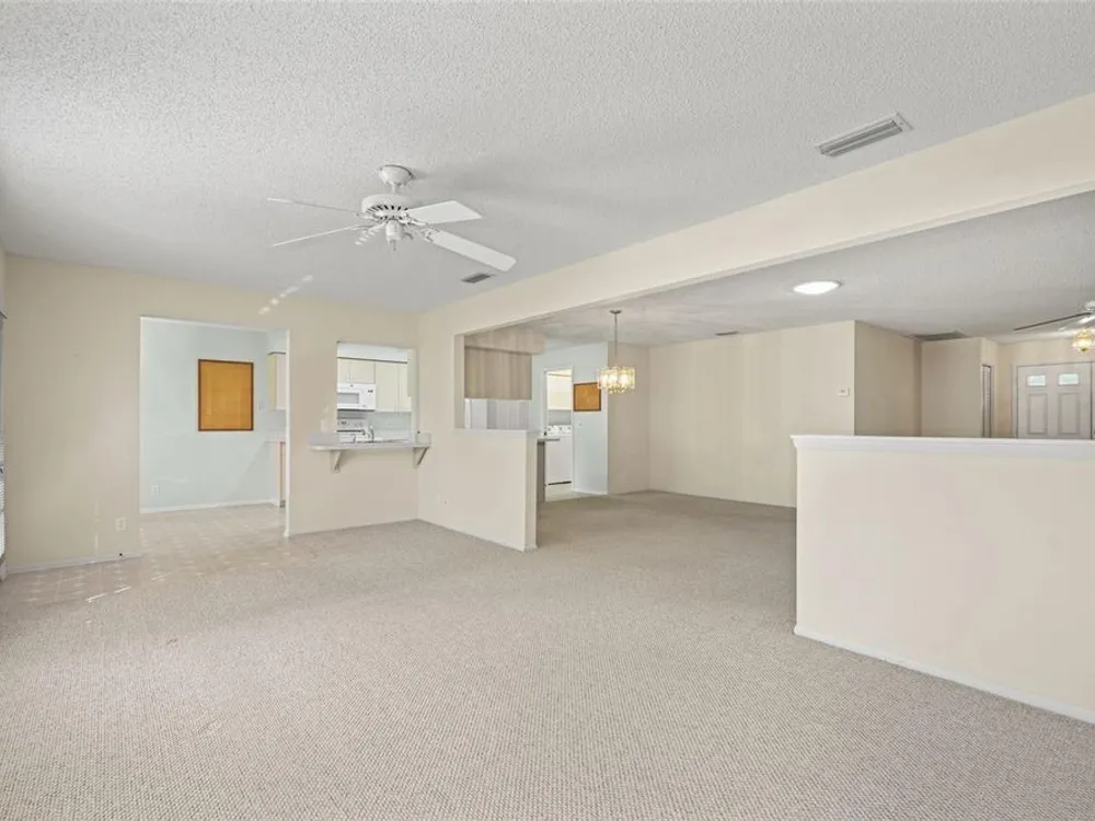 One or more photo(s) has been virtually staged. POPULAR OAKMONT VILLA IN TIMBER PINES! Welcome to this light and bright 2-bedroom, 2-bath villa in the highly sought-after, award-winning 55+ community of Timber Pines. Step through the double door entry into an inviting open floor plan enhanced by solar tubes for natural light. The kitchen features a cozy eat-in nook, pantry, and newer appliances, while the inside laundry room offers built-in cabinets for added convenience. The spacious primary suite includes two walk-in closets and a private bath with a raised-floor shower, dual sinks, and a linen closet. The guest bedroom is perfectly sized, with an adjacent bath featuring a tub/shower combo for visitors' comfort. Additional highlights: Screened garage, Water heater (2022), Attic flooring for extra storage. Close to Country Club. This villa is the perfect blend of comfort, function, and community living. Enjoy the Timber Pines lifestyle with world-class amenities including Four golf courses, Clubhouse, Restaurant, Performing Arts Center, Pools, Pickleball, Tennis, Fitness Center, Wood shop, Arts and Crafts,and so much more! Spectrum High Speed internet and 2 cable boxes included in HOA.