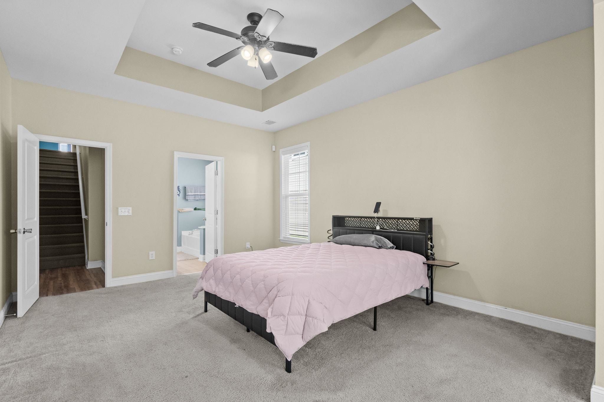 - Tray Ceiling(s), Ceiling Fan(s), Dual Sinks, Garden Tub/Roman Tub, LinenCloset, Main Level Primary, Sitting Area In Primary Bedroom, Split Bedrooms, Separate Shower, Vanity, Walk-In Closet(s), Window Treatments, Breakfast Bar, Bedroom on Main Level, Stainless Steel Appliances, Solid Surface Counters