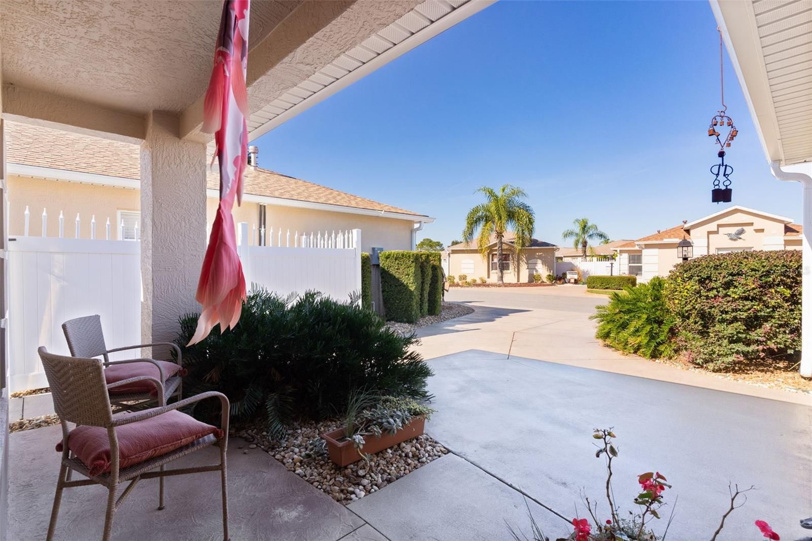 Introducing this STRETCHED CORNER LOT Grantham Courtyard Villa in the Village of Belle Aire! Meticulously maintained and move-in ready, this beautifully upgraded home offers comfort, convenience, and peace of mind from day one. Recent updates include a newer roof, tankless water heater, and a recently replaced HVAC system. Additional thoughtful features—such as Hunter Douglas shades in the living room and bedrooms, epoxy-sealed driveway, whole-house water softener, and whole-home surge protector—show the pride of ownership throughout. Step inside to discover a bright, open floor plan with granite countertops, a soft, neutral color palette, and seamless flow into the covered lanai and spacious birdcage—perfect for relaxing or entertaining. The stretched courtyard provides extra outdoor living space with room for a pool, and with no grass to maintain, you’ll enjoy a truly low-maintenance lifestyle. With three generous bedrooms and abundant natural light, this villa feels both airy and welcoming. Every detail has been designed for effortless living—so you can move right in and start enjoying all The Villages has to offer. The Villages lifestyle is unmatched, featuring over 3,000 clubs, 107 recreation centers, 259 pickleball courts, 792 golf holes, 8 dog parks, 100 pools, and dozens of restaurants and shops—plus nightly entertainment across three town squares (and a fourth coming soon!). Conveniently located near the Savannah Center and Sharon Morse Center, this home puts you right at the heart of it all. Start living your Villages dream today—no renovations required!