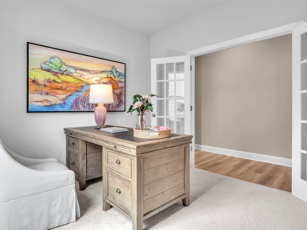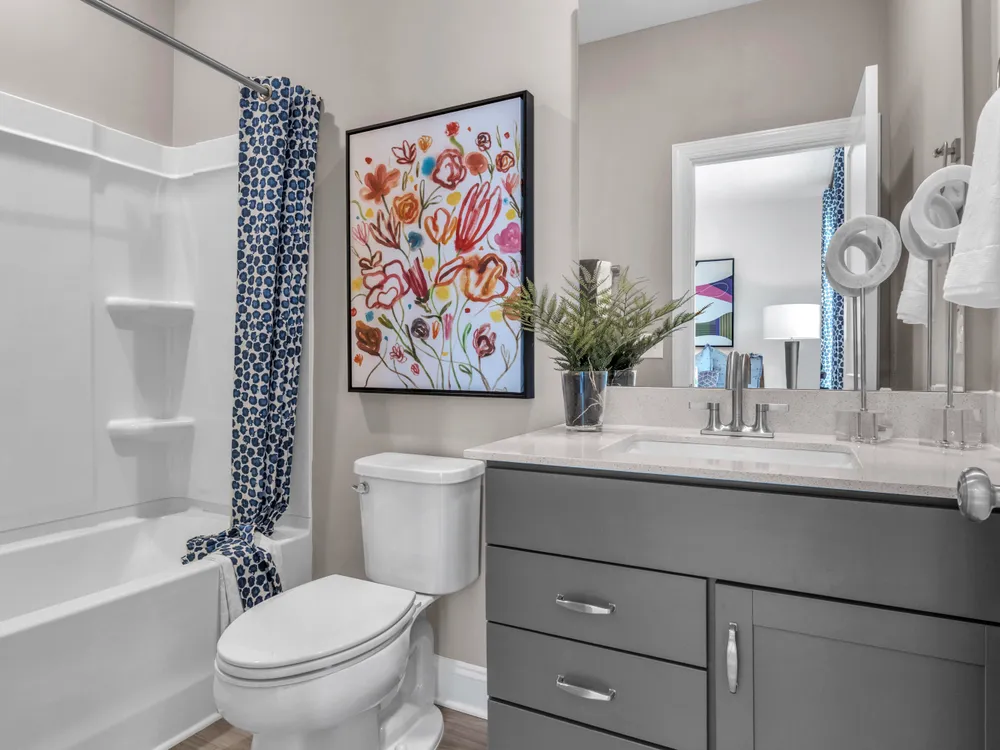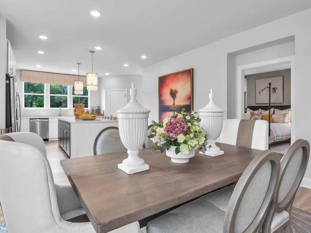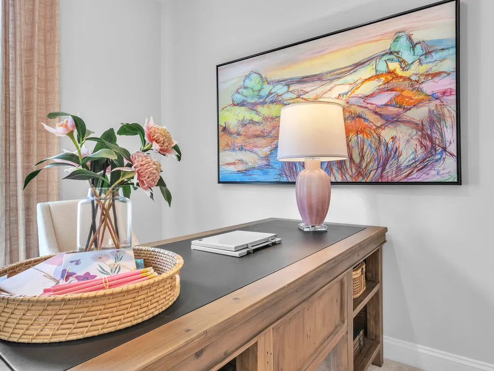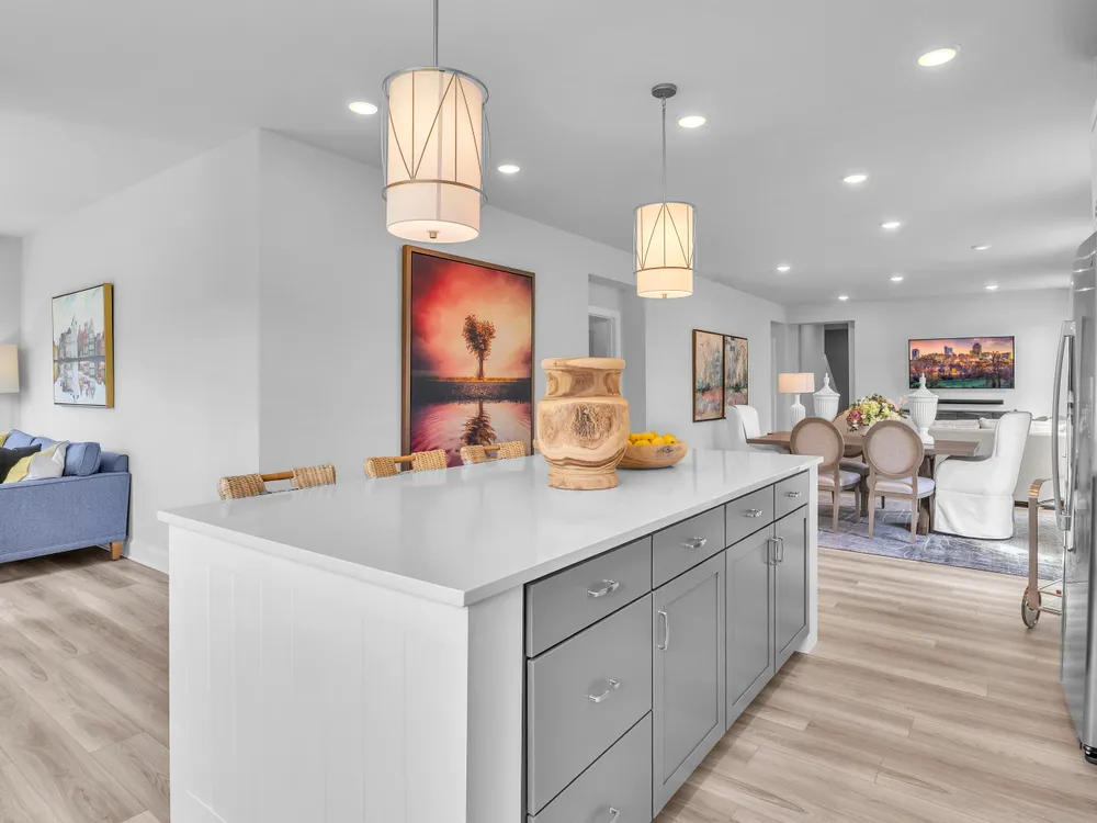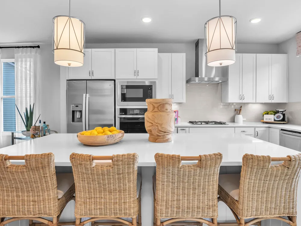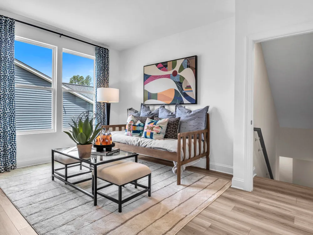 Welcome to Stanley Martin's Mackintosh — your perfect place of peace and relaxation! This beautifully updated 3-bedroom, 3-bath home combines modern finishes with the ease of main-level living and the added versatility of a finished upstairs retreat. Thoughtfully designed for both comfort and style, it's the ideal place to unwind or entertain. As you enter, a versatile flex room greets you—perfect for a home office, den, or creative space. At the heart of the home, a spacious family room flows effortlessly into the screened patio, filling the space with natural light and creating the perfect spot to relax with your morning coffee or host friends. The open kitchen features a large island, abundant counter space, and easy access to your private outdoor living area, making entertaining a breeze. The main level offers two bedrooms, including a peaceful primary suite with a double-vanity bath and a generous walk-in closet. A second bedroom off the main living space provides comfort and flexibility for guests or hobbies. Upstairs, the finished loft includes a third bedroom and full bathroom, creating a private retreat for visitors, family, or your own personal getaway. A two-car garage provides added convenience and extra storage. This move-in ready gem perfectly blends comfort, functionality, and low-maintenance living in a serene setting. Don't miss your chance to make The Mackintosh your new home—schedule your showing today!