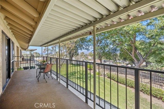 PANORAMIC TREETOP AND MOUNTAIN VIEWS. This popular "CASA VISTA" model has NO STAIRS, no one above, and an end location, which features in-unit laundry and is situated above an expansive greenbelt with beautiful open views from the balcony. The model offers the relaxed indoor-outdoor lifestyle that many buyers seek in Laguna Woods. The sliding glass doors in the living room open to an extra-long covered balcony, perfect for morning coffee, afternoon reading, and barbecuing while you enjoy the scenery. Also, a fantastic location between gates 7 and 8. The kitchen offers abundant cabinetry, solid custom surface counters, a breakfast and serving bar, and a full suite of appliances, including a cooktop, wall oven, microwave, dishwasher, and a side-by-side refrigerator. Both bedrooms are generous. The primary suite features a large walk-in closet and an ensuite bath. The guest bedroom opens directly to the balcony, offering views and fresh breezes, along with natural light. The hall bath features a convenient step-in shower and a stacked washer and dryer, a coveted feature in this community. Added comforts include multiple ceiling fans, wall AC units, neutral finishes, and excellent storage. This is an all-around wonderful home in every way possible! Add all this to the amenities offered by Laguna Woods Village. You have a winning combination -- 27-hole championship golf courses or the 9-hole executive par three courses, tennis, paddle tennis, lawn bowling, two fitness centers, seven clubhouses, five swimming pools, an equestrian center, gardening opportunities, an art studio, a world-class woodshop, over 200 clubs and organizations ensure you will never get bored here! Plus, free bus transportation around the community, nearby shopping, and bus trips. Also, there is a very economical RV storage area to park your RV. Country Club Living is at its BEST and just approximately 6 miles from beautiful Laguna Beach! Discover the best-kept secret in Orange County. Your dream lifestyle awaits—do not miss this rare opportunity! "SEE VIRTUAL VIDEO" and 3D TOUR"