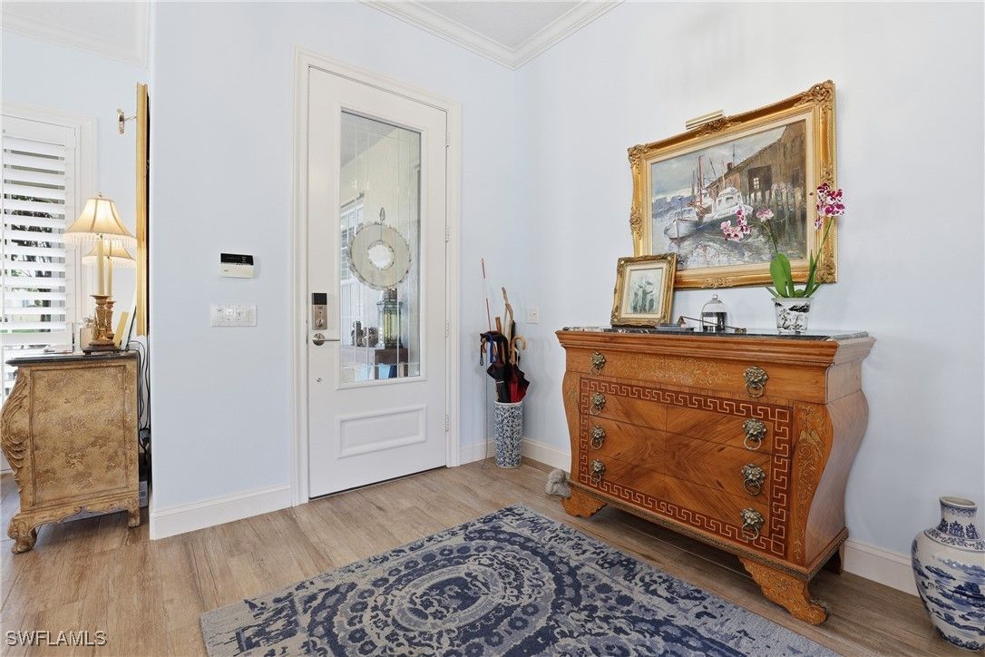 Welcome to one of the most sought after, amenity rich communities in all of Naples: Island Walk. With a five-star restaurant, lap pool, and resort style pool, you can enjoy vacation like amenities in your own neighborhood. Live an active lifestyle? Enjoy the mature growth vegetation throughout the neighborhood, which paired with the many lakes and canals provide an incredible backdrop for the many activities available to you. A list including bocce, lawn bowling, a putting green, racquet sports, pickleball, tennis, a fitness center, and even a library, there's no shortage of things to do in this one-of-a-kind community. Step into this beautifully remodeled Carlisle model, and know that you won't be left wanting. A state-of-the-art kitchen with an induction cooktop, wine cooler, microwave drawer, double-oven, and a fridge with a Keurig attachment, it's more than ready for you to host the dinner party of your dreams. Not to mention a ceiling vent as to not obstruct your view, and a variety of double drawers to give you the easiest access to everything you need. With a spacious open floor plan and high ceilings, paired with the beautiful lanai and re-finished pool, you'll never want to leave home. Just when you think there couldn't be any more features, enjoy the central vacuum, closet built-ins, surround-sound wiring, and security system. Seemingly everything in the home has been taken care of so you don't have to, including a recent cleaning and sealing of the tiled roof, driveway, and rear patio. A home like this is a rare find, you don't want to waste any time before coming to see this beauty for yourself. The robust community of Island Walk is ready... this rare and incredible home is ready... Are You?