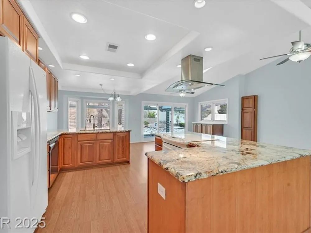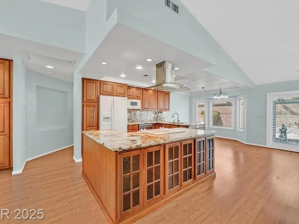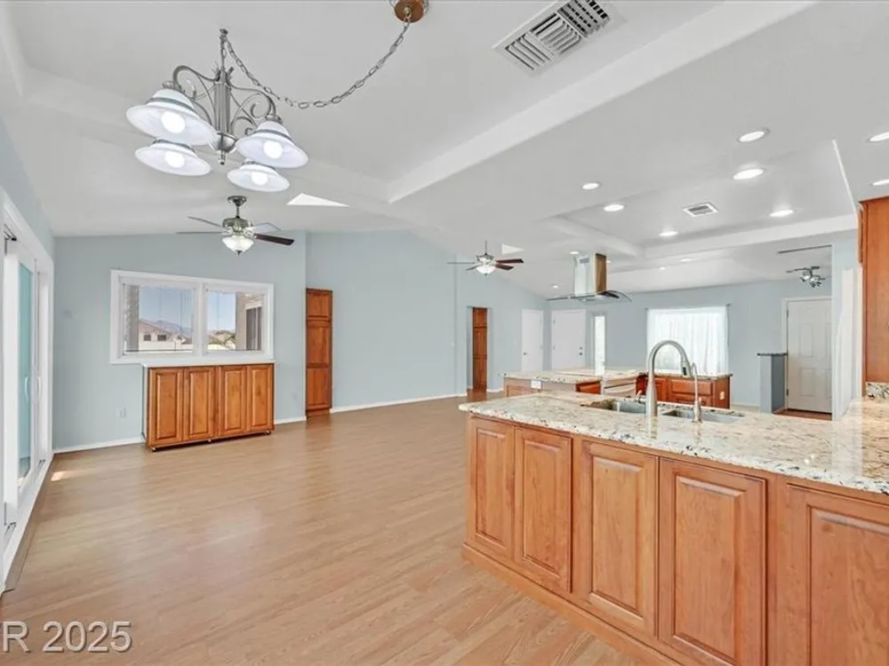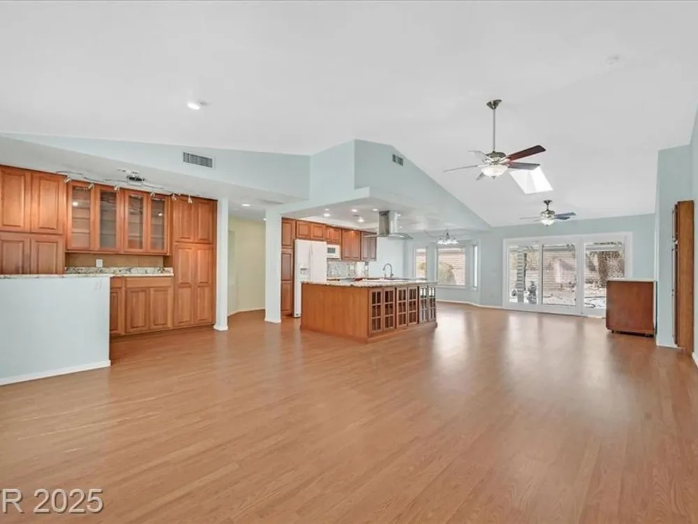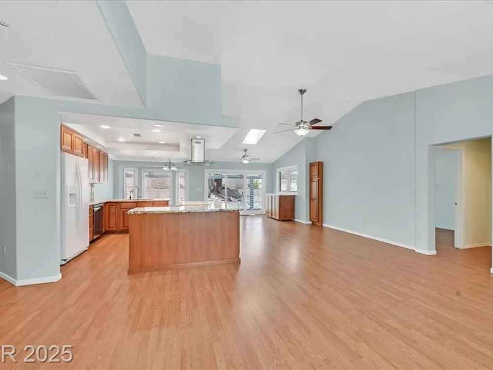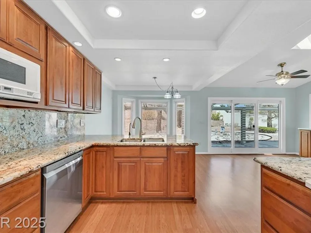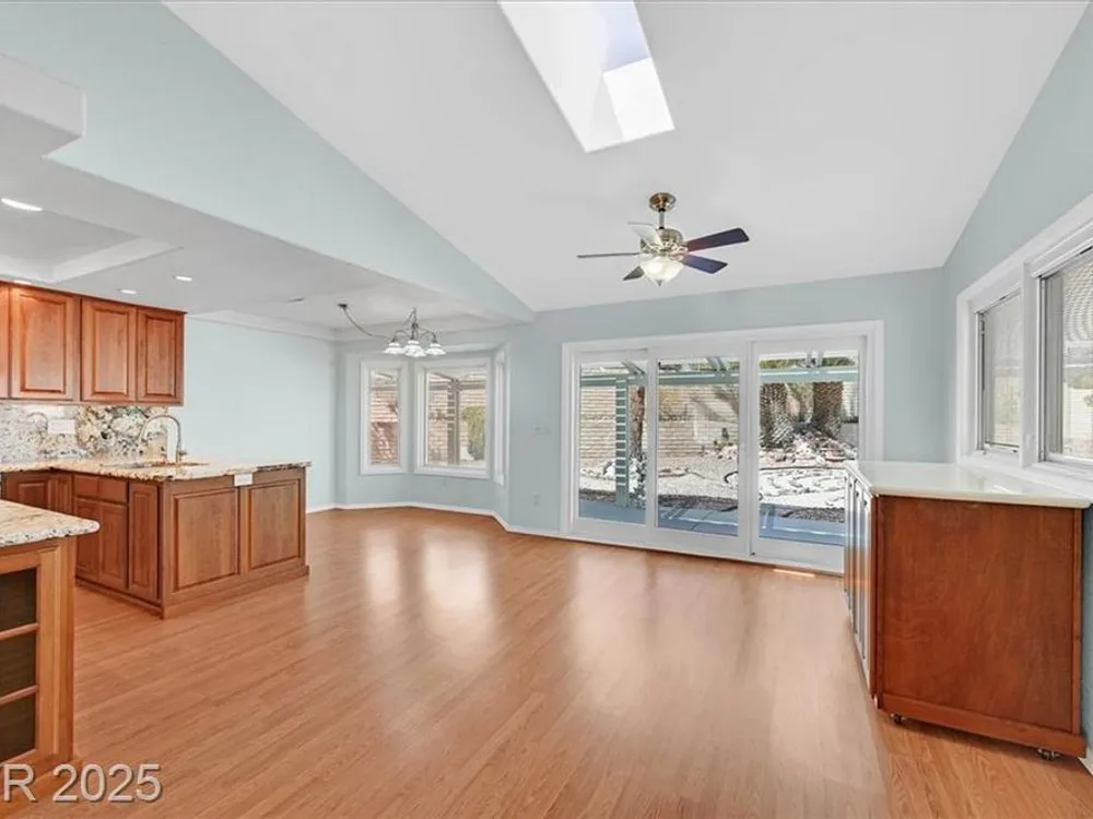 Great home! Nicely remodelled and reconfigured kitchen with abundant granite countertops, granite backsplash, island, and custom cabinets w/ pullout drawers. Nice bar/coffee area. Second custom island that rolls. Most windows are new and all are "newer". Several windows have integated blinds between the panes. Paid off solar! (Power bill averages around $15/mo) Nicely remodelled primary bath with roll in shower and basin sink. Almost 1/3 acre lot with fruit trees and plenty of garden areas. Finished garage has plenty of cabinets, a work bench, and extra golf cart storage. Sun City Summerlin has 2 champoinship golf courses, one exectuive golf course, and 4 world class clubhouses!