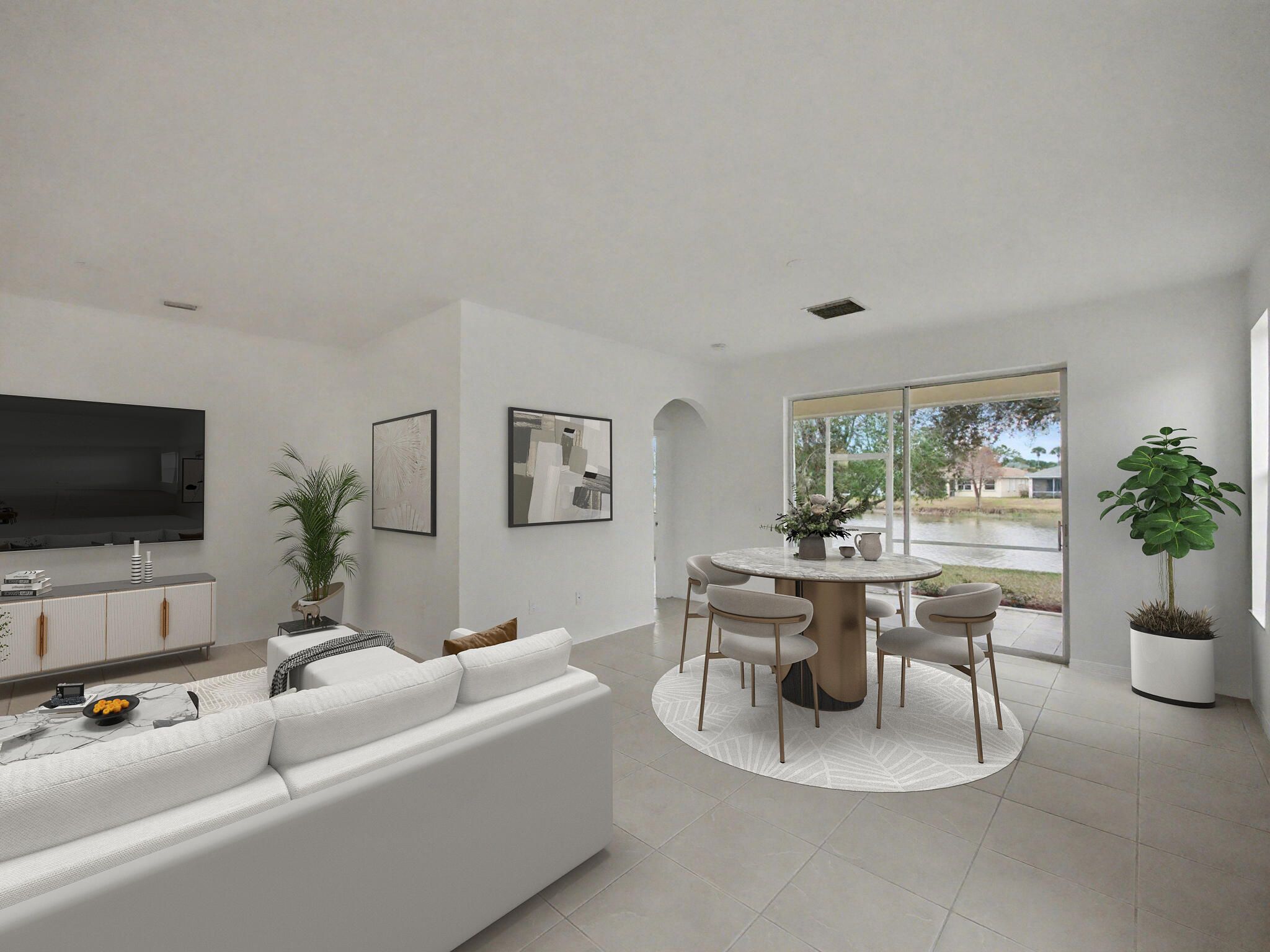 Welcome to this move-in ready 3 bedroom, 2 bathroom lakefront home in Lakeforest Pointe in Port St. Lucie offering beautiful water views and a spacious open floor plan. This well-maintained Port St. Lucie waterfront home features tile flooring throughout, providing durability, easy maintenance (Including a NEW Water Heater 2026), and a new roof (2026). The bright and open living and dining areas overlook the lake, filling the home with natural light and showcasing peaceful waterfront views. The kitchen offers ample cabinetry and counter space and flows seamlessly into the main living areas, perfect for entertaining or everyday living. The primary suite features serene lake views, a private ensuite bathroom, and generous closet space. Two additional bedrooms provide flexibility for guests. Enjoy Florida living outdoors with relaxing lake views right from your backyard. Accordion shutters provide added storm protection and peace of mind. Located in the desirable Lakeforest Pointe in Port St. Lucie, this gated community offers residents a large resort-style pool and secure entrance, enhancing both lifestyle and security. Conveniently close to shopping, dining, schools, parks, and major highways, this waterfront property combines comfort, convenience, and community amenities.