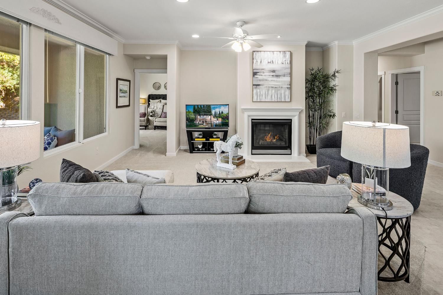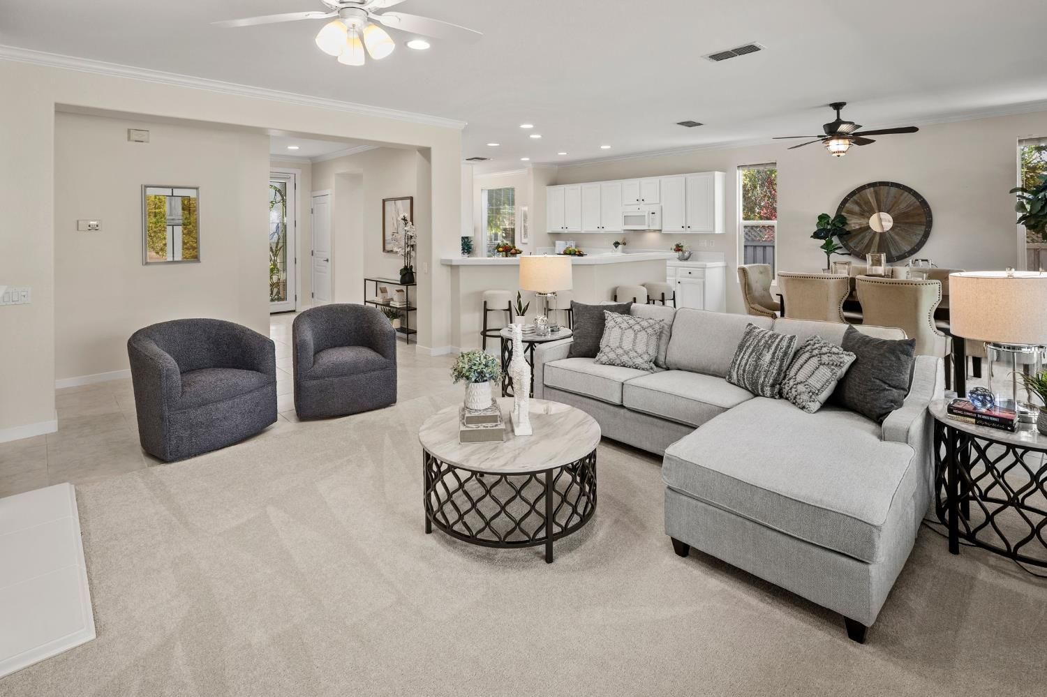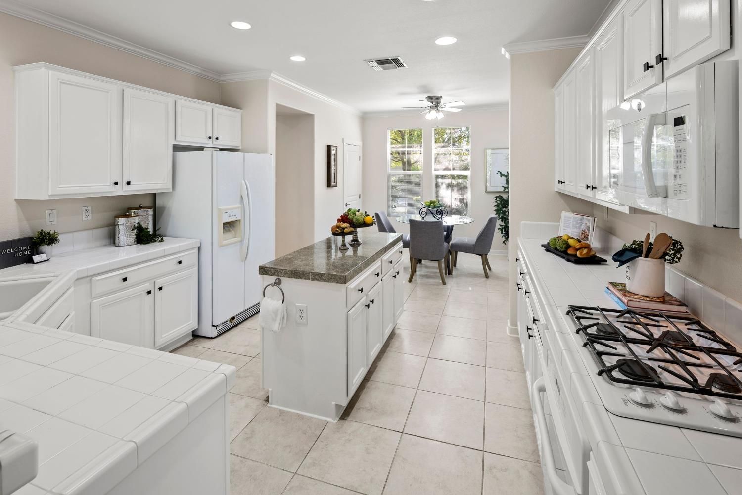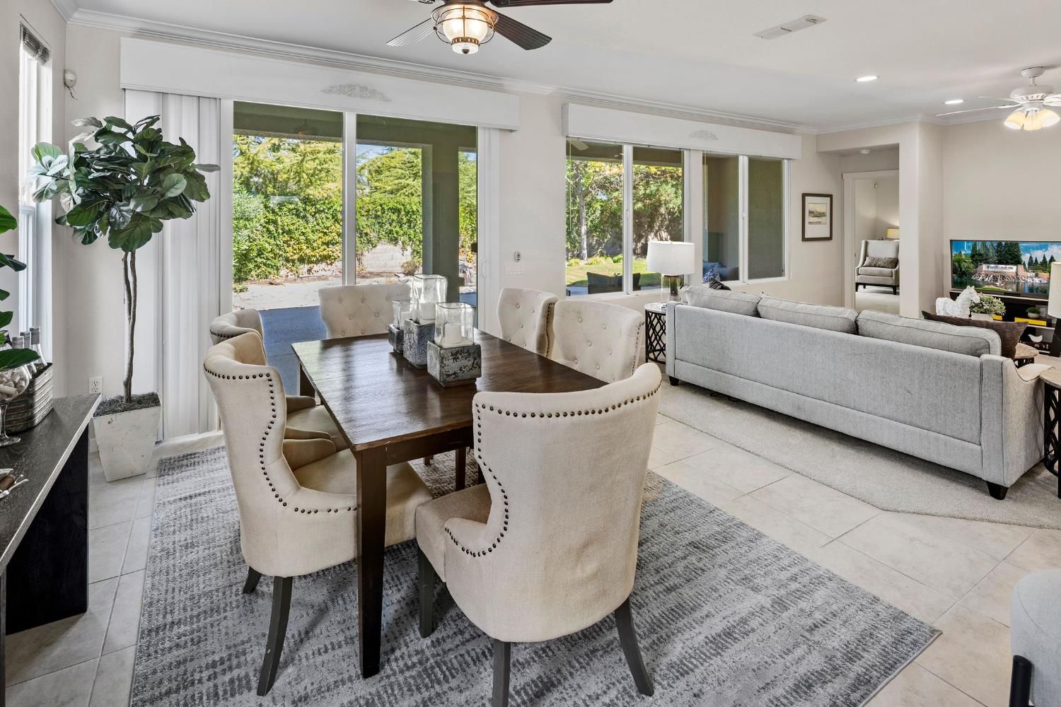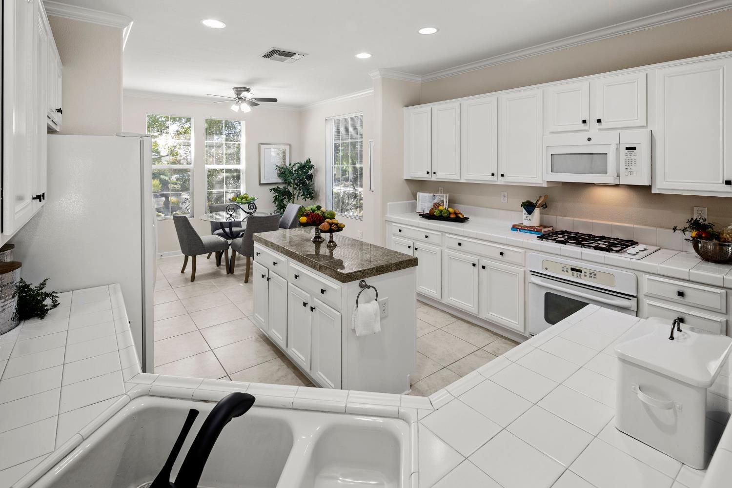 Fresh to market! This El Dorado Floor Plan in the Sun City Lincoln Hills active adult community is ready for you. This home features 3 bedrooms and 2 bathrooms, anchored by a large great room with a cozy gas fireplace adjoining the dining room. The light and bright kitchen is a chef's delight, offering white cabinetry, a gas cooktop, a built-in oven, and a center prep island with granite tile. It also includes a pantry closet and a sunny breakfast nook that overlooks the front yard. Retreat to the oversized master suite after a long day. It boasts a large walk-in closet and outside access to the backyard. The master bath pampers you with a large soaking tub, an updated shower, and dual sinks. The guest side of the home features an inviting guest bedroom and an updated bathroom with a tiled shower stall. Convenience is key with an inside laundry room and an expanded 2.5-car garage, both offering extra storage cabinets. Outside, the covered patio with a soothing water feature is the perfect place to enjoy early evening dinners.