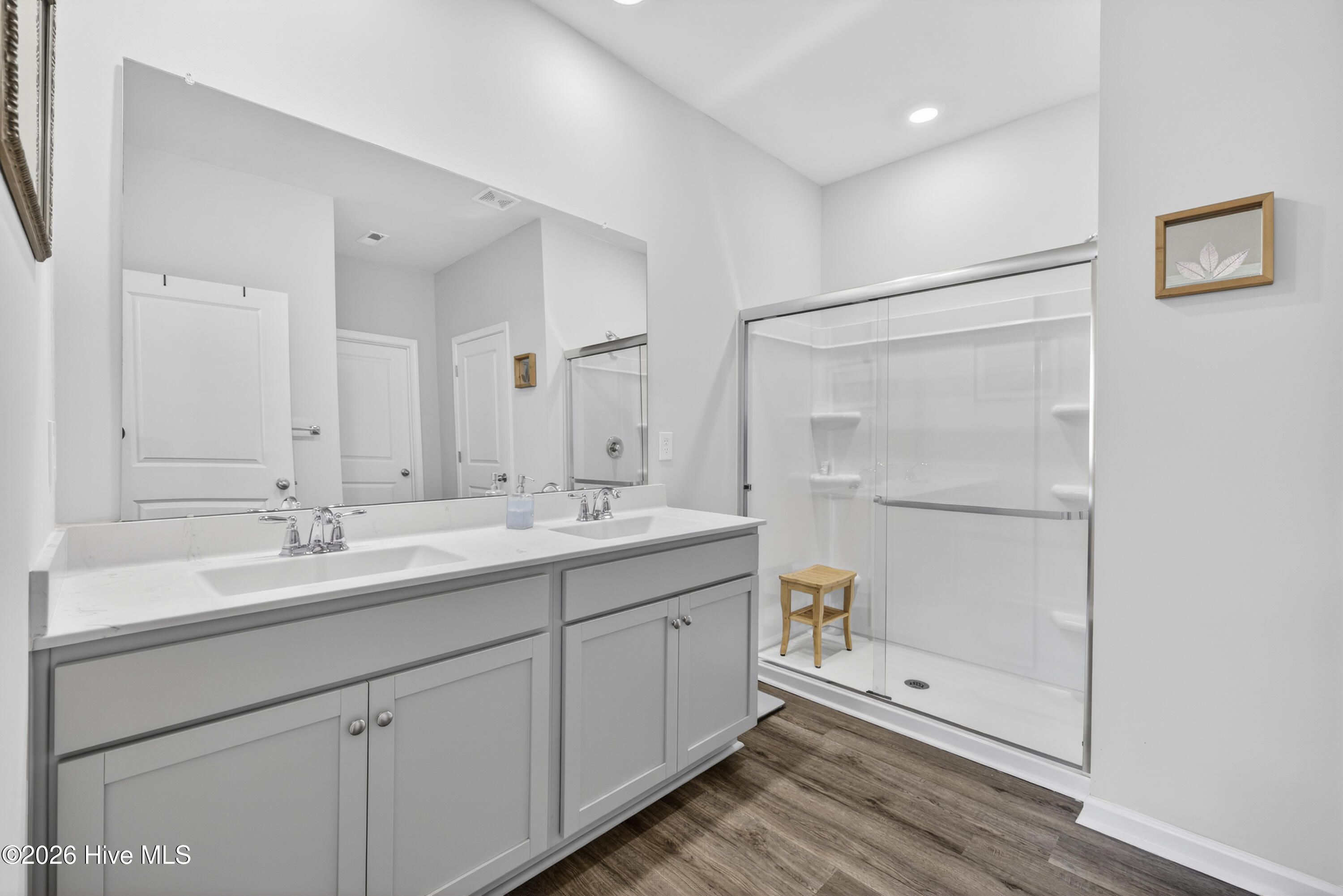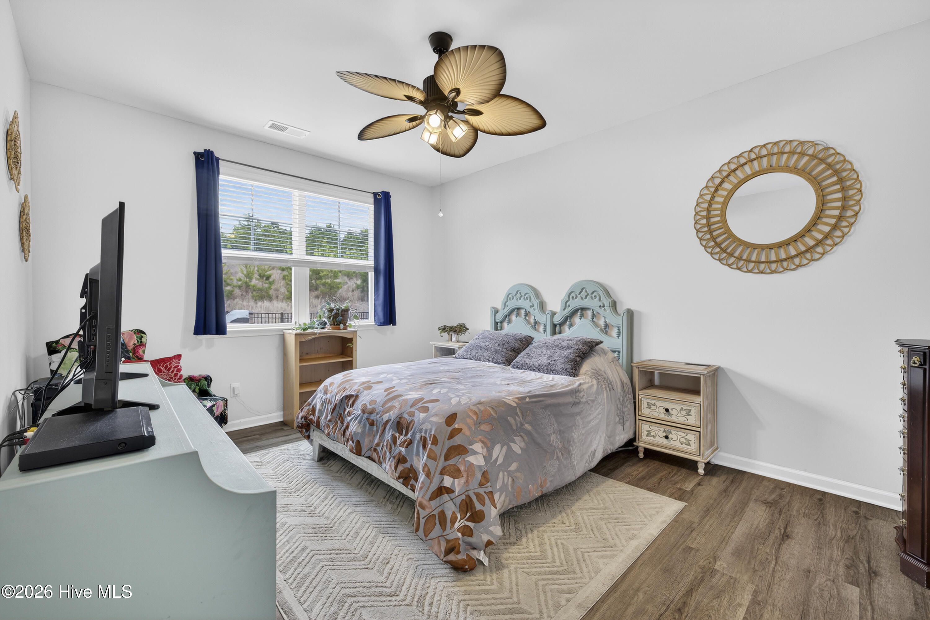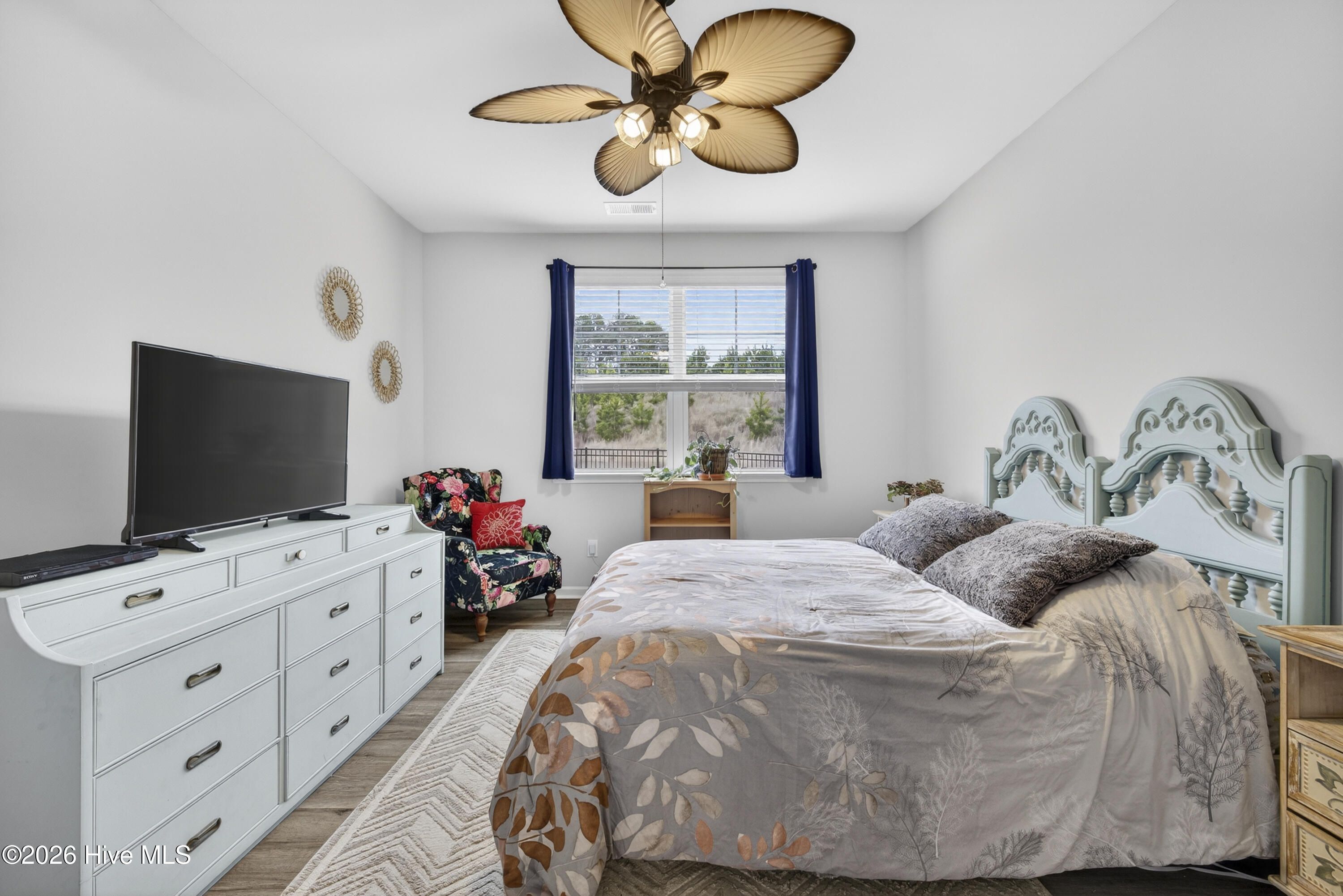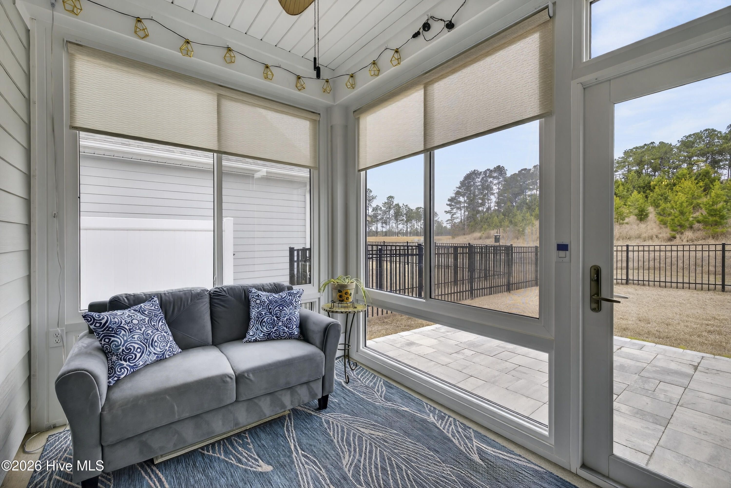 Located in Hazel Branch at Brunswick Forest, 3113 Lochgreen Drive features the popular Cali floorplan--a spacious one-story home with four bedrooms and an open-concept layout designed for comfortable living and easy entertaining. The kitchen offers granite countertops, stainless steel appliances, including a natural gas stove, and a large island that flows seamlessly into the living and dining areas. LVP flooring runs throughout the living areas and all bedrooms. The primary suite is located off the main living space and includes an ensuite bath along with a walk-in closet and a second large closet for extra storage. Three additional bedrooms and a shared bath are situated toward the front of the home. A bright sunroom overlooks the fully fenced backyard and opens to patios that create inviting outdoor spaces for relaxing or entertaining. The home also includes ADT smart home technology with a touchscreen interface, video doorbell, smart thermostat, and door lock, along with a natural gas water heater. Lawn maintenance is included in the HOA dues, allowing for low-maintenance living while enjoying Brunswick Forest's resort-style amenities, including outdoor pools and an indoor pool, fitness and wellness centers, tennis and pickleball courts, basketball, parks, a dog park, and miles of walking trails. The Villages at Brunswick Forest are located at the community entrance and offer convenient access to restaurants, medical offices, shops, and a grocery store. Historic Downtown Wilmington and the beautiful beaches of Wrightsville Beach, Carolina Beach, and Oak Island are just a short drive away, offering the perfect balance of comfort, community, and coastal living.