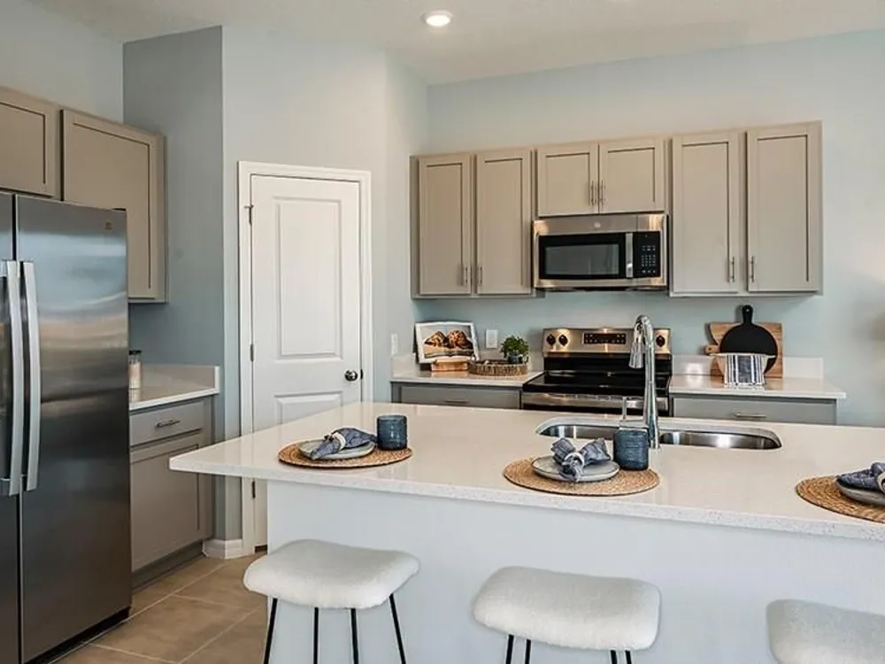 Under Construction. What's Special: Low HOA Dues | Popular Plan | White Cabinets. New Construction - March Completion. Built by Taylor Morrison, America's Most Trusted Homebuilder. Welcome to the Jasmine at 3113 Novara Lane in The Townhomes at Azario Lakewood Ranch. This thoughtfully designed new townhome offers a bright, open layout that’s perfect for modern living. Step through the front porch into the heart of the home, where the great room flows seamlessly into the kitchen and dining area. The kitchen features a large island that’s ideal for casual meals and entertaining, while the spacious outdoor patio invites you to enjoy Florida living at its best. A convenient half bath and one-car garage complete the first level. Upstairs, you’ll find two secondary bedrooms, a full shared bath, and a generous primary suite with a walk-in closet and a private bath with dual vanities. The laundry area is also upstairs for added convenience. With thoughtful storage solutions, including a large pantry, under-stair storage, and multiple closets, this townhome is as functional as it is stylish. Azario at Lakewood Ranch welcomes you with lush landscaping, a boutique townhome setting, and resort-style amenities like a sparkling pool and pet park. As part of the Lakewood Ranch masterplan, the top-selling multigenerational community in the nation, you’ll enjoy easy access to shopping, dining, and recreation, all designed to complement your carefree Florida lifestyle. Additional Highlights Include: Refrigerator, washer and dryer, extended flooring through great room, and whole house blinds. Photos are for representative purposes only. MLS#A4666704