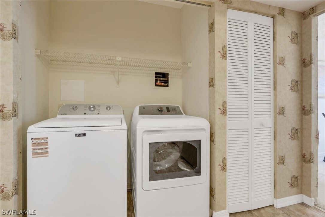 - Dryer, Dishwasher, Disposal, Microwave, Range, Refrigerator, Washer