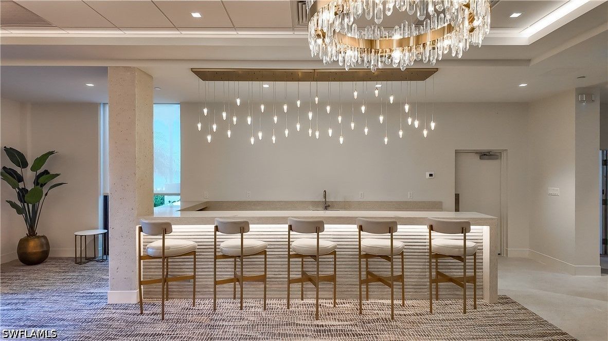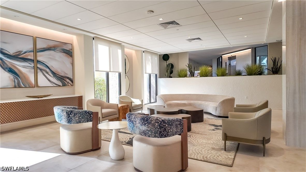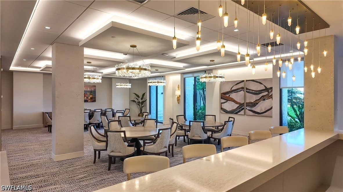 Positioned on the 7th floor of the esteemed Lausanne in The Moorings, this beautifully finished residence blends elegance, comfort, and coastal sophistication with stunning views of Moorings Bay. This meticulously crafted 2 bedroom, 2.5 bath sanctuary offers over 1,500 square feet of thoughtfully designed living space, highlighted by an open balcony where you can enjoy serene morning sunrises and refreshing Gulf breezes. Every detail radiates warmth, from the refined custom finishes to the open concept layout that seamlessly connects the kitchen, great room, and dining area, creating an inviting setting for both relaxation and entertaining. The spacious primary suite is an oasis of tranquility with a generous walk in closet and dedicated office space, while additional features include a wet bar with wine refrigerator, stainless steel appliances, and in-residence laundry. A deeded under building parking space adds convenience and value. Lausanne is a premier high-rise community on the largest beachfront parcel in The Moorings, offering a tropical pool oasis with a resort style swimming pool, shaded pergola lounges, and a cozy fire pit. Residents also enjoy a fitness center, social room with full kitchen, game room, bike storage, library, and grill areas. Perfectly positioned just a short stroll to Venetian Village and moments from the best of Naples including Fifth Avenue South, Third Street South, Waterside Shops, and Mercato, this residence offers an exceptional lifestyle defined by beauty, comfort, and the very best of Naples beachfront living.