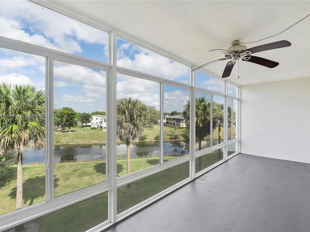 Welcome to Century Village – a vibrant, resort-style community with tree-lined streets and scenic park-like surroundings. This charming third-floor condo features 2 bedrooms and 1.5 baths, freshly painted and filled with natural light. The open floor plan creates a spacious, airy feel, and the glass-enclosed porch offers serene water views – perfect for morning coffee or evening relaxation. Additional features include a dedicated storage space just steps away in the laundry room. Enjoy access to an array of amenities including a theater, clubhouse, pool, pickleball, tennis, and more. Don’t miss your chance to experience the best of South Florida living!