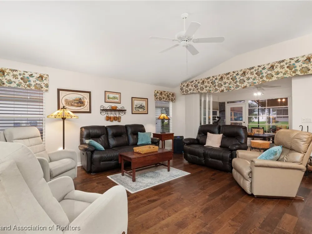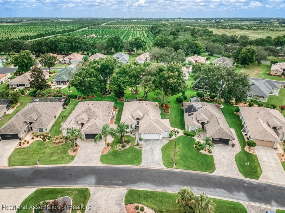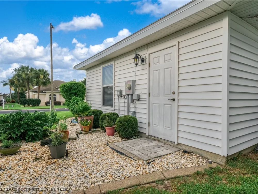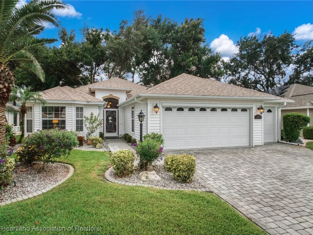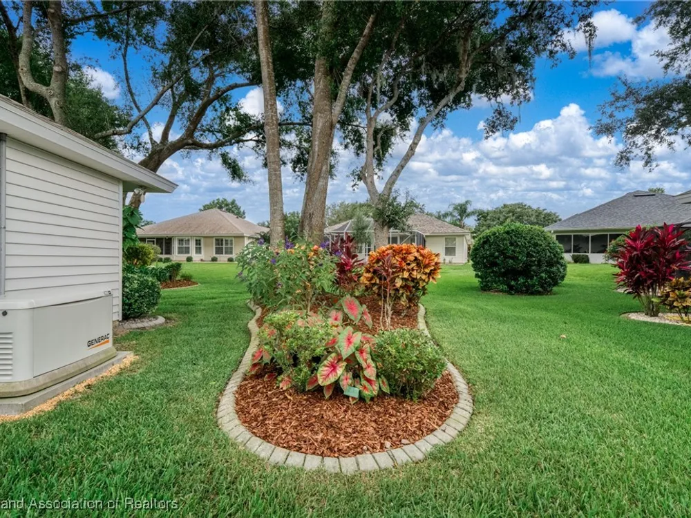 LOCATION! LOCATION! This Highlands Ridge home is located near the entrance and community center. No worries about losing power with the whole house Generac and 500 gallon propane tank in 2021, new roof in 2022, save $$ with the well irrigation, and HVAC with upgrade filter replaced in 2015. The 3 Bedroom, 2 Bath plus a Bonus room gives you plenty of room for entertaining. The central kitchen has granite counters, stainless steel appliances with the dining area at the end of kitchen with nice views of the landscaped backyard. The living room has a lighted overhead plant shelf, engineered hardwood flooring. Entrance to the bonus room can be from the living room or dining area. The owners suite, designed to comfortably fit a king-sized bed, with a lighted plant shelf, two walk-in closets features a generous bathroom with a walk-in shower with grab bars, and double vanities. Third bedroom/den has an entry from the owners suite and the dining area. Large private guest bedroom and 2nd bath located in the front of the home. Large screen porch off the bonus room overlooking the landscaped back yard. Laundry room exits into the kitchen along with entry to the two car garage plus golf cart garage. (a 2020 Club Car 4 seat Onward is available for sale). Garage has a built in work bench, with wall mounted cabinets, storage shelves as well as overhead storage in attic. The hot water tank has a Thermal Expansion Tank attached. Amenities include lawn care, community center with card room, Library, two outdoor heated pools, hot tub, fitness center, golfing, pickleball courts, tennis courts, shuffleboard, bocci ball and more.