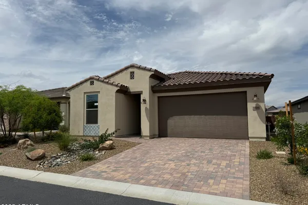 Shea-built Dream plan in the Freedom Collection at Wickenburg Ranch. 1,648 sq ft, 2 bed, 2 bath, 2-car garage w/4' extension. 9' ceilings, quartz counters (New Venatino Beige), taupe-painted cabinets w/soft-close drawers, 42'' uppers, tile backsplash, stainless Profile appliances, pendant lighting & under-cab LED. Multi-slide door opens to extended patio for seamless indoor-outdoor living. Shea shower w/heavy glass, tile surround & brushed nickel fixtures. AV wall sleeves, recessed lights, utility sink rough-in, custom landscape. Resort-style amenities nearby. Shea-built Dream floor plan in the Freedom Collection at Wickenburg Ranch, offering 1,648 sq ft of open living with 2 bedrooms, 2 baths, and a 2-car garage with 4' extension. Set on a well-upgraded lot, this home features 9' ceilings and a seamless indoor-outdoor lifestyle with an extended patio and 15' multi-slide glass door at the great room. Designer upgrades include taupe-painted Hampton Maple cabinetry with soft-close drawers, 42" uppers, quartz counters in New Venatino Beige, custom tile backsplash, and stainless steel Profile appliance package. The primary suite features a Shea shower with heavy glass, brushed nickel hardware, and ceramic tile throughout. Additional upgrades include custom landscaping, AV wall sleeves, recessed lighting, pendant prewire, and utility sink rough-in at the laundry. Positioned near trails and resort amenities, this home blends comfort with convenience.