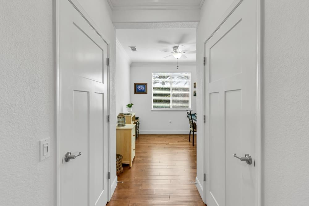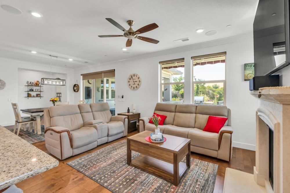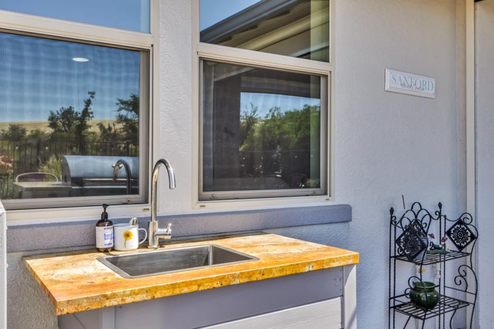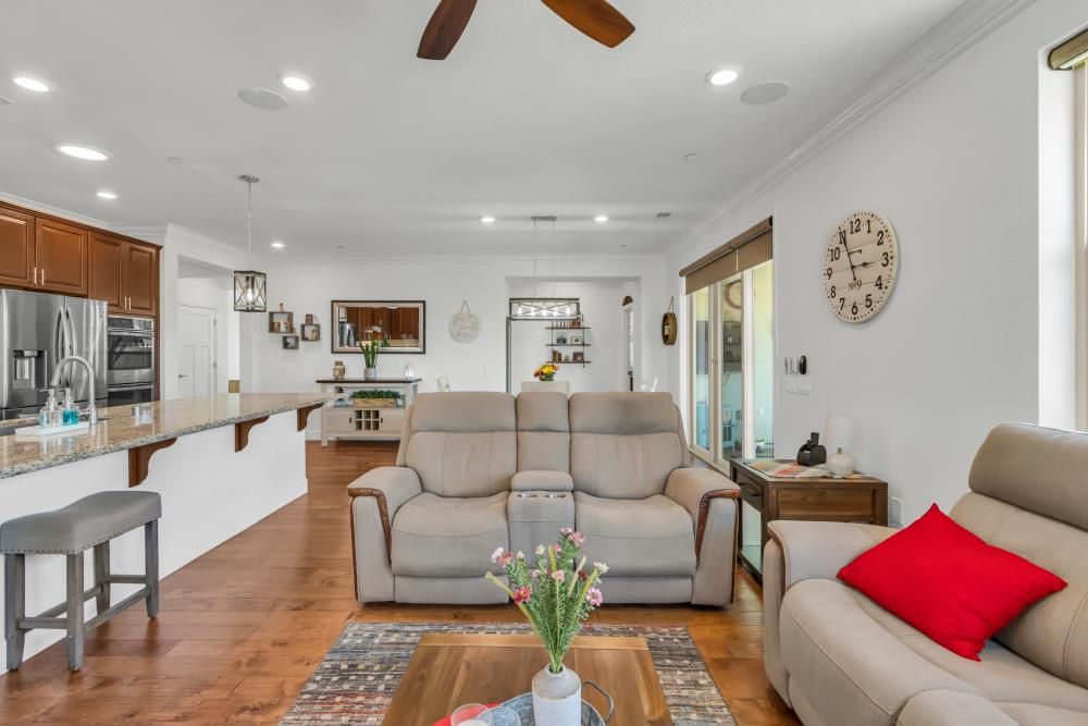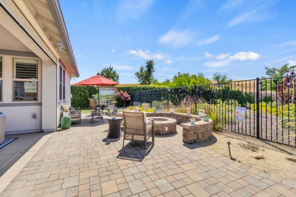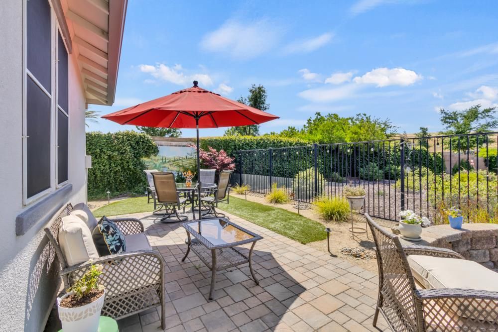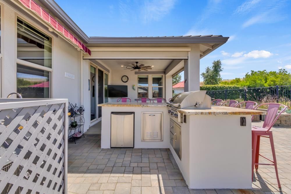 Light-filled and beautifully maintained, this single-level Carmel model sits a top the highest and one of the largest lots in the exclusive 55+ gated community of Heritage. Located in the coveted Island section, it backs to open space with long-range views and offers refreshed living spaces and quality design throughout. Inside, enjoy hardwood floors, an open layout, and a chef's kitchen with granite counters, a walk-in pantry, Signature stainless appliances, a 5-burner gas cooktop, double ovens, and an oversized island perfect for entertaining. The great room flows effortlessly to the backyard, which features a covered patio with remote sunshades, electric awning, TV, water fountain, and a full outdoor kitchen with granite seating for eight, refrigerator, sink, and grill. The home includes two bedrooms and a spacious office. The primary suite offers a walk-in closet, dual sinks, and a spa-like soaking tub. Heritage amenities include two clubhouses, indoor and outdoor pools, spa, fitness center, bar and pub, tennis, pickleball, bocce ball, fire pit, dog park, and a full calendar of events. A must see.