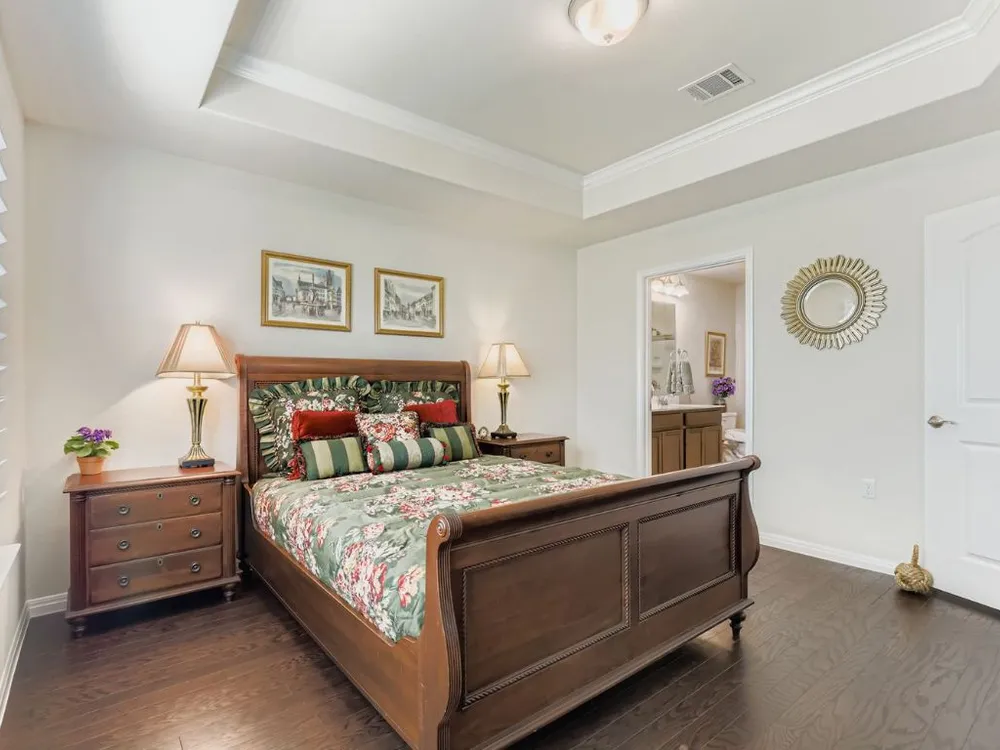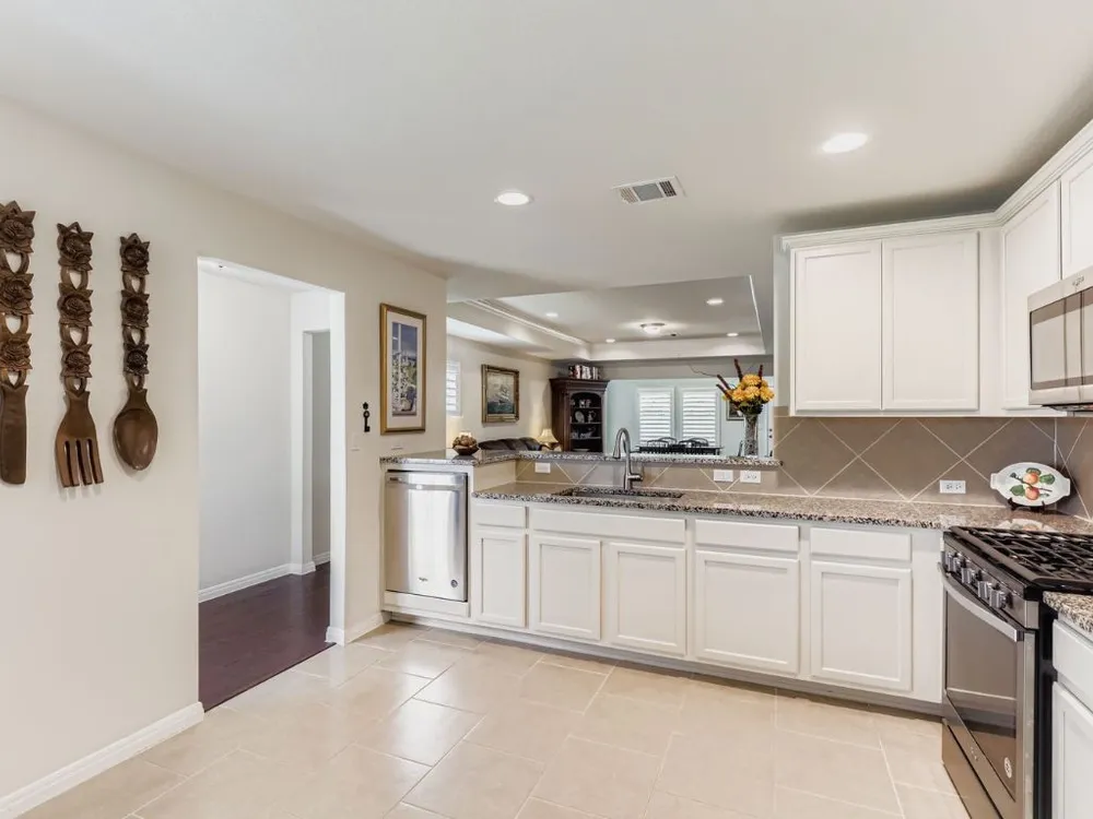 - Tray Ceiling(s), Ceiling Fan(s), Separate/Formal Dining Room, Double Vanity, Eat-in Kitchen, Granite Counters, Multiple Dining Areas, Main Level Primary, NoInteriorSteps, Recessed Lighting, Storage, Bar, Walk-In Closet(s)