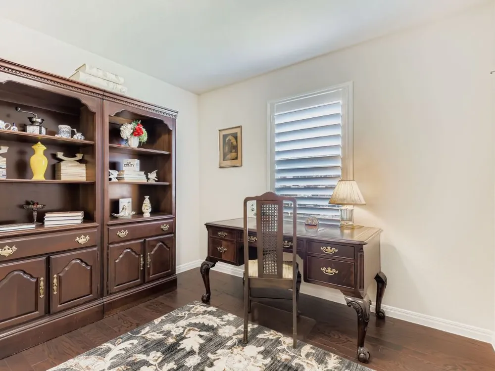 Welcome to your dream home nestled in the charming Sun City community! This meticulously maintained Noir Coast floorplan is a true gem, featuring an inviting sunroom that is flooded with natural light—perfect for unwinding or entertaining friends and family. As you step inside, you'll be captivated by the stunning hardwood floors that flow seamlessly into elegant tile in the wet areas, creating a harmonious and welcoming atmosphere throughout the living spaces. The spacious family room serves as an ideal gathering spot, while plantation shutters enhance both the sophistication and privacy of each room. For the culinary enthusiast, the exquisite kitchen is a delight, boasting modern white cabinetry, beautiful granite countertops, and top-of-the-line stainless steel appliances. The second bedroom, currently set up as a functional office, or as a second bedroom. transforming into a cozy guest retreat whenever you need it. Step outside to discover your beautifully landscaped backyard, where a majestic oak tree adds an enchanting touch to your outdoor oasis. Don’t miss this incredible opportunity to make this exceptional property your new home!