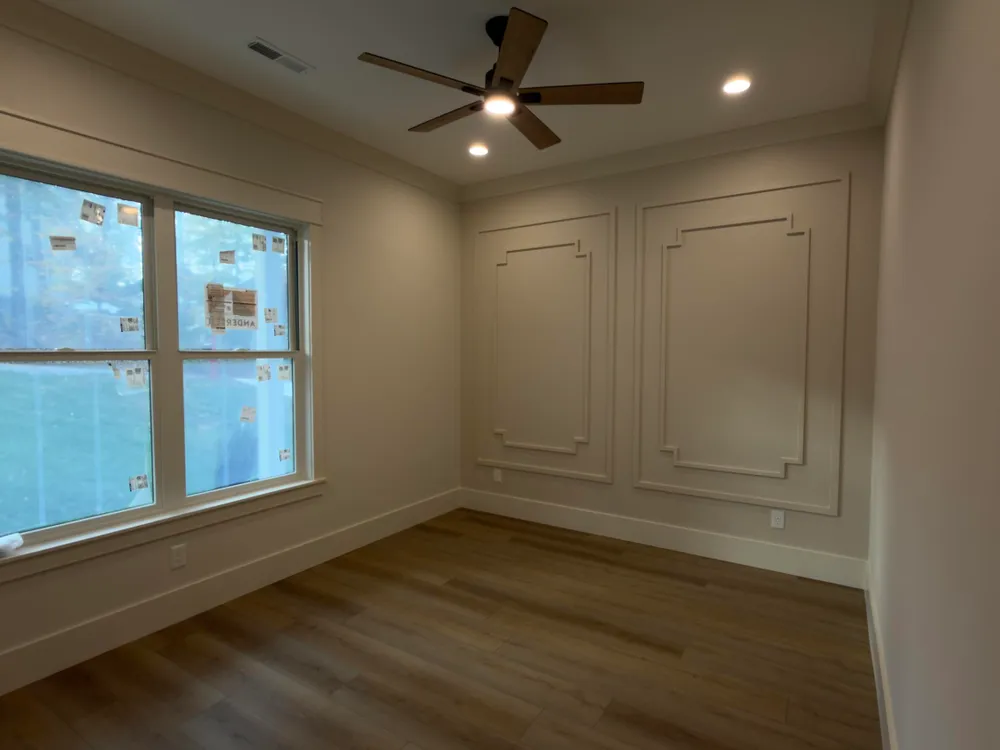 Presenting a luxury new build that truly embodies sophistication, comfort, and superior craftsmanship - almost ready for move-in! This thoughtfully designed home features a front-covered porch with brick and Hardie front elevation. A grand foyer with wow factor from the start showcases a wood tray ceiling with a beautiful chandelier, wainscoting walls, and accent sconces to welcome you in. Enjoy 11' ceilings in the kitchen and main living areas, 10' ceilings throughout, 8' doors, Anderson windows, and durable LVP flooring with no carpet. Spacious living room with floor-to-ceiling stone vented fireplace flanked by custom built-in shelving and wood cabinets. A separate office provides the perfect workspace. Gourmet kitchen offers abundant cabinetry in soft white and wood tones with gold accents, a built-in microwave, pot filler, under-cabinet and accent lighting, and a large walk-in pantry with custom shelving. Spacious dining room features wainscoting and a beautiful chandelier. Primary suite includes vaulted ceiling with a decorative beam, accent wall, and a spa-inspired bath with his-and-hers vanities, large freestanding soaking tub, custom walk-in shower with bench, heated tile floors, and a master closet with tile flooring and direct access to the large laundry room. All bedrooms include accent walls and walk-in closets for ample storage. Drop off mudroom with custom built-ins. Enjoy outdoor living on the expansive 23'x17' screened deck with composite decking and aluminum railing, plus an open concrete patio with a gas outlet ready for grilling. The flat backyard includes a full irrigation system for easy maintenance. Oversized garage features a 240V Tesla plug, attic storage, and a tall crawlspace with a concrete pad - perfect for extra storage. Designed for contemporary living, this home blends functionality with timeless elegance. Don't miss this opportunity - schedule your showing today! Buyer to reimburse Seller at closing the one-time Loudon County Impact tax 1.00 dollar per finished sq.
