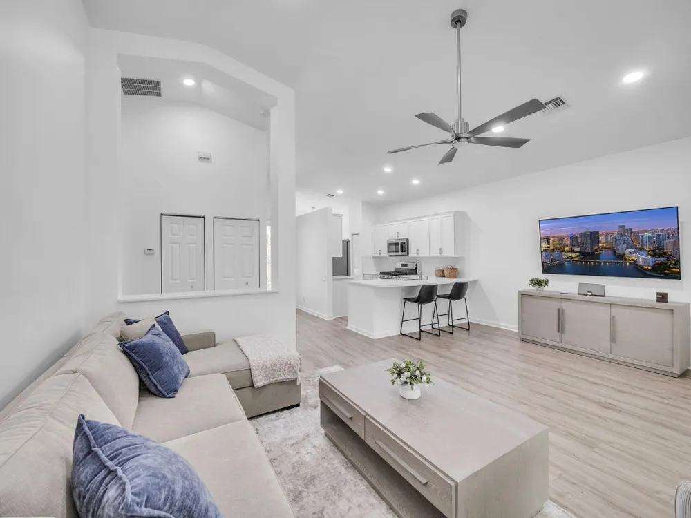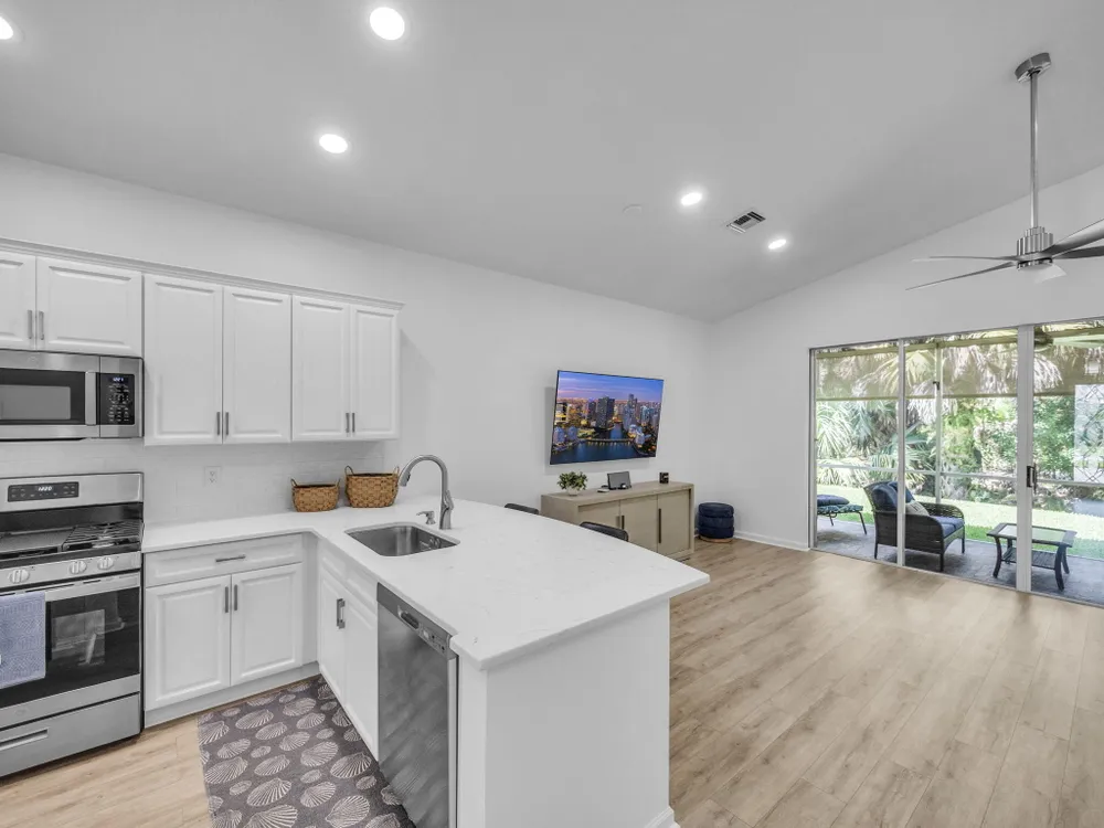 Beautifully updated 2 bedroom, 2 bath single-family home located in the highly sought-after 55+ Cascades of St. Lucie West. This move-in ready residence features a bright and modern kitchen with crisp white wood cabinetry, sleek quartz countertops, new stainless-steel appliances, and a natural gas range--perfect for the home chef. Throughout the home, you'll find new luxury vinyl plank flooring and fresh interior paint that adds a clean, contemporary touch.Stunning lanai, with stone-look tile flooring and surrounded by lush tropical landscaping with decorative curbing. Accordion shutters provide full hurricane protection.The Cascades offers a vibrant lifestyle with amenities that include 10 lighted Har-Tru tennis courts, pickleball, 4 bocce ball courts, 2 shuffleboard courts, a 9-hole