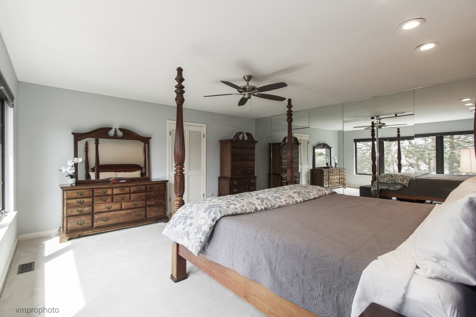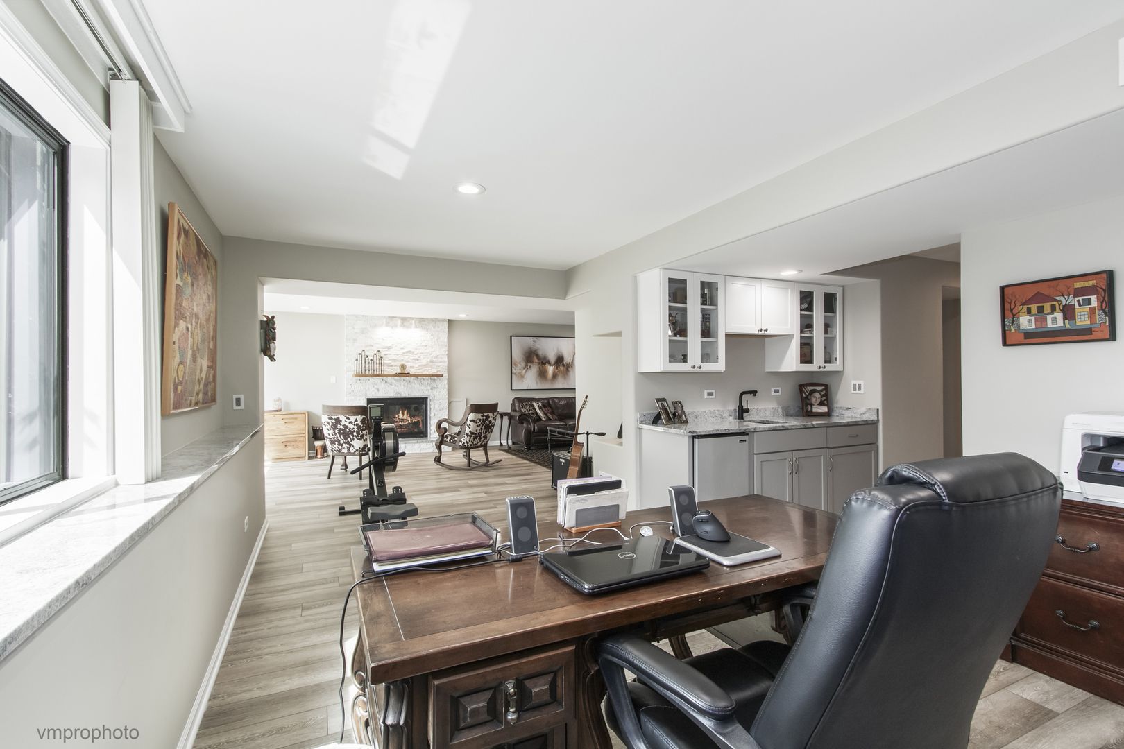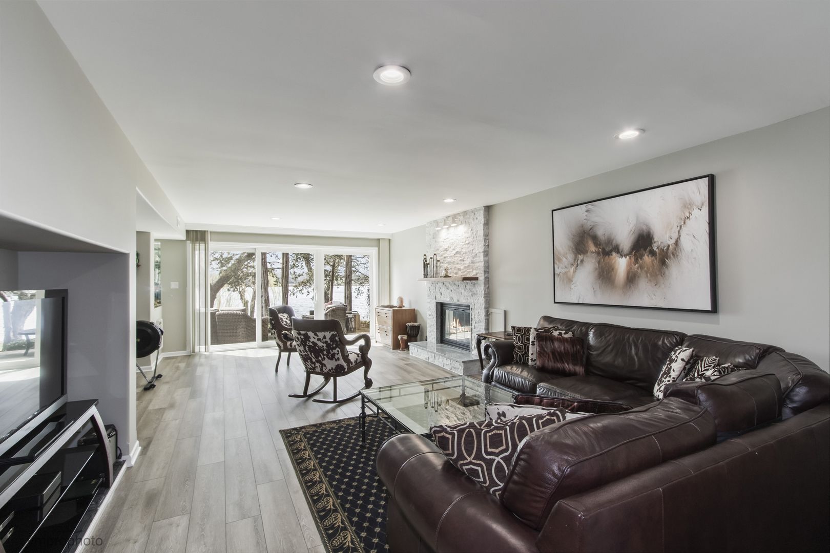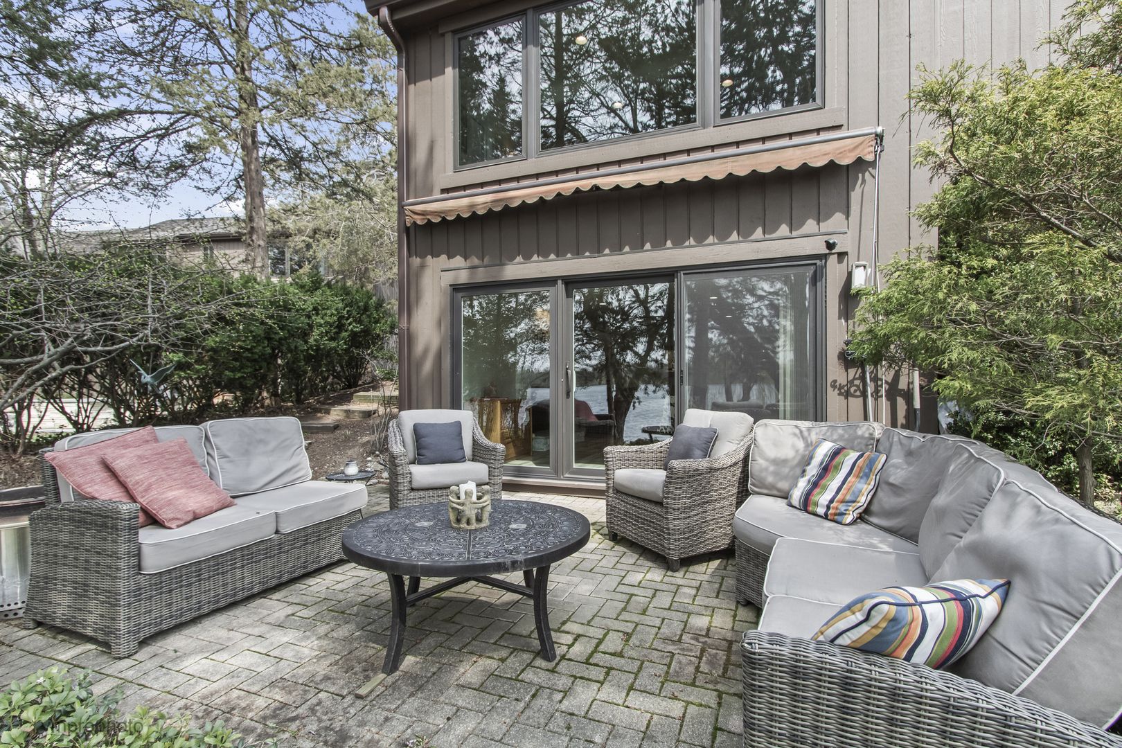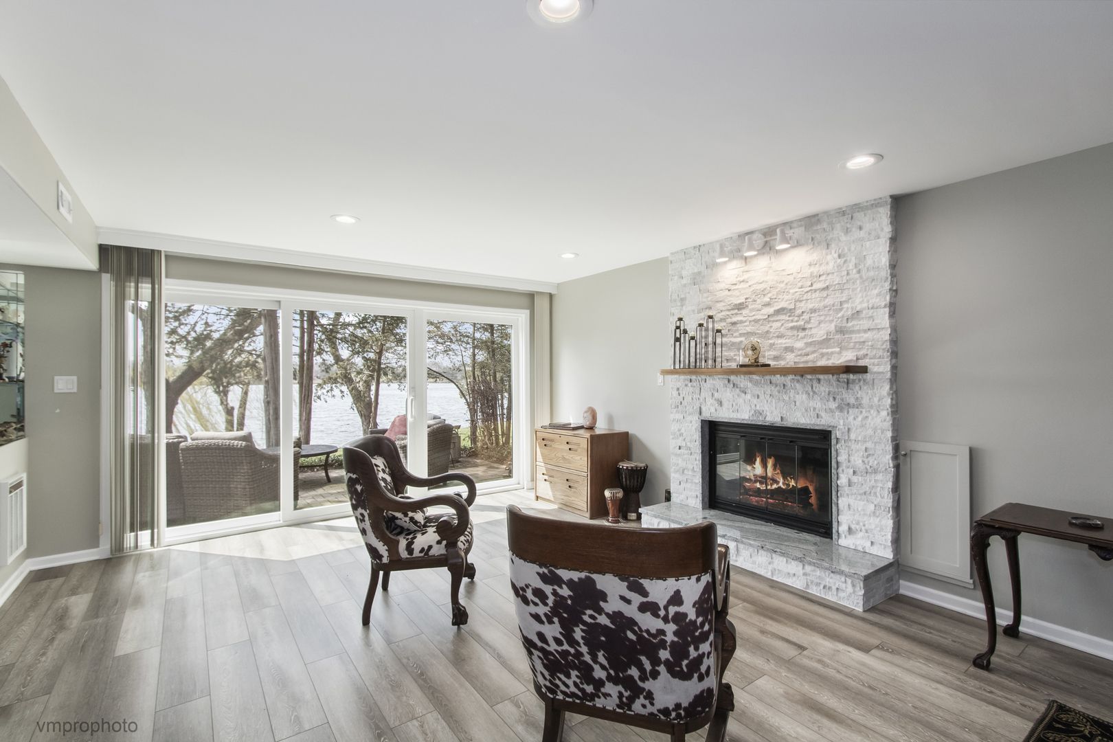 Magnificent Big Lake views from this lakefront Fenimore model. Enjoy a Northwoods vacation vibe from this duplex townhome that lives like a single family home. The mature trees dot the rolling lawn that cascades down to the water's edge where you can relish in all the delights that lakefront living affords. This stunning home has been completely remodeled, has all new windows and the sought after luxury of a direct entry 2 car garage into a large custom designed walk in pantry and mud room. The 2 story Foyer opens up to the cozy, yet spacious Den with Butler's Pantry featuring a wet bar & Sub-Zero bar refrigerator. An elegant Living Room feels like you are living in a lavish treehouse complete with stunning fireplace flanked by windows and another full wall of windows viewing the water. A rare find is the formal large Dining Room with plenty of space to entertain in style where you can access the private deck to flow onto with stepping stones down to the lakeside paver patio. The remodeled Kitchen is open and ideally planned with custom Amish soft close drawers, task lighting, granite counters, 2 separate breakfast counters & high-end appliances featuring Wolf, Bosch & Sub-Zero. The 2nd floor has a loft landing with transom window and conveniently located washer and dryer. The Primary Suite is drenched in sunlight and is unbelievable spacious in design with full lake views. One whole wall is custom closet with organizers and an additional closet as well. The luxury updated primary bath boasts elevated granite vanity with dual sinks and large custom designed shower with seat, grab bar, niche, body sprayer and frameless glass door - complete with window as well! The two additional bedrooms are very large, featuring great closet space and are neutral in design - all new carpet on 2nd floor! The glamorous hall bathroom has been updated and boasts a window, elevated vanity with dual sinks, tub/shower with custom tile work, glass corner shelves and frameless shower door. The Full Finished Walk-Out Lower Level has been recently remodeled! The focal point fireplace is stunning with a shimmering stacked stone design & raised hearth -perfect for cozying around while taking in the stunning lake views. The office space has a granite credenza with cabinetry and wet bar area with glass cabinetry, granite counter and a bar refrigerator - the perfect spot to work or entertain. The luxury feel of the lower level is complete with rounded corner beading, luxury vinyl plank flooring, mirrored art & collectible display shelves and great window lines and a 3 pane sliding glass door to the private paver patio complete with automatic awning. The lower level has an enormous storage room that is finished and the shelving will remain. This home offers everything you could ask for in a single family home, yet offers you the luxury & maintenance free lifestyle. Solar Panels (completely paid for) add value with lowered electric bills averaging $214/month for 2025. Enjoy kayaking, swimming, pickleball, indoor/outdoor pools, hiking the 35 acre forest preserve & trail around the lake, gather with friends at the beach or in the clubhouse - all within the confines of the guarded and gated community of Lake Barrington Shores. Dine at the golf club or play a round with friends (golf is a separate membership). Come see why LBS is the sought after destination for luxury living!