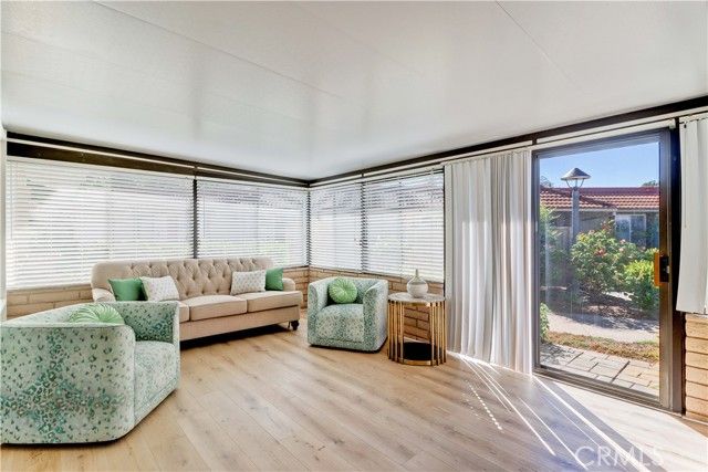 Welcome to this beautifully remodeled 2 bd, 2 ba condo in the popular 55+ Laguna Woods Village community, just minutes from Laguna Beach. The kitchen has been completely upgraded and redesigned with soft-close cabinets, quartzite countertops, a stylish tile backsplash, and marble detail behind the sink. It comes equipped with all-new GE and KitchenAid appliances, along with a new LG washer and dryer in the hallway closet. Both bathrooms feature upgrades with new vanities and Kohler finishes. The guest bathroom has been fully remodeled, while the master bathroom includes thoughtful updates complimenting the existing shower. Just off the main living area, a charming sunroom offers extra space to relax, unwind, or use as a flexible sitting area. With natural light filling the room, it’s a perfect extension of the home. Additional features include: a new central ac/heat system (2023) that provides modern comfort and energy efficiency; and double-paned windows creating a bright and welcoming atmosphere. This home is move-in ready with all-new paint, recessed lighting, smooth ceilings, and premium vinyl flooring throughout, including the sunroom. Life in The Village offers countless amenities including multiple golf courses, tennis and pickleball courts, five swimming pools, three fitness centers, and seven clubhouses offering classes in art, ceramics, woodworking, sewing, and more. This home blends stylish updates with an active, resort-style lifestyle in a great location close to the coast.