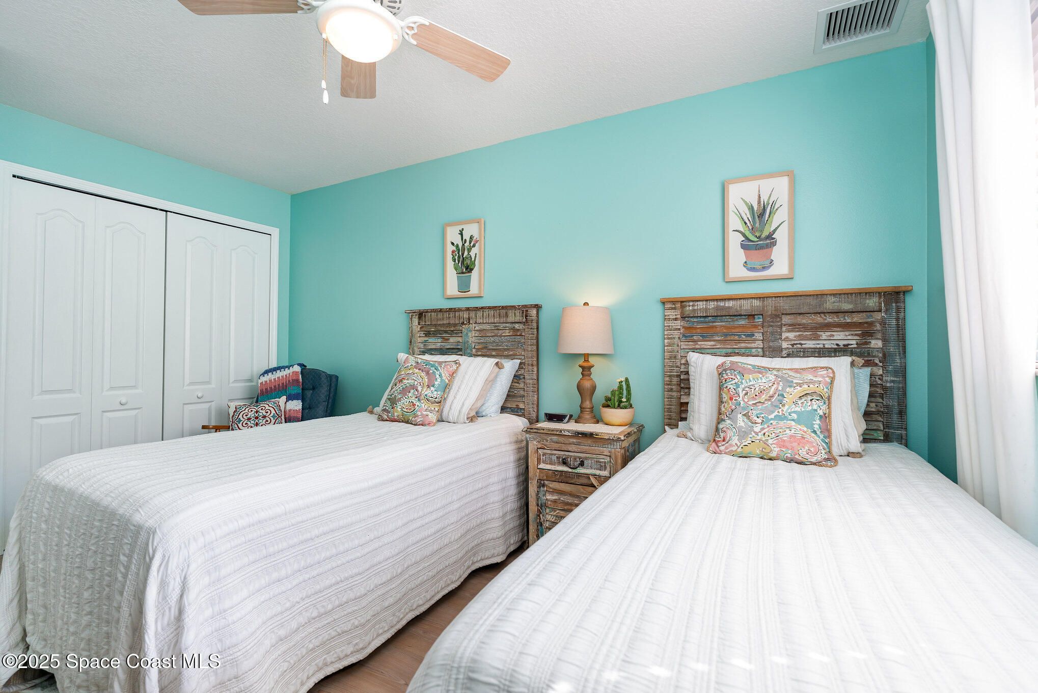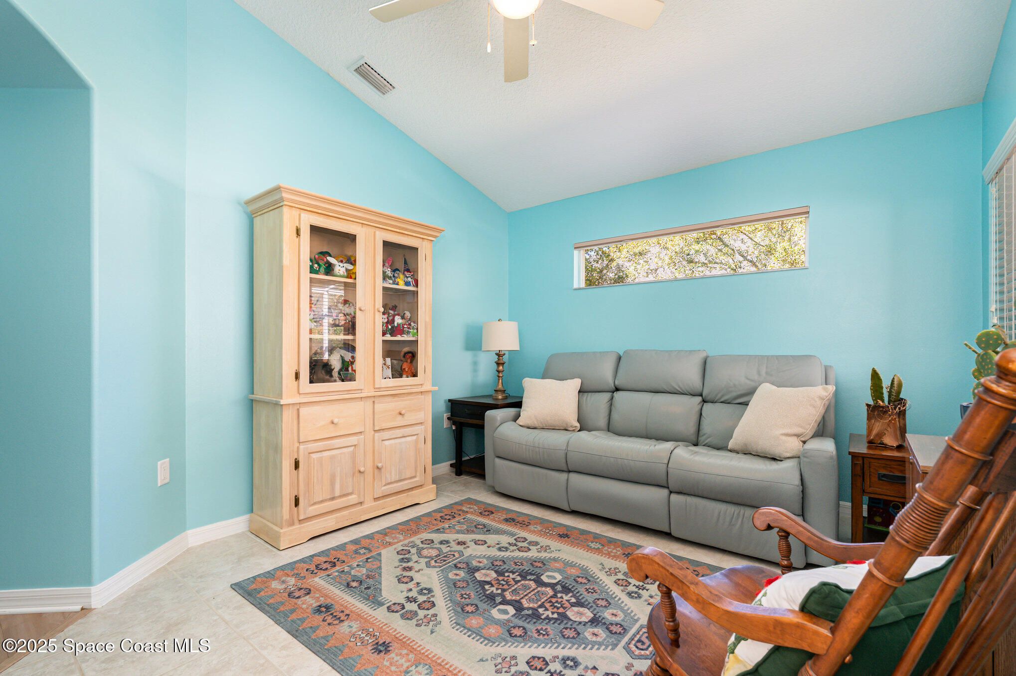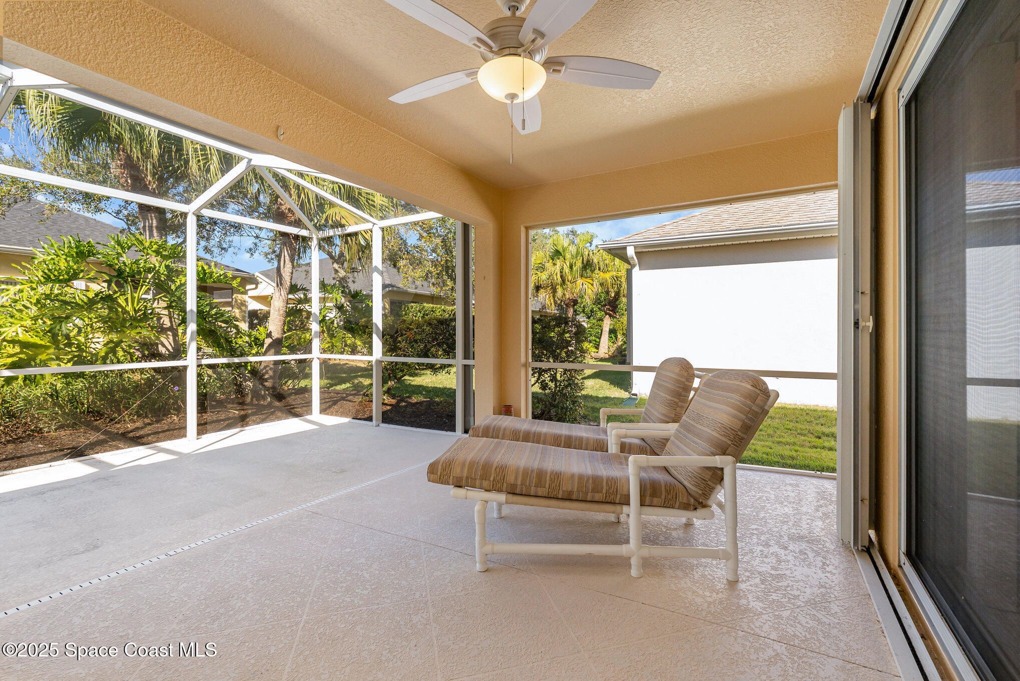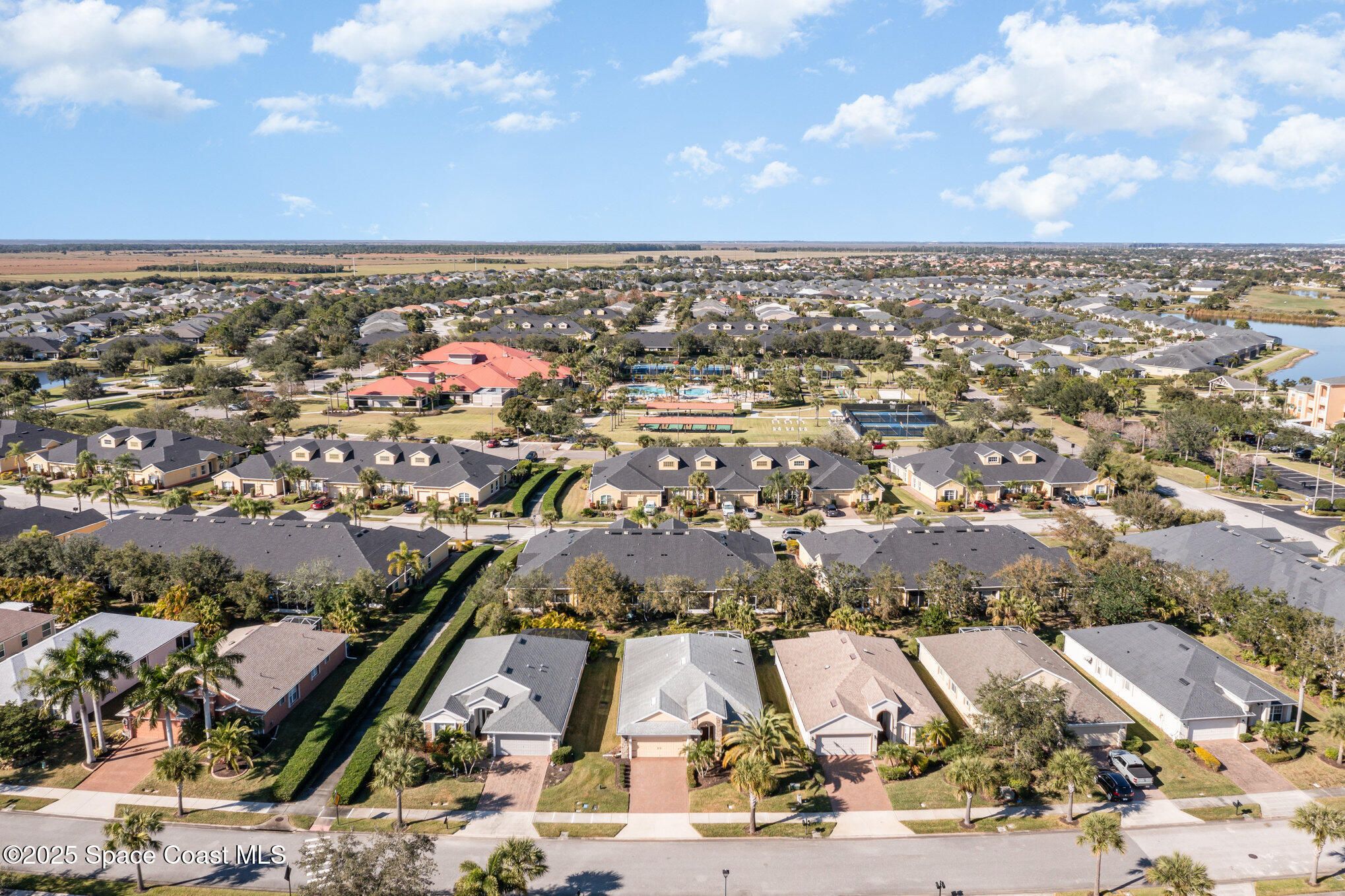 Welcome to Heritage Isle, Viera's premier 55+ guard-gated, resort-style community, offering true maintenance-free living and an unmatched lifestyle. This beautifully maintained 3-bedroom, 2-bathroom home is just two short blocks from the luxurious Heritage Isle Clubhouse, where residents enjoy a heated pool & spa, fitness center, bar/café, craft room, game room, tennis, pickleball, bocce ball, shuffleboard courts, and scenic jogging/walking trails. The home itself is move-in ready and features solid block construction with elegant stone-accented exterior, tropical landscaping, a screened lanai overlooking lush greenery, and a recently sealed paver driveway. Major updates include a NEW HVAC (2025), Roof (2018), and accordion hurricane shutters throughout (including the front door) for peace of mind. Inside, you'll find an inviting, open layout with tile and laminate flooring throughout - no carpet. The eat-in kitchen is equipped with all NEW stainless steel appliances: KitchenAid refrigerator, KitchenAid convection oven range, microwave, and Bosch dishwasher, all complemented by quartz countertops, an island, and abundant cabinetry. The spacious primary suite offers a walk-in closet and a large open walk-in shower with a fold-down seat. Two guest bedrooms provide flexibility for visitors, hobbies, or office space. The home also includes a dedicated laundry room with washer and dryer. Enjoy quiet mornings and relaxing evenings on the screened lanai surrounded by tropical landscaping, a true private sanctuary while still being minutes from all that Viera has to offer. HOA fees cover lawn care, exterior painting and full use of the resort amenities, allowing you to live a low-maintenance, high-enjoyment lifestyle. Perfectly located near I-95, The Avenues shopping & dining, healthcare facilities, and just minutes from the beach. This home is priced to sell, don't miss your chance to live in one of Viera's most desirable 55+ communities!