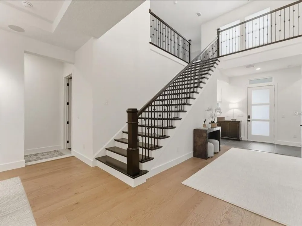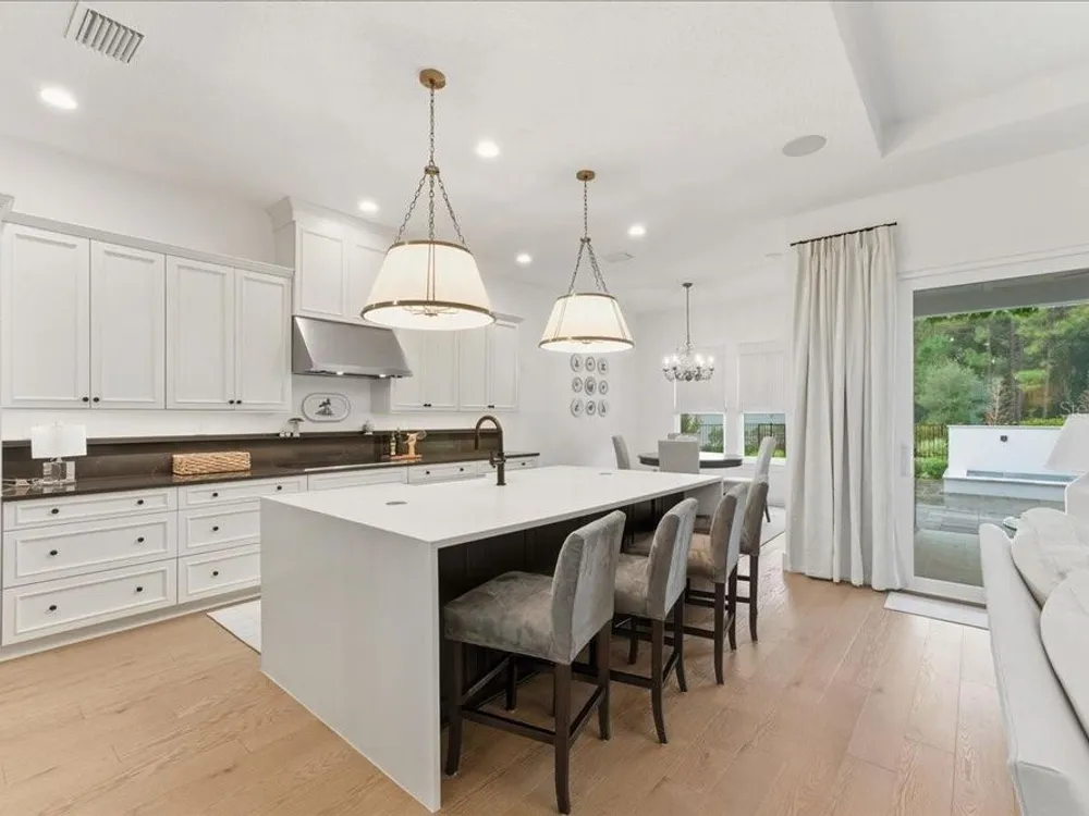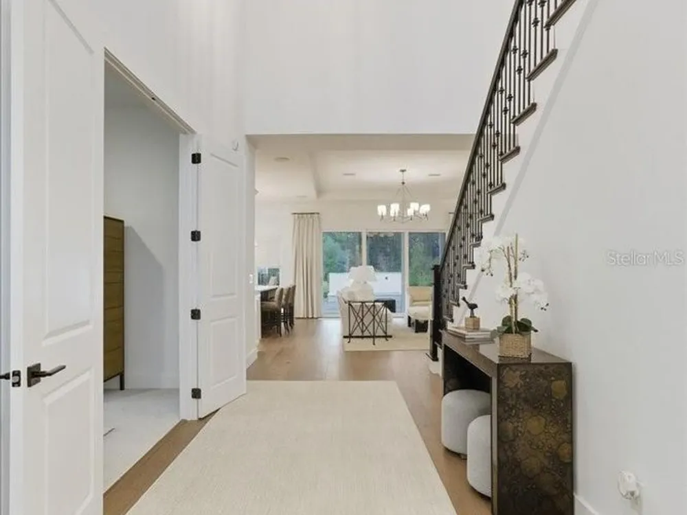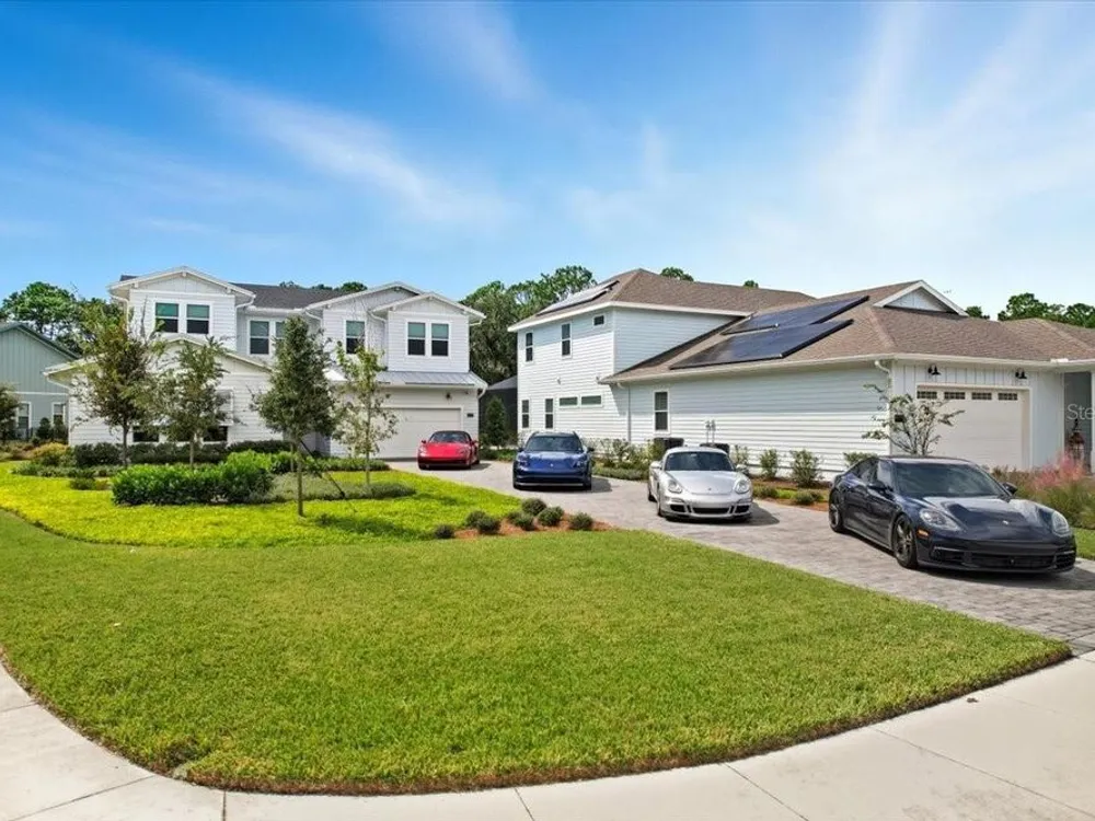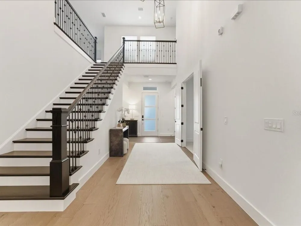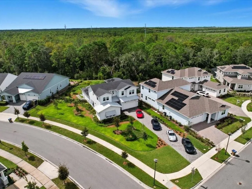 Introducing 3122 Vanguard Court, the most spectacular home ever offered for resale in Sunbridge — a stunning Toll Brothers Davey Modern Coastal Farmhouse loaded with every upgrade imaginable. Welcome to The Naturehood — this is Weslyn Park at Sunbridge, Central Florida’s most forward-thinking new community by Tavistock, where modern design meets eco-friendly living. Situated on one of the largest conservation lots in the neighborhood (.29 acres), this home showcases Florida-friendly landscaping, a sparkling splash pool with fountain, and an impressive 100-foot-long driveway. Step inside to dramatic volume ceilings and white oak wood flooring, as well as upgraded carpeting and tile work, with a layout that blends warmth, function, and designer detail. The gourmet kitchen features a double waterfall quartz island, professional-grade appliances, and custom lighting that defines the open-concept living space. Every inch of this home was thoughtfully curated — from designer chandeliers and custom sconces to smart-home speakers in multiple rooms and epoxy-finished 2+1 garages. The master suite on the main floor is expansive, with a freestanding cast iron soaking tub, double vanities, and walk-in closet. You’ll also find a secondary en-suite bedroom and private office downstairs, with a large upstairs loft and additional bedrooms ideal for guests or family. This is one of the few homes in Sunbridge equipped with a fully paid-off solar system and four Tesla Powerwall batteries, combining luxury living with sustainability. Located just steps from the new Voyager K–8 School and surrounded by miles of trails, open conservation, and future plans for “The Watershed” amenity center and mixed-use village, this is a rare opportunity to own one of the most impressive homes in Tavistock’s visionary master plan. Come experience why Weslyn Park in Sunbridge is redefining the future of Central Florida sustainable living — and make this incredible property your forever home.