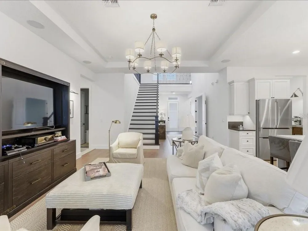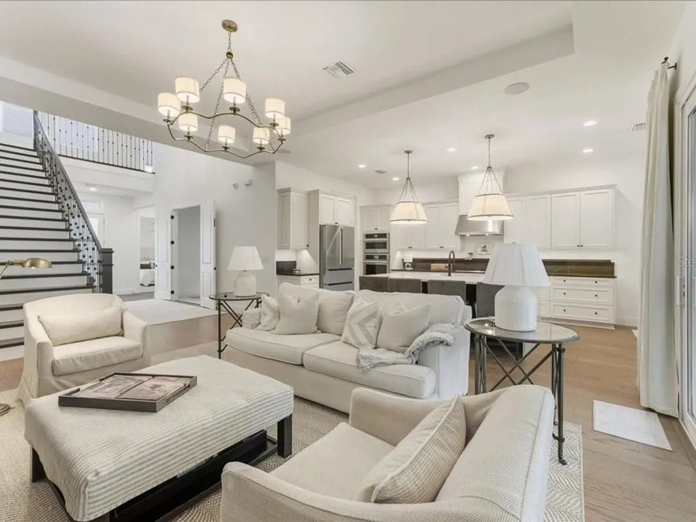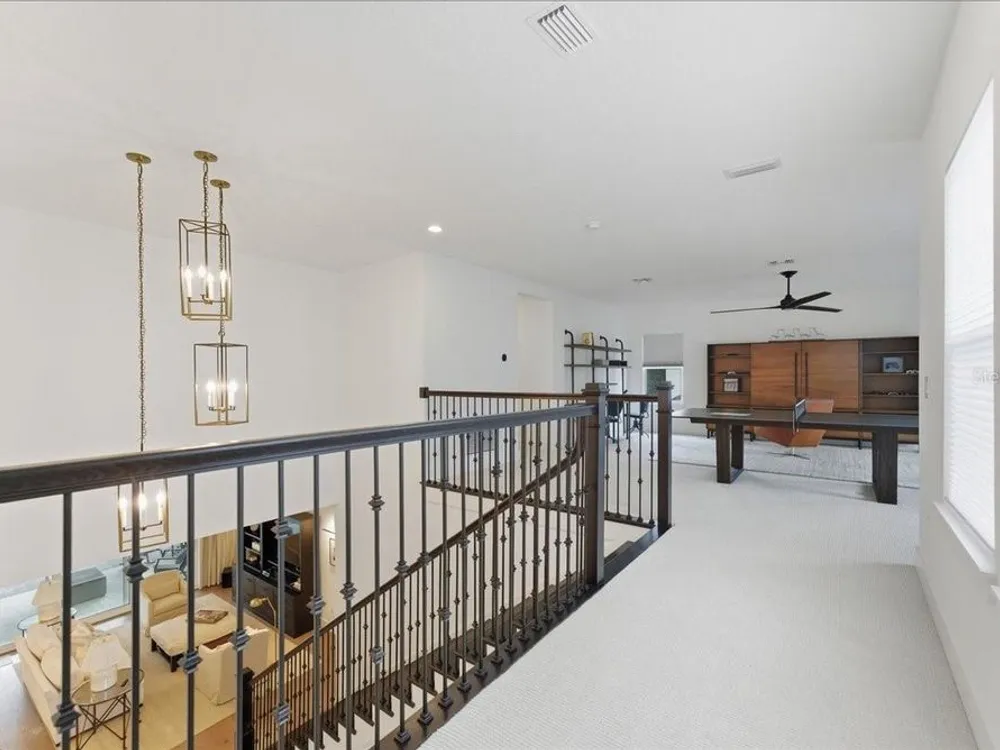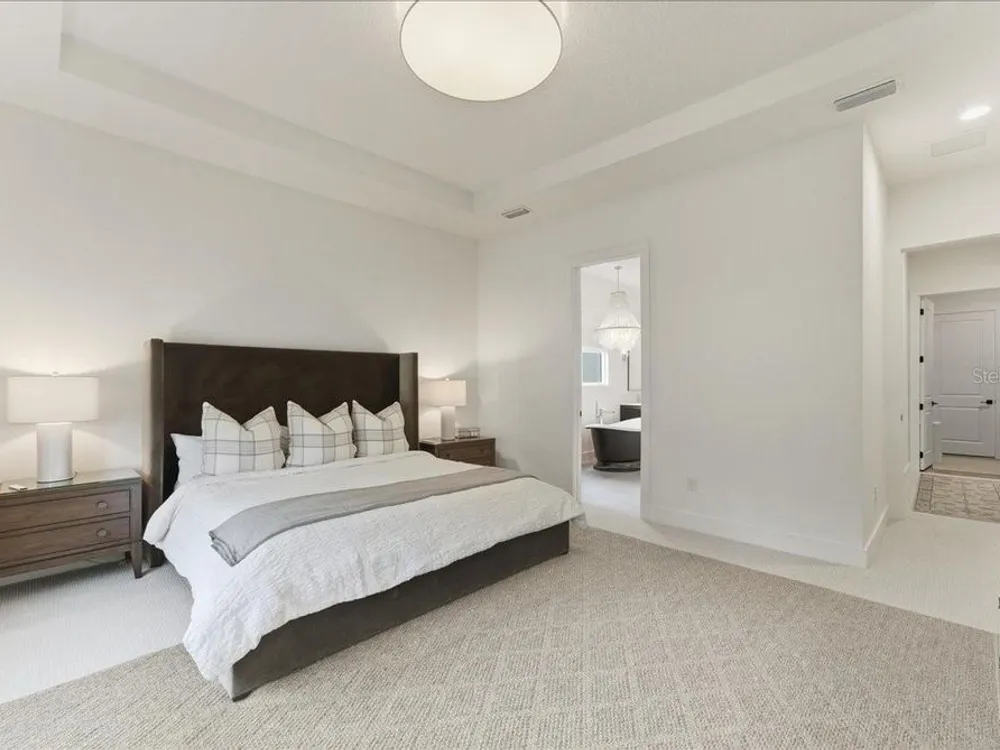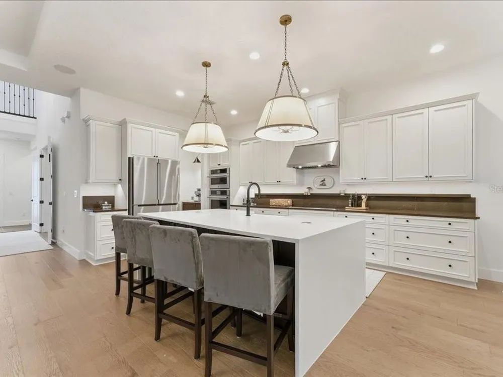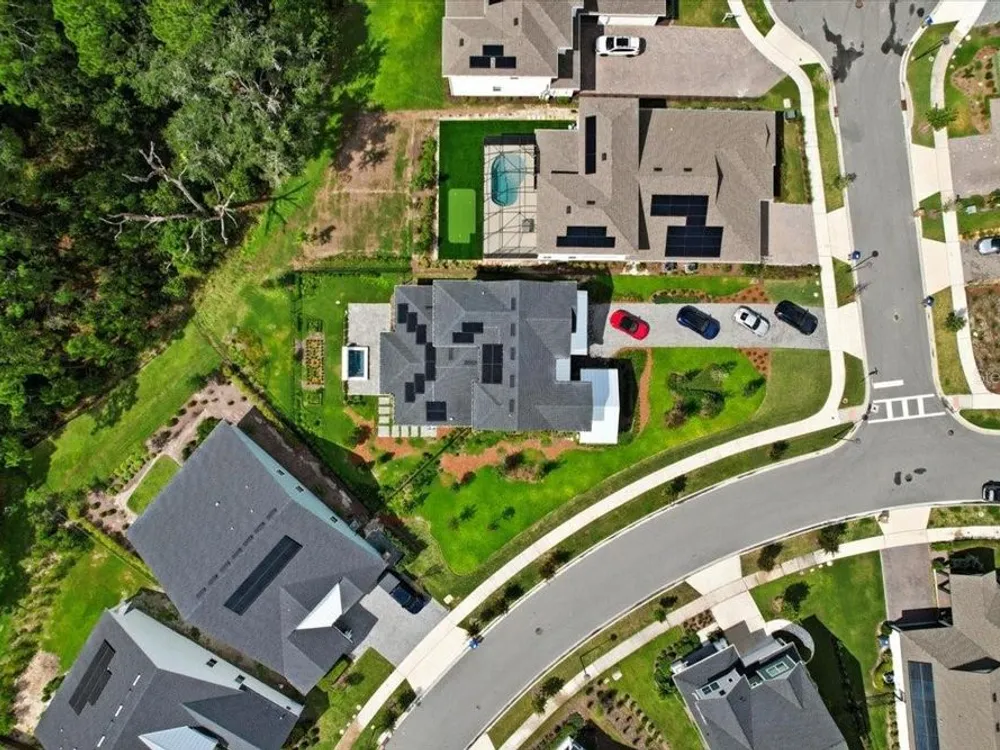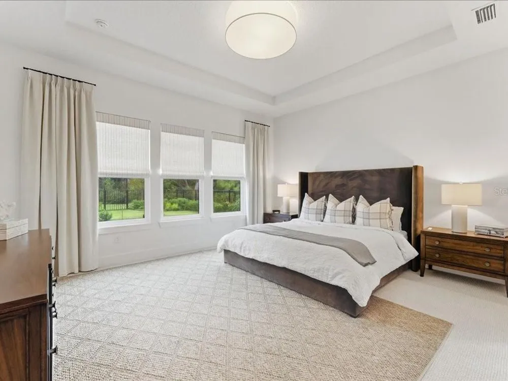Introducing 3122 Vanguard Court, the most spectacular home ever offered for resale in Sunbridge — a stunning Toll Brothers Davey Modern Coastal Farmhouse loaded with every upgrade imaginable. Welcome to The Naturehood — this is Weslyn Park at Sunbridge, Central Florida’s most forward-thinking new community by Tavistock, where modern design meets eco-friendly living. Situated on one of the largest conservation lots in the neighborhood (.29 acres), this home showcases Florida-friendly landscaping, a sparkling splash pool with fountain, and an impressive 100-foot-long driveway. Step inside to dramatic volume ceilings and white oak wood flooring, as well as upgraded carpeting and tile work, with a layout that blends warmth, function, and designer detail. The gourmet kitchen features a double waterfall quartz island, professional-grade appliances, and custom lighting that defines the open-concept living space. Every inch of this home was thoughtfully curated — from designer chandeliers and custom sconces to smart-home speakers in multiple rooms and epoxy-finished 2+1 garages. The master suite on the main floor is expansive, with a freestanding cast iron soaking tub, double vanities, and walk-in closet. You’ll also find a secondary en-suite bedroom and private office downstairs, with a large upstairs loft and additional bedrooms ideal for guests or family. This is one of the few homes in Sunbridge equipped with a fully paid-off solar system and four Tesla Powerwall batteries, combining luxury living with sustainability. Located just steps from the new Voyager K–8 School and surrounded by miles of trails, open conservation, and future plans for “The Watershed” amenity center and mixed-use village, this is a rare opportunity to own one of the most impressive homes in Tavistock’s visionary master plan. Come experience why Weslyn Park in Sunbridge is redefining the future of Central Florida sustainable living — and make this incredible property your forever home.