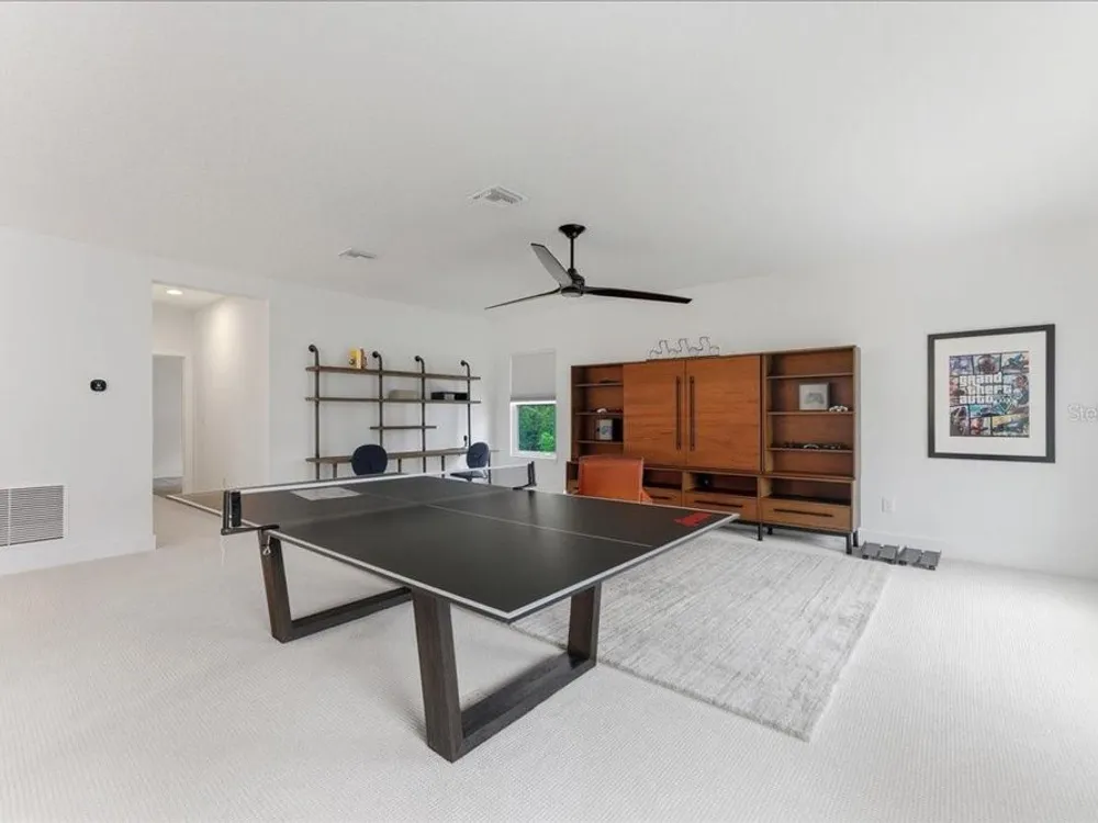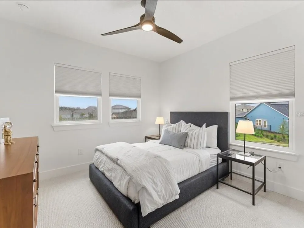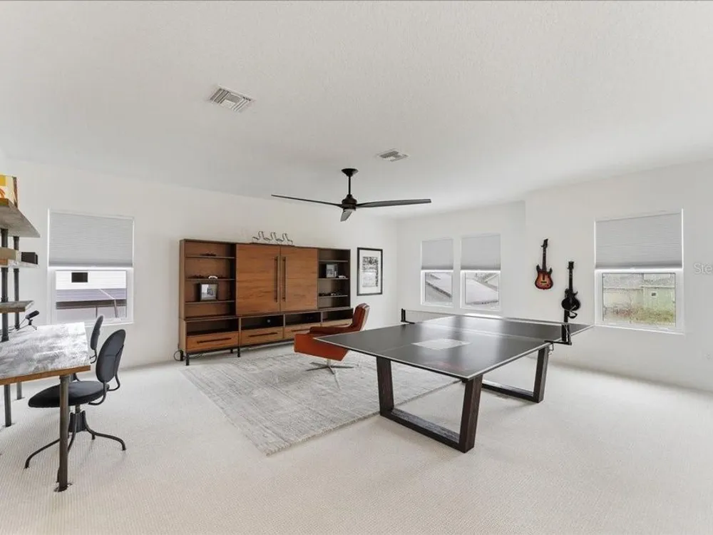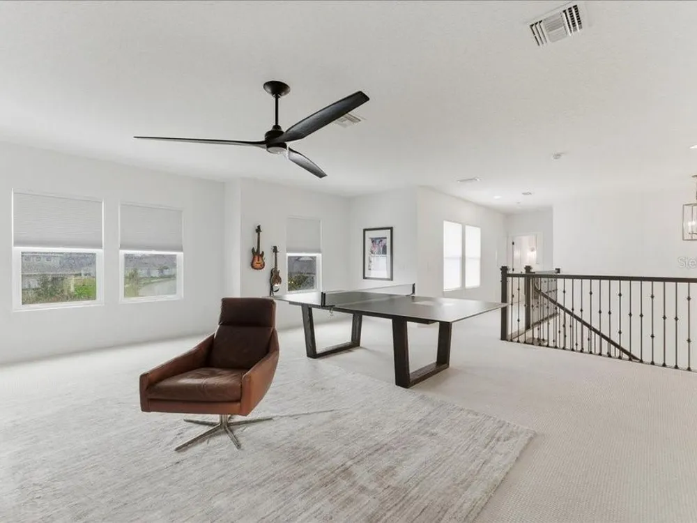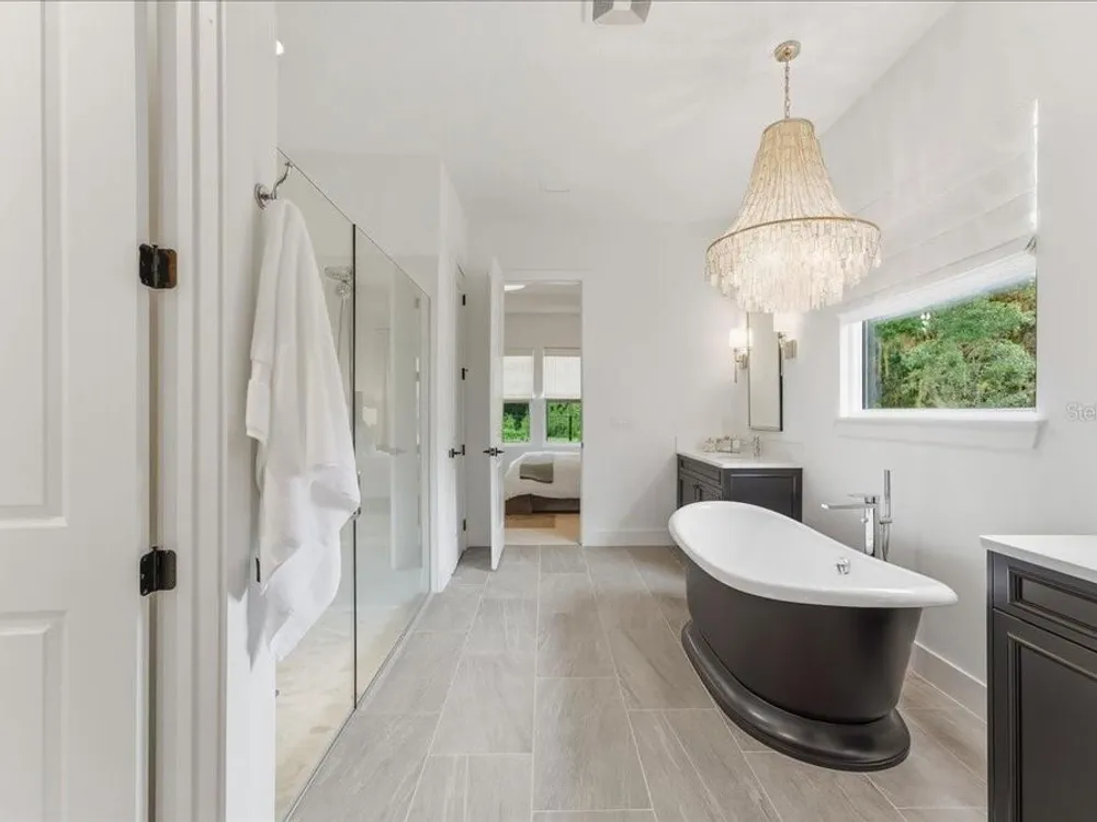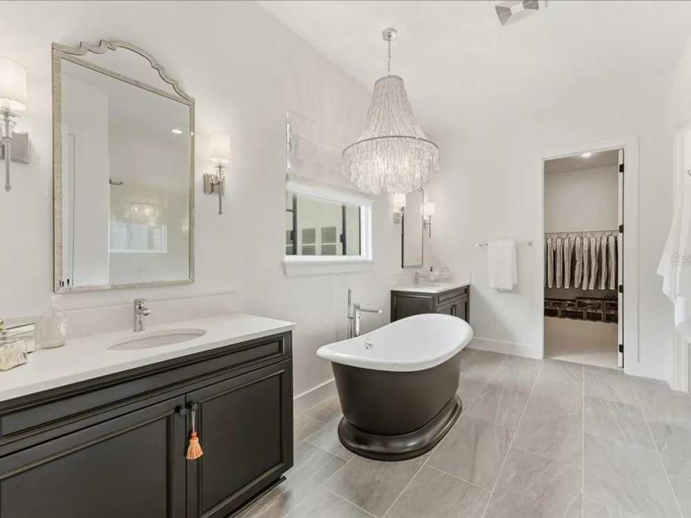Introducing 3122 Vanguard Court, the most spectacular home ever offered for resale in Sunbridge — a stunning Toll Brothers Davey Modern Coastal Farmhouse loaded with every upgrade imaginable. Welcome to The Naturehood — this is Weslyn Park at Sunbridge, Central Florida’s most forward-thinking new community by Tavistock, where modern design meets eco-friendly living. Situated on one of the largest conservation lots in the neighborhood (.29 acres), this home showcases Florida-friendly landscaping, a sparkling splash pool with fountain, and an impressive 100-foot-long driveway. Step inside to dramatic volume ceilings and white oak wood flooring, as well as upgraded carpeting and tile work, with a layout that blends warmth, function, and designer detail. The gourmet kitchen features a double waterfall quartz island, professional-grade appliances, and custom lighting that defines the open-concept living space. Every inch of this home was thoughtfully curated — from designer chandeliers and custom sconces to smart-home speakers in multiple rooms and epoxy-finished 2+1 garages. The master suite on the main floor is expansive, with a freestanding cast iron soaking tub, double vanities, and walk-in closet. You’ll also find a secondary en-suite bedroom and private office downstairs, with a large upstairs loft and additional bedrooms ideal for guests or family. This is one of the few homes in Sunbridge equipped with a fully paid-off solar system and four Tesla Powerwall batteries, combining luxury living with sustainability. Located just steps from the new Voyager K–8 School and surrounded by miles of trails, open conservation, and future plans for “The Watershed” amenity center and mixed-use village, this is a rare opportunity to own one of the most impressive homes in Tavistock’s visionary master plan. Come experience why Weslyn Park in Sunbridge is redefining the future of Central Florida sustainable living — and make this incredible property your forever home.