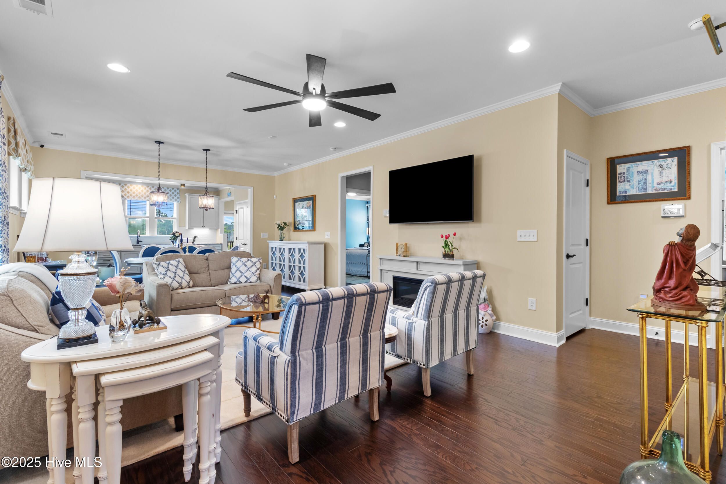 Discover your dream home at 3124 Laughing Gull Terrace, nestled in the Del Webb subdivision, of the master-planned community of Riverlights--an active adult neighborhood, this stunning residence offers the perfect combination of comfort and style. This beautifully maintained and upgraded 2-bedroom, 2-bath home features a spacious office with French doors and a versatile bonus room over the garage—ideal for working from home or pursuing hobbies. The open floor plan and custom upgrades elevate every detail, making this home perfect for enjoying the relaxed coastal lifestyle. Highlights include: Gourmet Kitchen: Granite countertops, a large island, top-of-the-line appliances, gas stove, custom cabinetry, tile backsplash, and a custom pantry fitted by California closets—truly a chef's paradise. Wait until you get a glimpse of the custom built wine cellar closet. Elegant Living Spaces: The formal dining area and living room feature an electric fireplace, perfect for entertaining or cozy evenings. Sunroom: Flooded with natural light, this serene retreat is ideal for relaxing or your favorite hobby Luxurious Master Suite: Spacious custom walk-in designed by California closets and a generous bathroom with a walk-in shower, quartz countertops, and upgraded lighting. Premium Features: Engineered hardwoods throughout, kitchen cabinets complete with pullout drawers, upgraded custom California closet pantry, Generac generator, tankless water heater, irrigation and smart home technology. Enjoy access to resort-style amenities, including indoor and outdoor pools, tennis, bocce, and pickleball courts. Scenic walking trails and a fitness center with classes provide plenty of opportunities to stay active. The clubhouse hosts social activities like cooking and painting. Nearby attractions such as the Battleship North Carolina and the North Carolina Aquarium at Fort Fisher make for enjoyable day trips. Easy to show, book today!