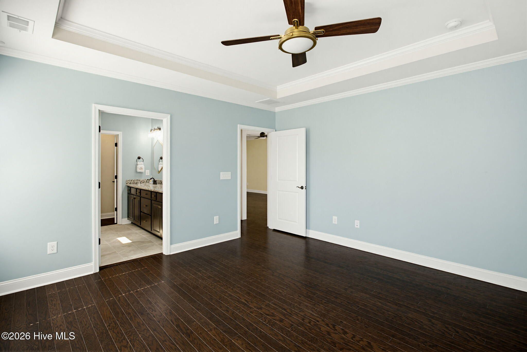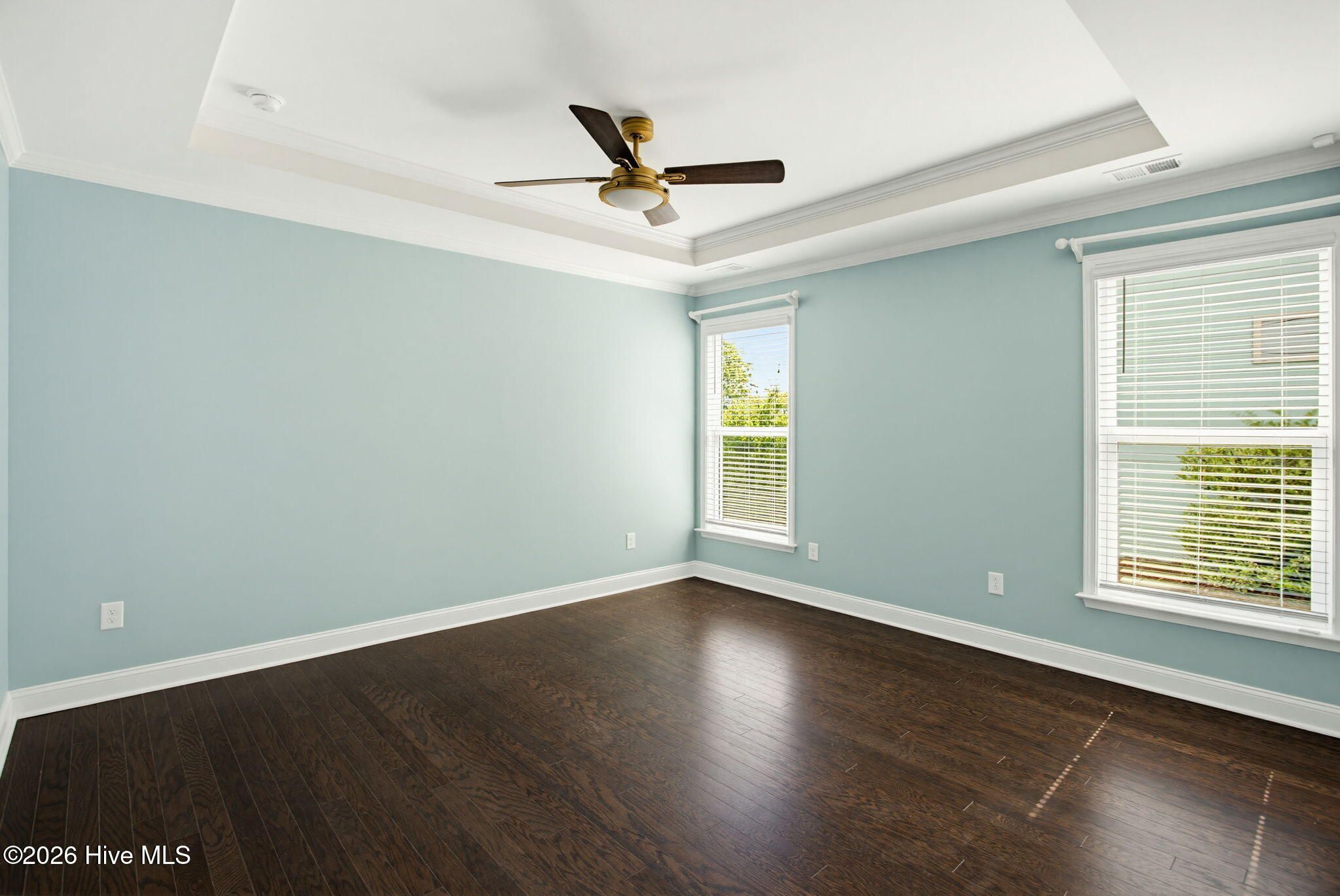 - Master Downstairs, Walk-in Closet(s), Tray Ceiling(s), High Ceilings, Ceiling Fan(s), Walk-in Shower
