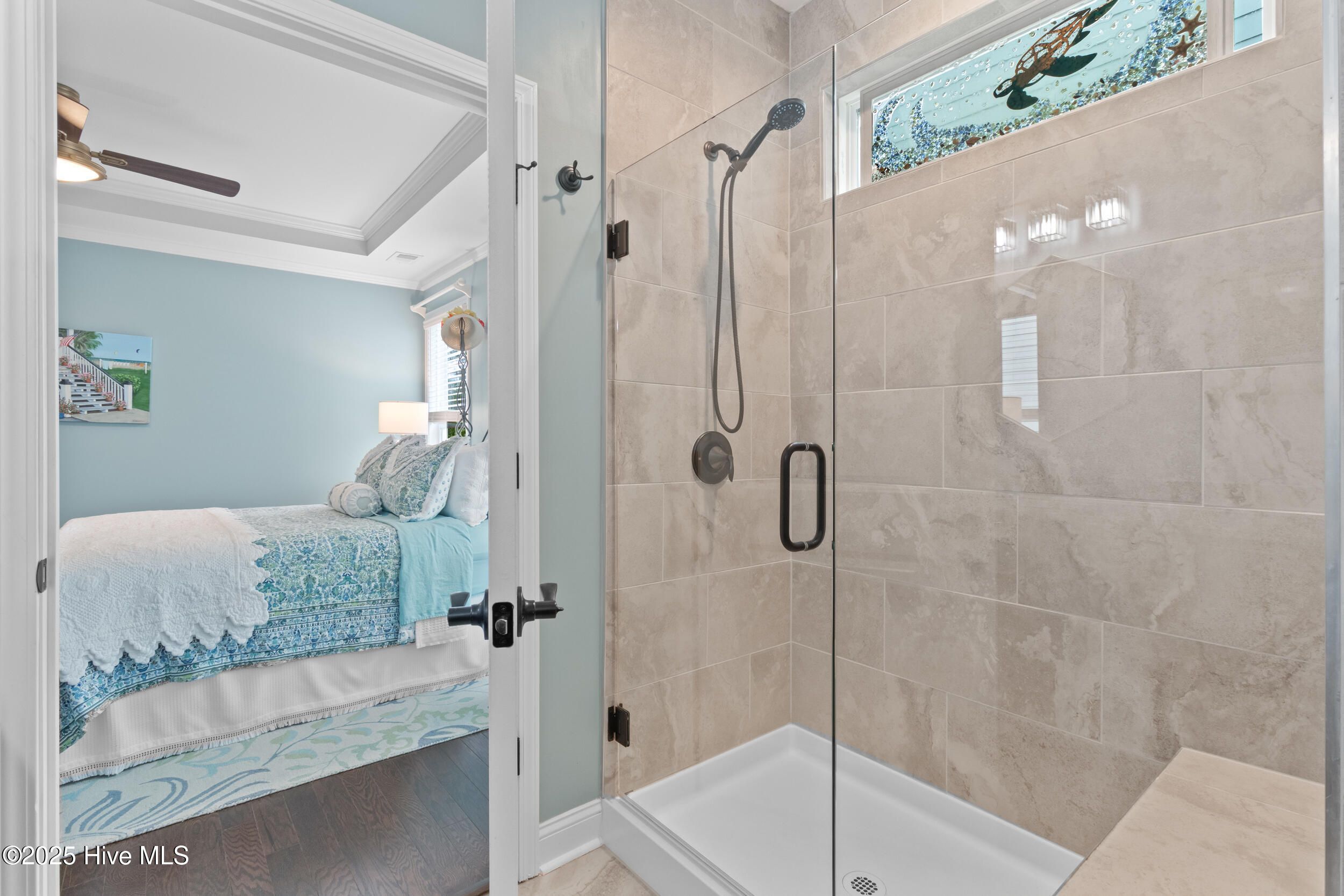 - Master Downstairs, Walk-In Closet(s), Tray Ceiling(s), High Ceilings, Walk-In Shower, Kitchen/Dining Combo