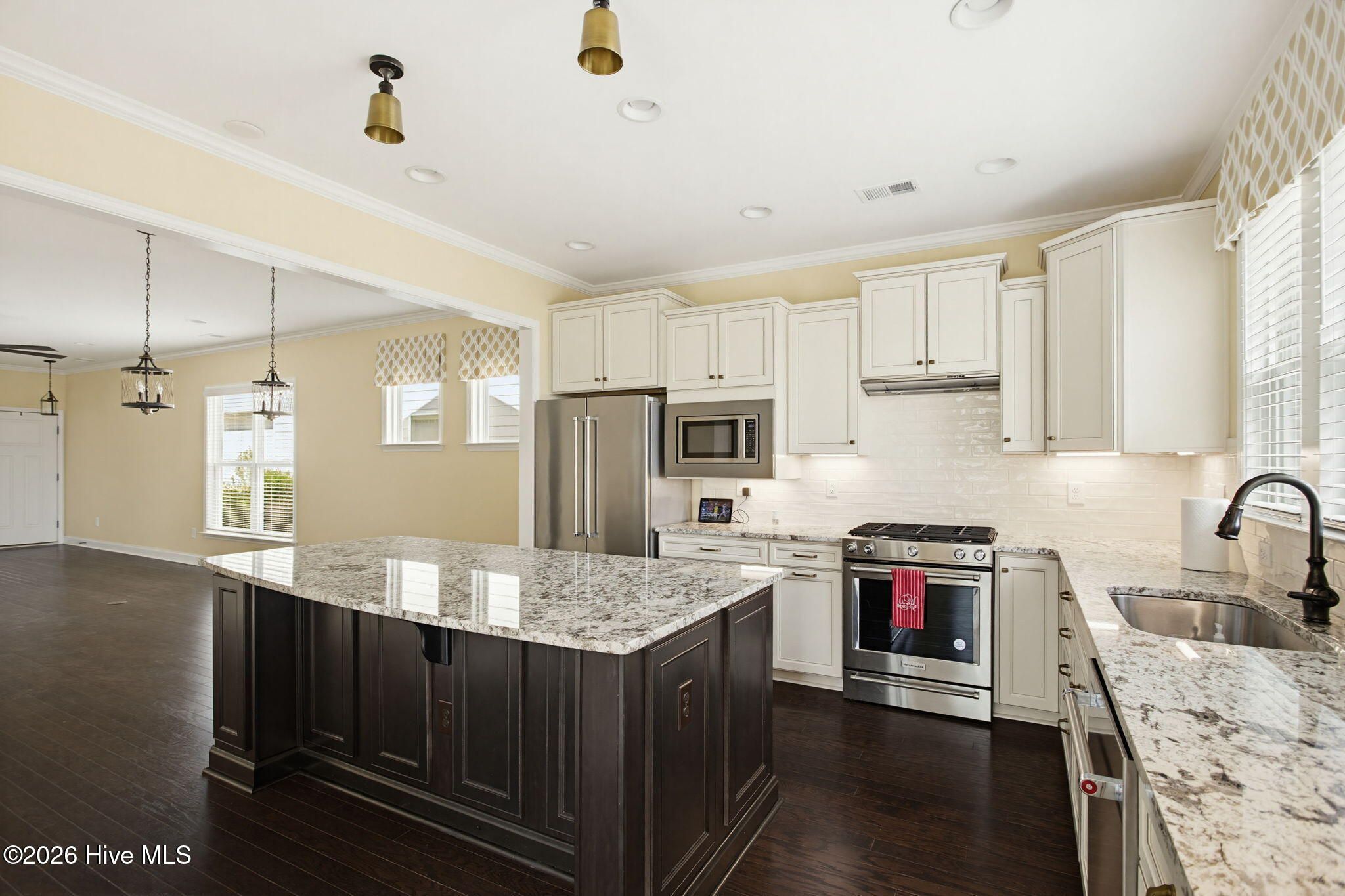 Move-in ready and full of charm, this beautifully maintained home in a sought-after Wilmington community offers the perfect blend of comfort and coastal lifestyle. Designed with an inviting open floor plan, the main living area flows seamlessly, creating an ideal space for both everyday living and entertaining. Natural light fills the home, highlighting the spacious layout and thoughtful design. This property features a Generac standby generator, a wine storage closet, and custom closets and kitchen pantry! A versatile office/flex room with a closet provides the perfect space for working from home, guests, or additional living needs. Just off the kitchen, a bright sunroom offers a cozy spot to relax, dine, or enjoy views of the surrounding landscape year-round. With two bedrooms on the main level, and a top floor bonus room, there is ample space for all! Enjoy morning coffee or unwind in the evening on the screened porch, a perfect spot to take in the peaceful surroundings. The adjoining patio provides additional outdoor space for grilling, gathering, or simply relaxing. The kitchen opens to the living and dining areas, making it easy to stay connected, while ample storage and workspace support both casual meals and special occasions. Located in a vibrant community, residents enjoy access to amenities such as a neighborhood pool, clubhouse, and retreat-like common areas, offering opportunities to relax and connect. Sidewalk-lined streets and scenic surroundings add to the welcoming atmosphere. Conveniently situated near shopping, dining, and coastal attractions, this home offers both tranquility and accessibility. Whether you're looking for a primary residence or a coastal retreat, this property delivers comfort, style, and a desirable lifestyle.