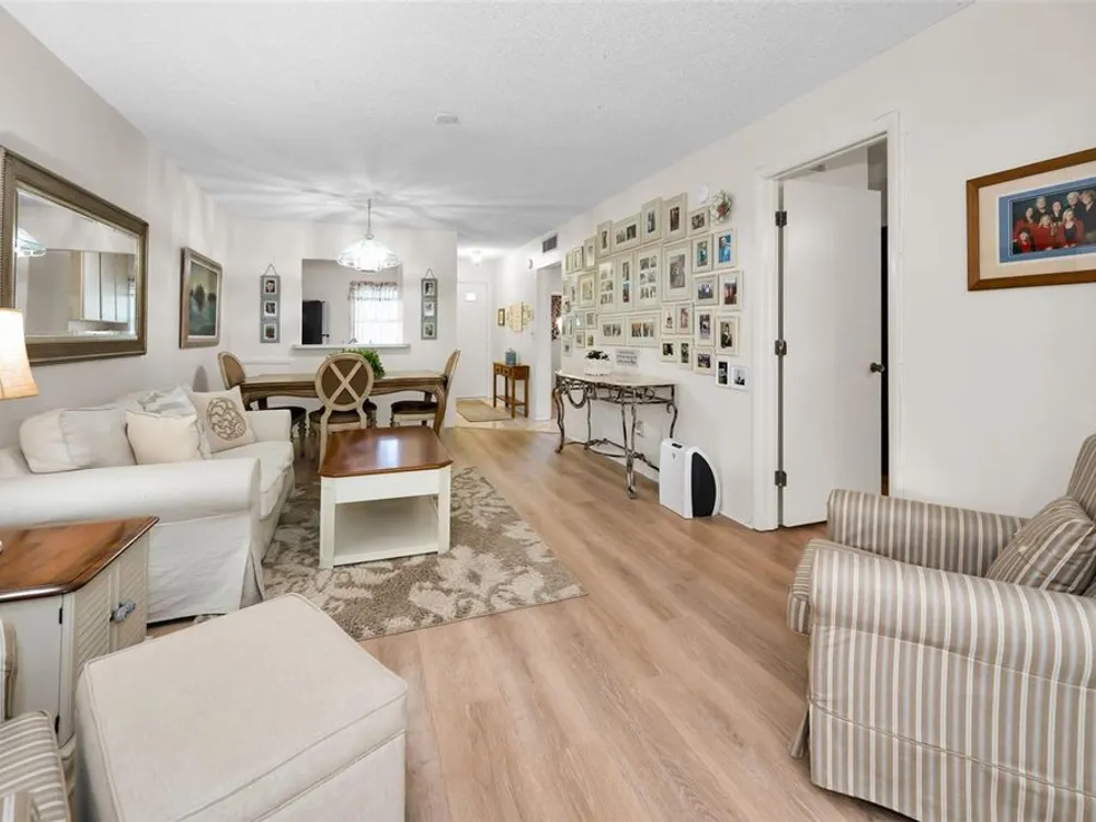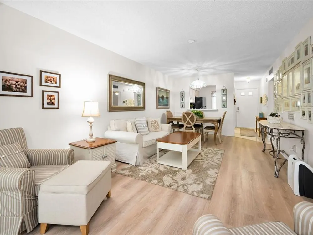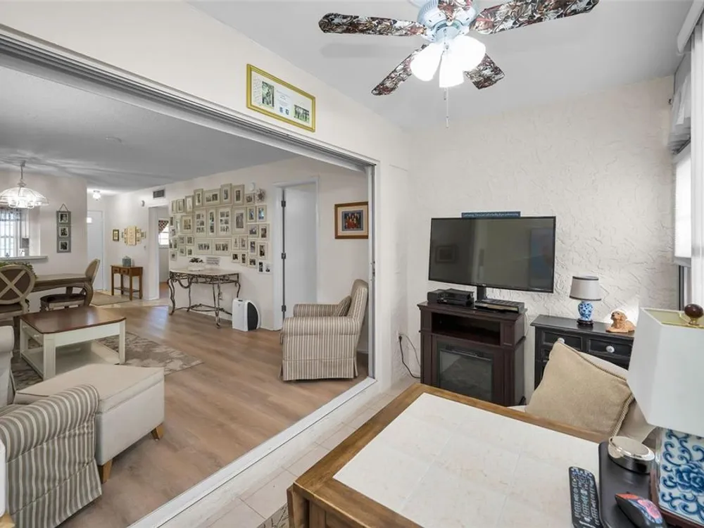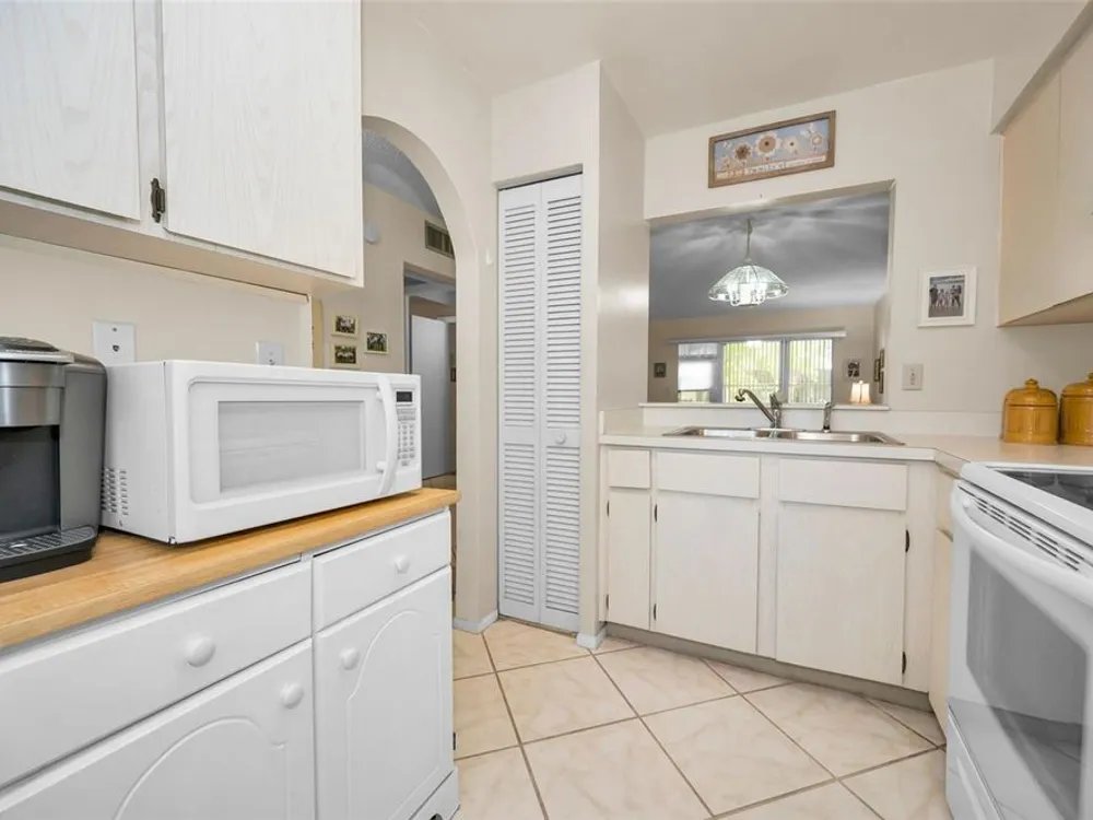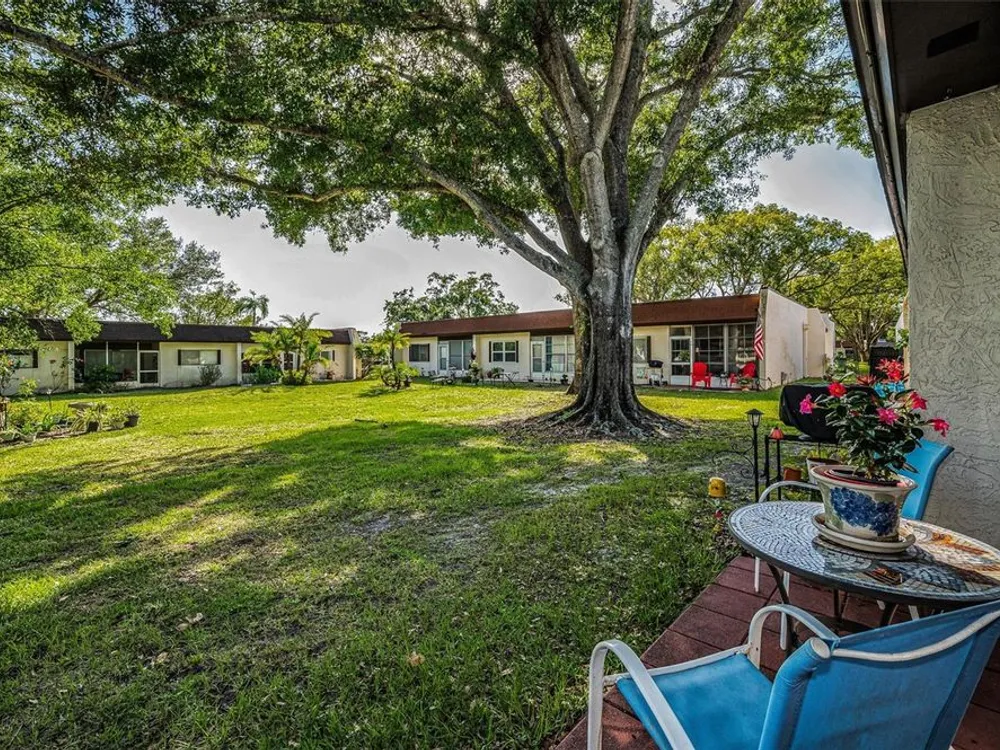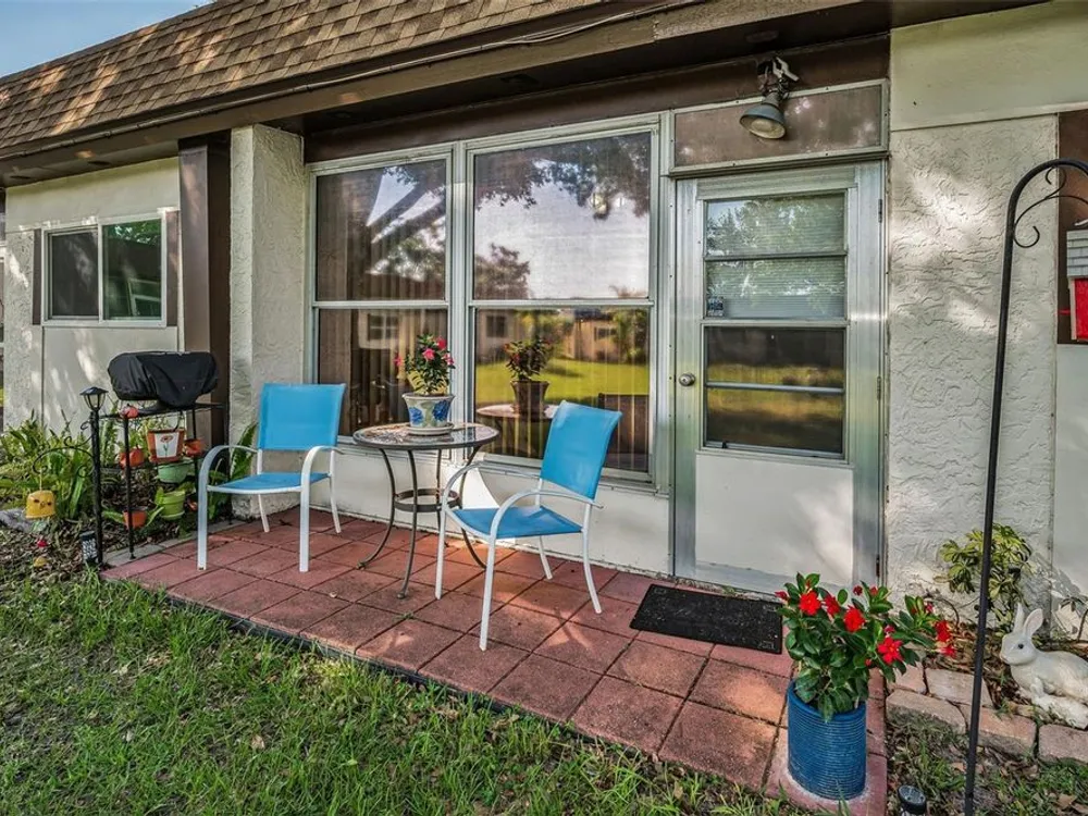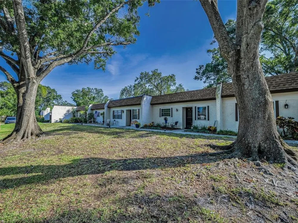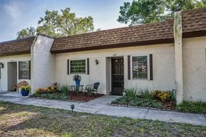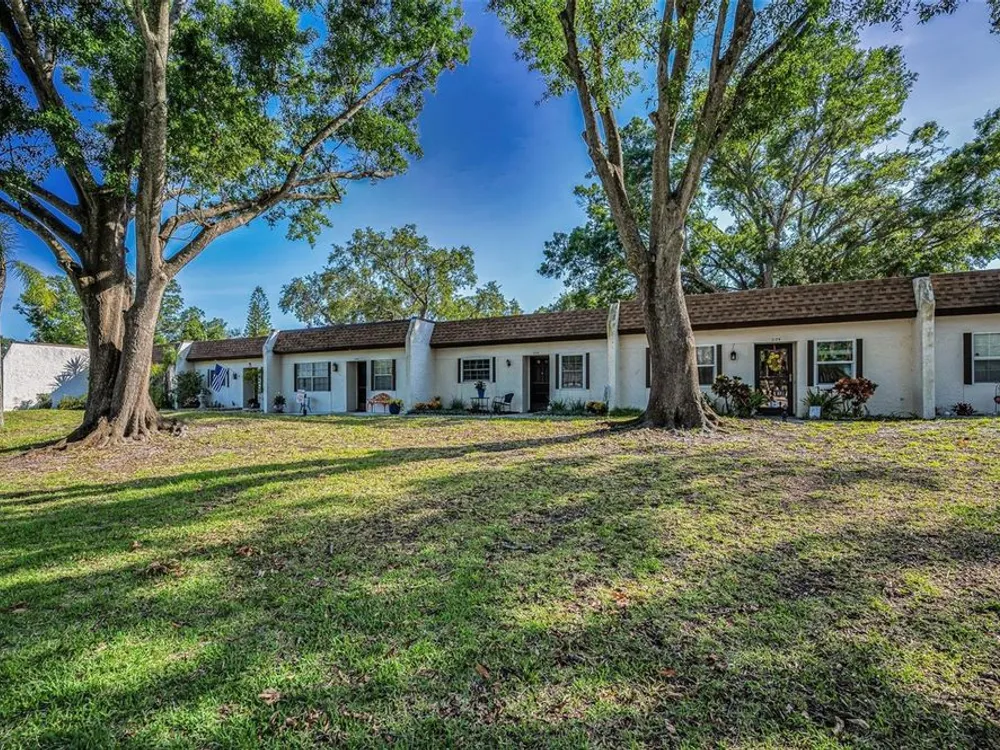 Lovely Highland Lakes villa located in Mission Grove. This villa is conveniently located just two blocks from the clubhouse and all of the amenities this golf course community offers. Villa shows light and bright. Newer laminate floors provide very easy maintenance of flooring. Finished Florida room overlooks a beautifully landscaped courtyard. Great room floor plan with pass through from kitchen. Larger bedroom has built-in Murphy bed with loads of storage. Washer and dryer are in a laundry closet and do convey. Villa has replacement, double pane windows for energy efficiency and whisper quiet interior environment. Villa conveys with an assigned carport, storage closet and room for golf cart parking. Mission Grove has their own swimming and additional laundry facility. Highland Lakes is a very active adult community with a golf course, resort style heated pool and hot tub. There is a monthly calendar of events which includes multiple clubs and live entertainment. Clubhouse has a library, card and billiard rooms, auditorium and wood working/ceramics workshops. Pickle ball and tennis courts for the more active residents. Second pool is at the lodge which overlooks Lake Tarpon. There is secured RV/boat storage when space is available.
