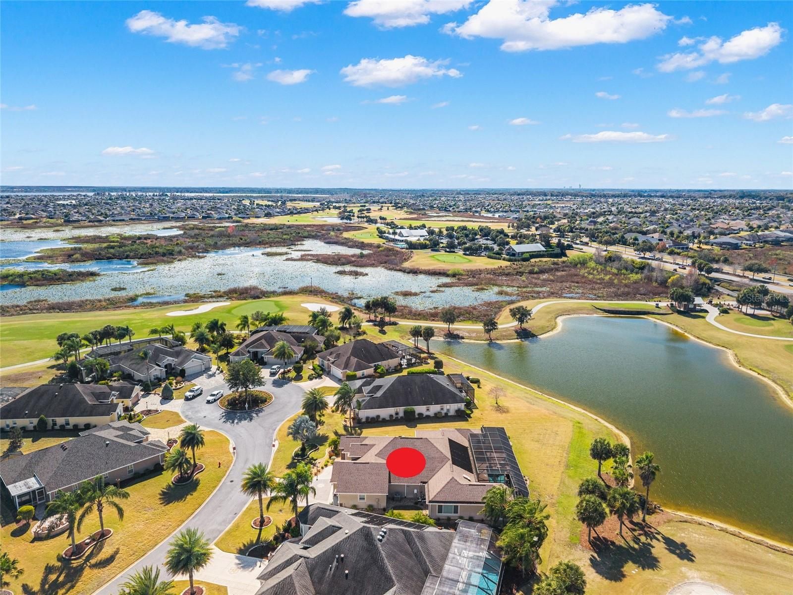 One or more photo(s) has been virtually staged. ATTENTION Home Buyers: If you have been holding out for the “TOTAL PACKAGE,” you just found it! Located in the Village of Gilchrist, this show-stopping EXPANDED LANTANA Designer home sits on an oversized 0.348-acre CUL-DE-SAC LOT with ~ 160° panoramic GOLF COURSE FRONTAGE & WATER VIEW overlooking the Evans Prairie Championship Golf Course at Killdeer, Hole #1. Enjoy the ultimate outdoor haven—SOLAR HEATED, SALTWATER POOL + above-ground BullFrog SPA under a huge MANSARD BIRDCAGE, plus a LANAI w/ SUMMER KITCHEN built for entertaining. CURB APPEAL says “WOW” starting w/ a freshly painted CBS exterior (2026), stacked stone accents, an artistically painted driveway/walkway, & mature landscaping w/ hardscaping surrounding rock filled beds. The inviting front entry displays an elegant door w/ a ¾ length oval LEADED GLASS insert, matching sidelites, & an arched transom overhead. Step inside the spacious FOYER w/ soaring ceilings, crown molding, neutral color palette, & diagonal-set 20” x 20” TILE FLOORS which flow throughout the main LA. Vaulted ceilings, crown molding & recessed lighting highlight the LIVING ROOM w/ 2 sliders to the west-facing LANAI for beautiful sunset golf/water views. The DINING ROOM area has a cozy yet light & bright ambiance. The chef’s KITCHEN features recessed lighting, upscale MAPLE CABINETRY w/ CROWN & LIGHT RAIL MOLDINGS, over & under lighting, a lazy susan, pull outs, pantry + wine rack, GRANITE countertops, & SS APPLIANCES. A peninsula breakfast bar w/ PENDANT LIGHTING creates the ideal space for casual meals & conversation. Just beyond the kitchen are FRENCH DOORS w/ built-in blinds that lead to a sensational 37’ x 15’ MULTIPURPOSE ROOM w/ lighted TRAY CEILING, dual ceiling fans, & 3 sets of sliders framing that breathtaking view! The INDOOR LAUNDRY is located off the kitchen & provides access to the garage. BRs #2 & #3 have abundant natural light, PLANTATION SHUTTERS & cathedral/vaulted ceilings. BA #2 has a tiled TUB/SHOWER COMBO w/ glass doors. The PRIMARY SUITE is a spacious retreat featuring 2 LARGE WALK-IN CLOSETS w/ custom organization, and an ENSUITE BATH w/ dual sinks, private water closet w/ pocket door access, and a tiled ROMAN SHOWER w/ built-in seat ledge & shower niche. BA #3, serves as the POOL BATH w/ a tiled ROMAN SHOWER, upgraded finishes, & access to the lanai/birdcage areas. This outdoor haven is definitely the center of attraction in this home - perfect for entertaining! The lanai & pool deck are finished w/ Chattahoochee River Rock flooring for a seamless look. The SUMMER KITCHEN features granite counters & backsplash, SS built-in grill w/ hood, sink, & mini-fridge. Remote electric screens can optionally separate the lanai & pool areas. The pool has 3 WATERFALL FEATURES accented by FIREPITS ON TOP (fueled w/ propane gas). Add’l perks include: Partial TURNKEY pkg & 2021 Yamaha EFI QuietTech gas golf cart, RING video doorbell, security system w/ cameras, 3 SOLAR TUBES, solar attic fans, & a 2.5 car garage w/ epoxy floor & attic pull down stairs. Arch Shingle Roof (2013) w/ roof rejuvenation process (2026), HVAC - 2 zones + gas heat (2021, 2022), HWH (2013) plus much more! Start “Lovin’ the Lifestyle” of The Villages with all of its legendary recreation amenities - FREE nightly entertainment at 3 town squares, complimentary year round executive golf, 3500+ social clubs AND living in this PERSONAL SANCTUARY that feels like a resort! Call today for your private showing! Bond Balance ~ $17,638.51