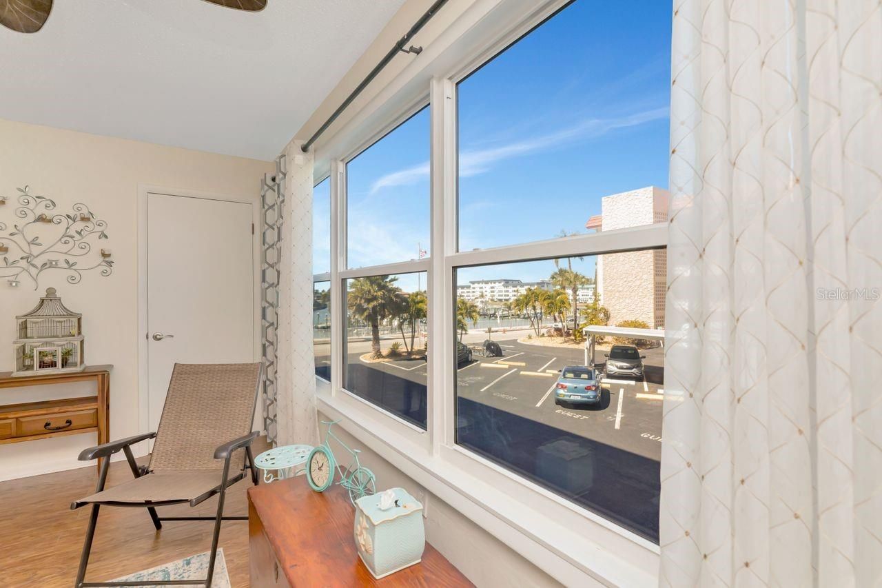 Paradise awaits in this fabulous 2nd Floor unit in the wonderful 55+ community of Town Shores of Gulfport. This 1/1 Deluxe unit with new carport, is spacious and has been beautifully updated with newer impact windows, storm door, updated HVAC, updated kitchen and bath, and it shows beautifully! The Florida room is bright and sunny, with a view of Town Shores Docks and Boca Ciega Bay. Town Shores is a great community and offers 4 swimming pools, boat docks, pickle ball/tennis, shuffleboard, kayak storage, BBQ grills, fitness room, clubhouse with a library, pool tables, and lots of fun weekly activities. The Eton building is well-cared for, and has completed the Milestone Inspection and SIRS, and is steps away from great restaurants, entertainment and all the things Gulfport.This unit is move-in ready, just pack up your belongings, and set out to enjoy the Historic Waterfront District.
