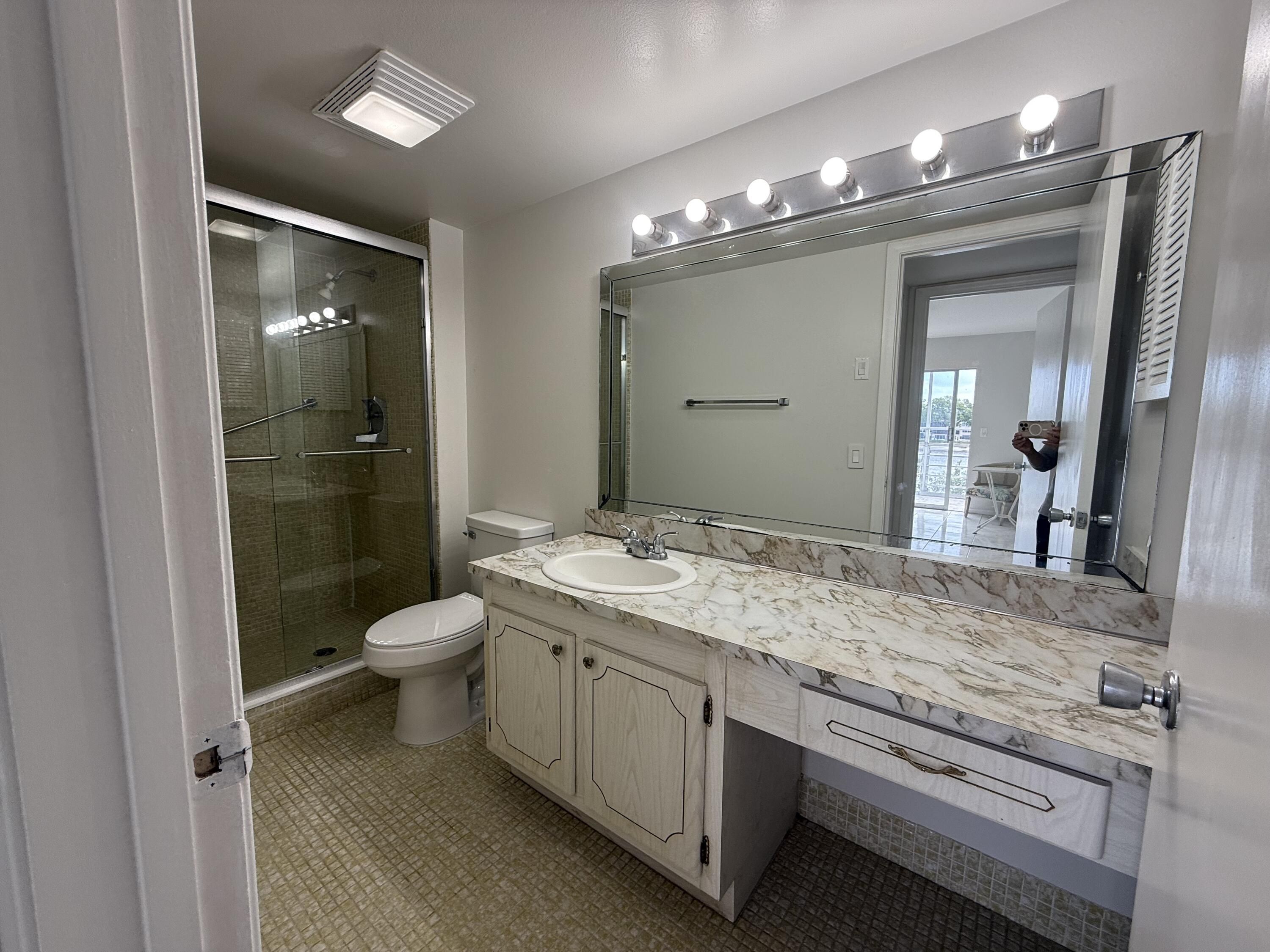 EXPERIENCE LUXURY RESORT-STYLE LIVING WITH BEAUTIFUL WATER VIEWS IN THIS SPACIOUS THIRD FLOOR UNIT,FEATURING THE LARGEST LAYOUT IN THE VILLAGE. THIS VERY LARGE 2 BEDROOMS AND 2 FULL BATHS, CONDO HAS CENTRAL AIR, IS COMPLETELY TILED , UNFURNISHED AND MOVE IN READY. THE PRIMARY BEDROOM FEATURES AN EN-SUITE BATH AND WALK IN CLOSET. VERY WELL MANAGED ASSOCIATION. BUILDING HAS TRASH CHUTES, AN ELEVATOR AND 2 LAUNDRY ROOMS ON EVERY FLOOR. GREENBRIER HAS IT'S OWN PRIVATE SWIMMING POOL. COME & ENJOY RESORT STYLE LIVING IN THIS GATED COMMUNITY FOR ADULTS 55 +. CLUBHOUSE features a theater, indoor pool, card room, community/party room, billiard room shuffle board ,tennis , pickleball ,bocce and two outdoor pools. Numerous heated outdoor pools throughout the community. Separate fitness center with Separate fitness center with gym , outdoor heated pool and a resistance pool. Two guarded gates and 24 hour roving security patrol. GREAT LOCATION: close to shops, restaurants, PBI airport and beaches