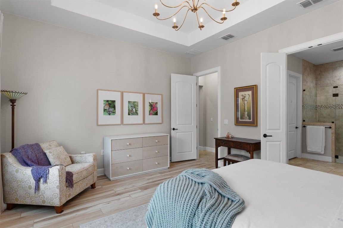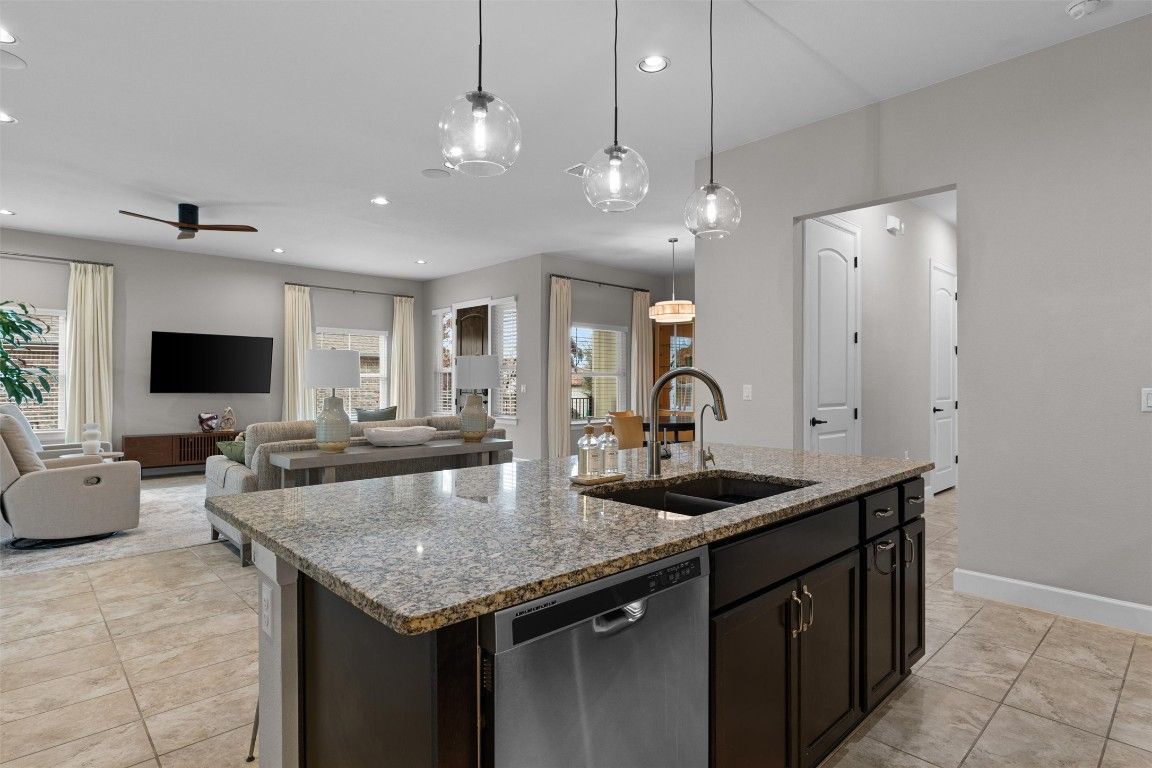 - Breakfast Bar, Ceiling Fan(s), Chandelier, Double Vanity, Granite Counters, High Ceilings, Main Level Primary, NoInteriorSteps, Pantry, Recessed Lighting, See Remarks, Walk-In Closet(s), High Speed Internet
