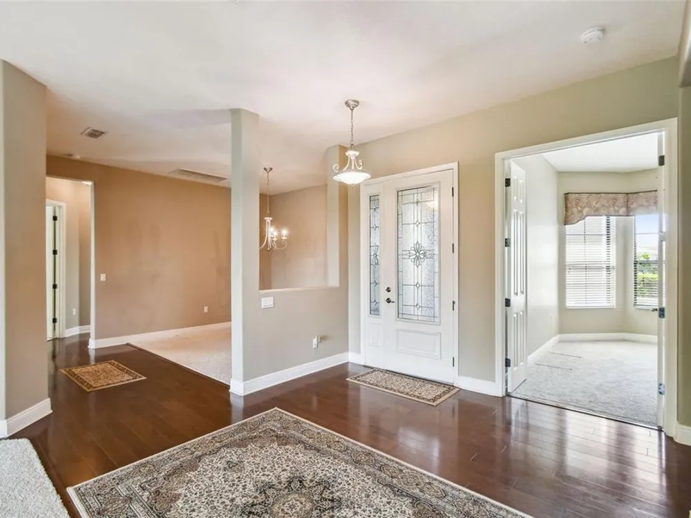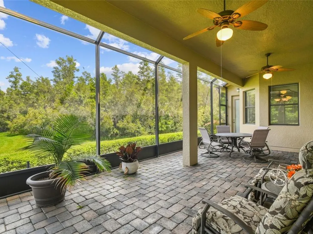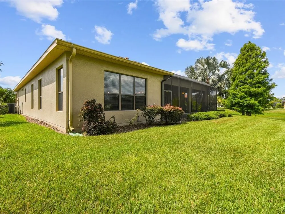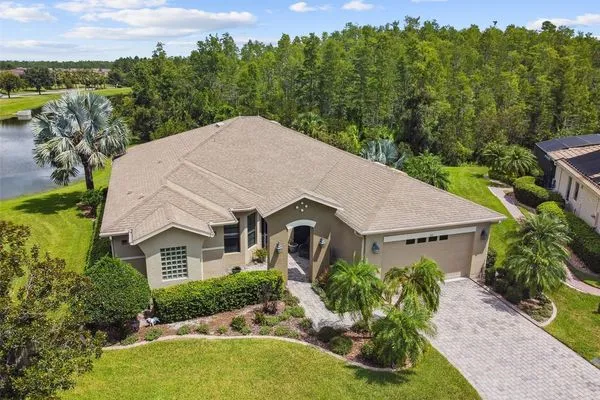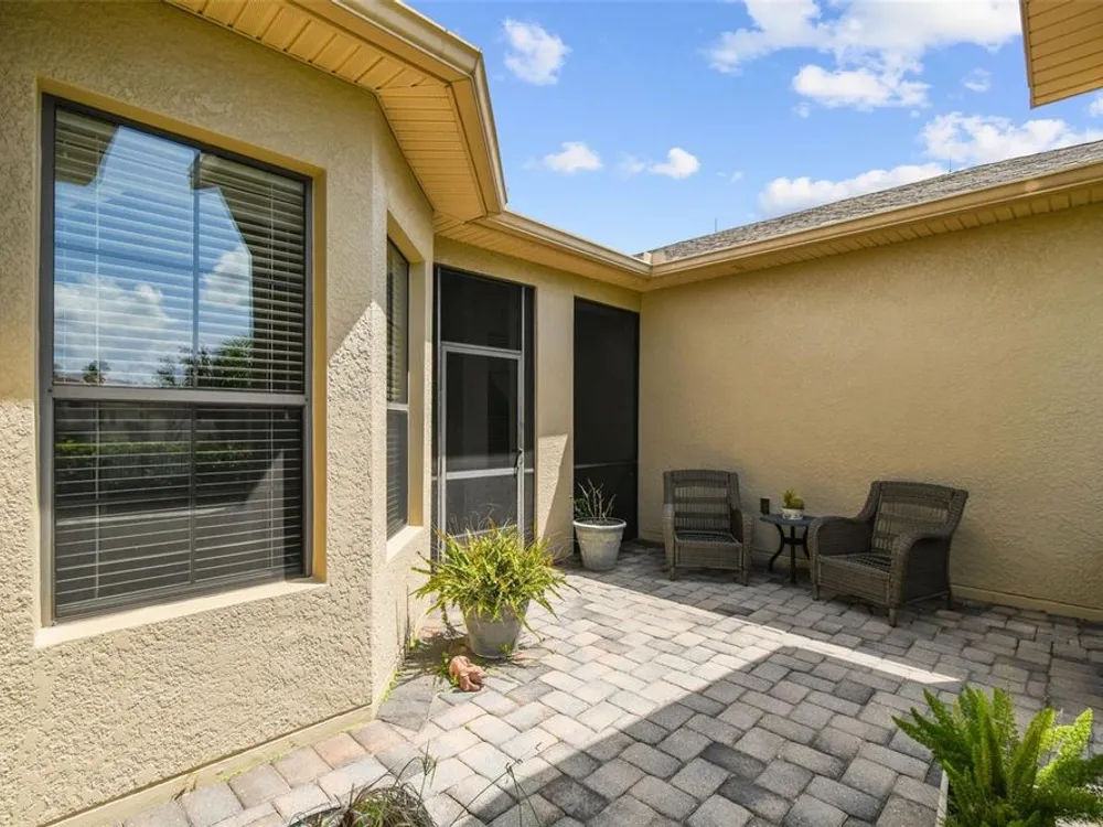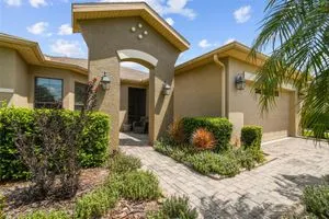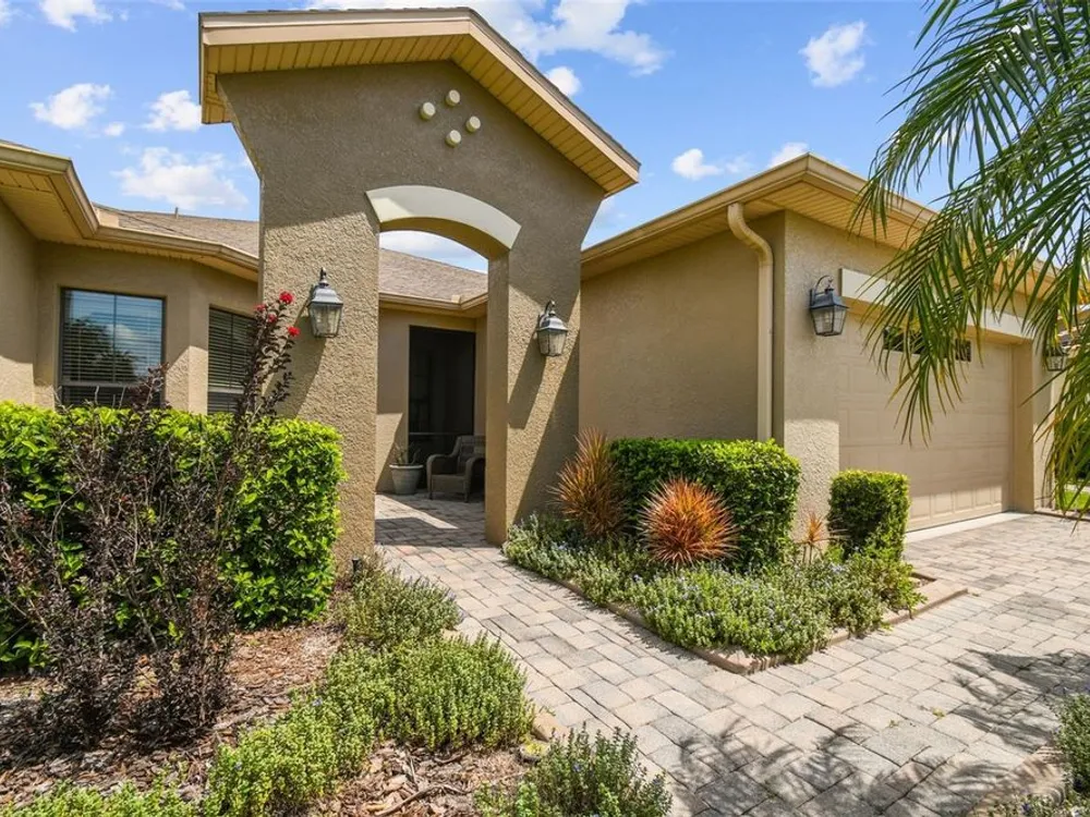 PRICE REDUCTION ON THIS GREAT WATER and CONSERVATION VIEW HOME! Welcome to this exceptional 2-bedroom, 2.5-bath home located on a quiet cul-de-sac near the Palms Resort Amenities Center. This highly desirable Coconut Grove model offers the perfect blend of privacy, space, and Florida charm—complete with tranquil water and conservation views. Step through the arched courtyard entry and into the screened porch, where a beautiful leaded glass door opens into a light-filled, open-concept living space. The chef’s kitchen features abundant counter and cabinet space, along with a cozy breakfast nook that frames serene backyard views. The spacious living and dining areas flow effortlessly into the Florida room, ideal for relaxing or entertaining. The primary suite is generously sized and features walk-in closets, an en-suite bath with split vanities, a soaking tub, and a separate shower with built-in seat. The guest bedroom and bath are thoughtfully positioned on the opposite side of the home, providing privacy for visitors. Enjoy the outdoors year-round on the oversized screened and covered lanai, offering peaceful, private views of the water and conservation beyond. Additional highlights include: Den/study or flex space. Lush, custom landscaping for outstanding curb appeal. 2-car garage with extra storage space, and a convenient half bath for guests. This beautiful home combines comfort, functionality, and a premier location. Solivita is renowned for its vibrant 55+ community, offering an array of activities and amenities tailored to active adults. Whether you’re enjoying a round of golf, engaging in fitness classes, or simply strolling along scenic walking paths, this neighborhood promotes an active and fulfilling lifestyle with over 200 clubs, sports, and activities to choose from. Enjoy the community’s clubhouse, softball field, 14 swimming pools, an indoor walking track, and much more. Every day offers something new to explore and enjoy! This home also features easy access to nearby shops, dining, and health care, offering the perfect balance of privacy and lifestyle.