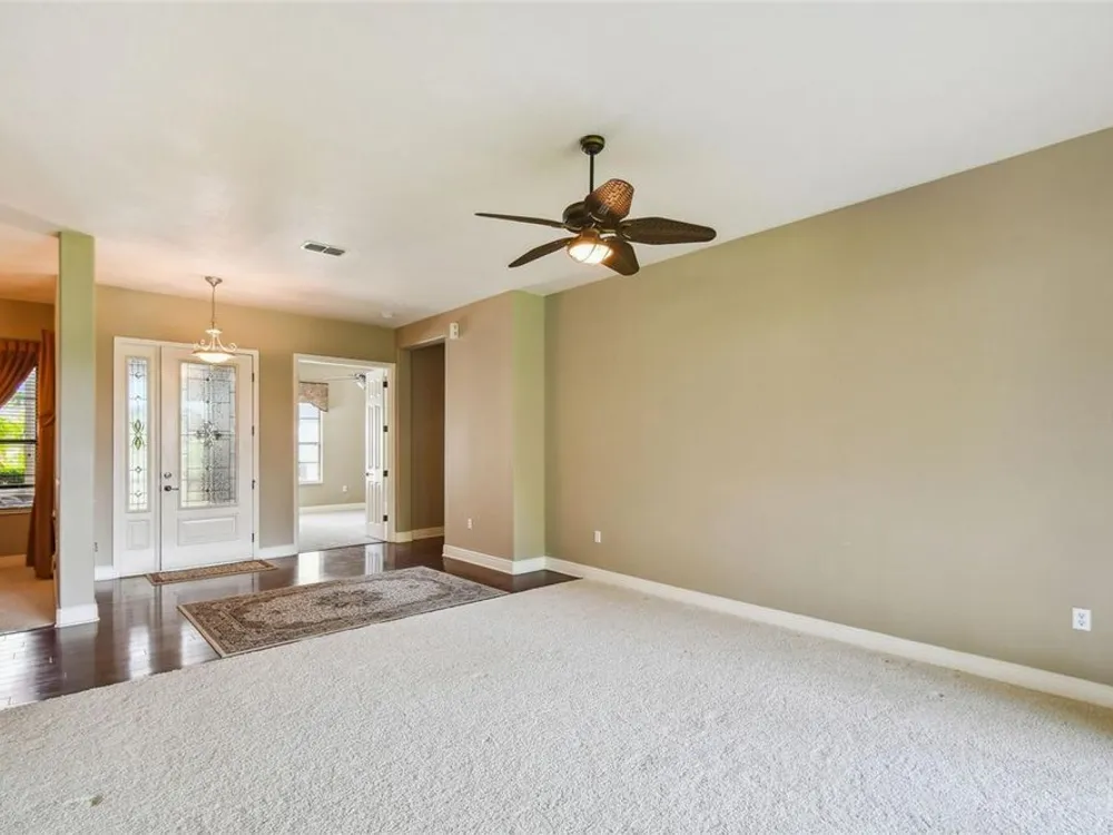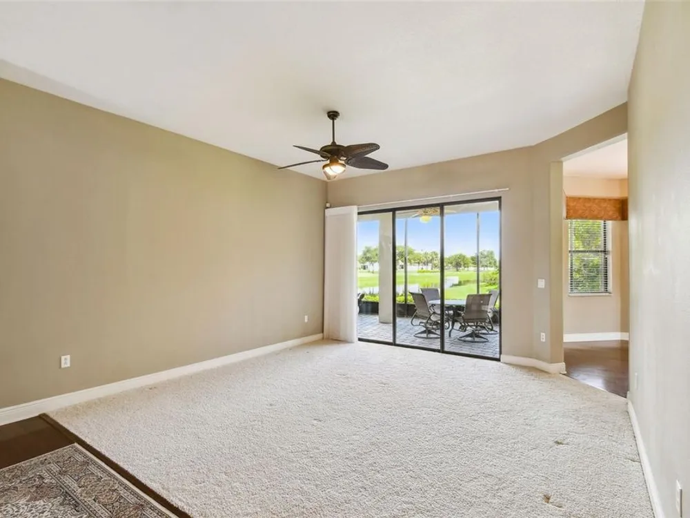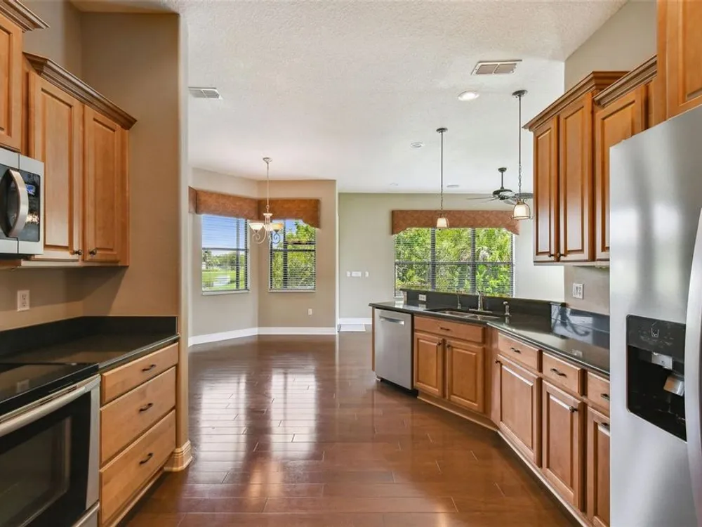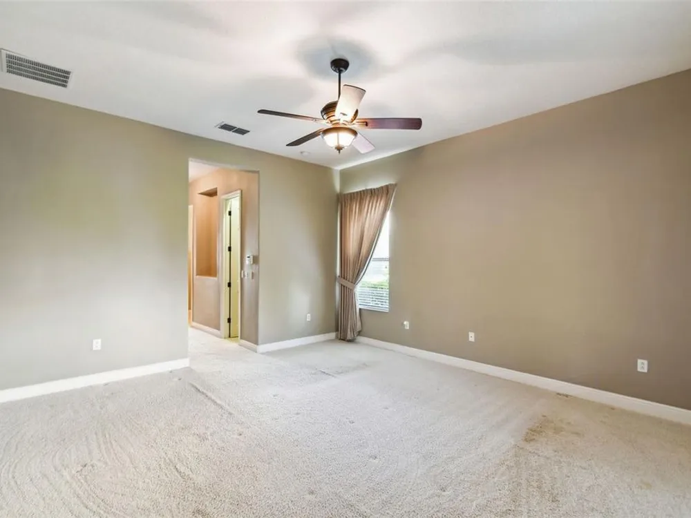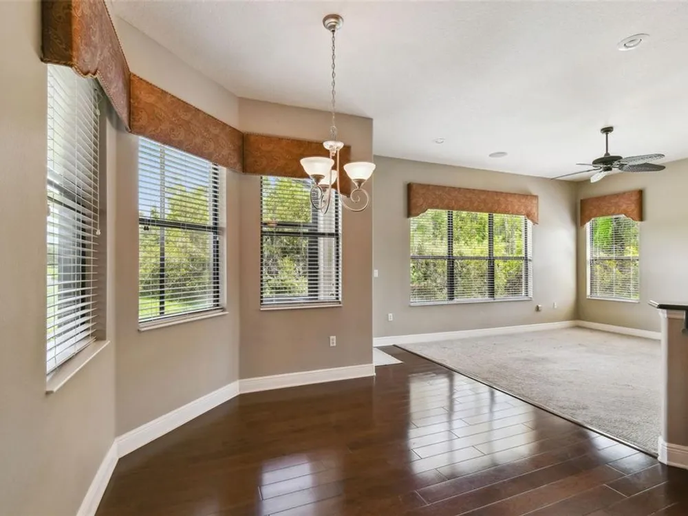 - Ceiling Fan(s), Eat-in Kitchen, High Ceilings, Kitchen/Family Room Combo, Living/Dining Room, Split Bedrooms, Stone Counters, Thermostat, Walk-In Closet(s), Window Treatments