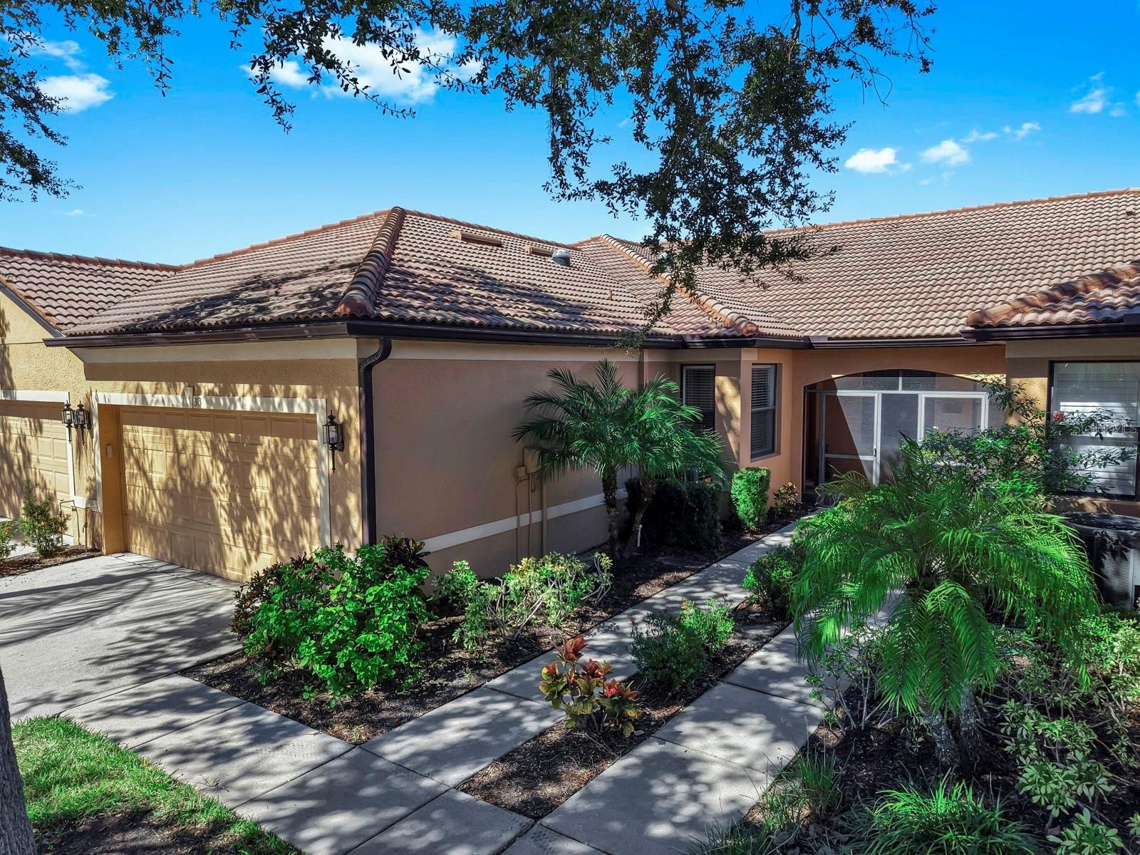 Welcome to Southshore Falls, a premier 55+ Del Webb gated community offering resort-style living in beautiful Apollo Beach! This charming Front Entry 2-bedroom, 2-bath Villa with a den/study (optional 3rd bedroom) provides comfort, privacy, and an ideal open layout for both relaxing and entertaining. The home features no carpet tile and wood flooring throughout, with newly updated ceramic tile in the bedrooms and den. The split floor plan ensures privacy, while the open concept kitchen, dining, and great room seamlessly connect to the screened-in lanai, creating the perfect indoor/outdoor Florida lifestyle. The spacious eat-in kitchen offers abundant cabinets, counter space, and a brand-new stainless steel deep farm sink with a commercial faucet ideal for any home chef. The garage includes built-in cabinets, a utility sink, and a freshly painted floor for easy maintenance and organization. A water softener system is also included. Furniture is negotiable, and the seller will provide a fresh interior paint color of your choice prior to move-in, a rare bonus! Southshore Falls residents enjoy 24-hour gated security and an impressive 14,000 sq. ft. clubhouse with multiple pools, fitness center, pickleball, tennis, bocce, internet café, walking trails, and social clubs galore. This home is walking distance to one of the community pools and the lagoon dock, perfect for enjoying peaceful Florida evenings outdoors. Live the lifestyle you've always dreamed of in this vibrant, active adult community close to shopping, dining, and Tampa Bay & Sarasota attractions, including the country's most beautiful Beaches!