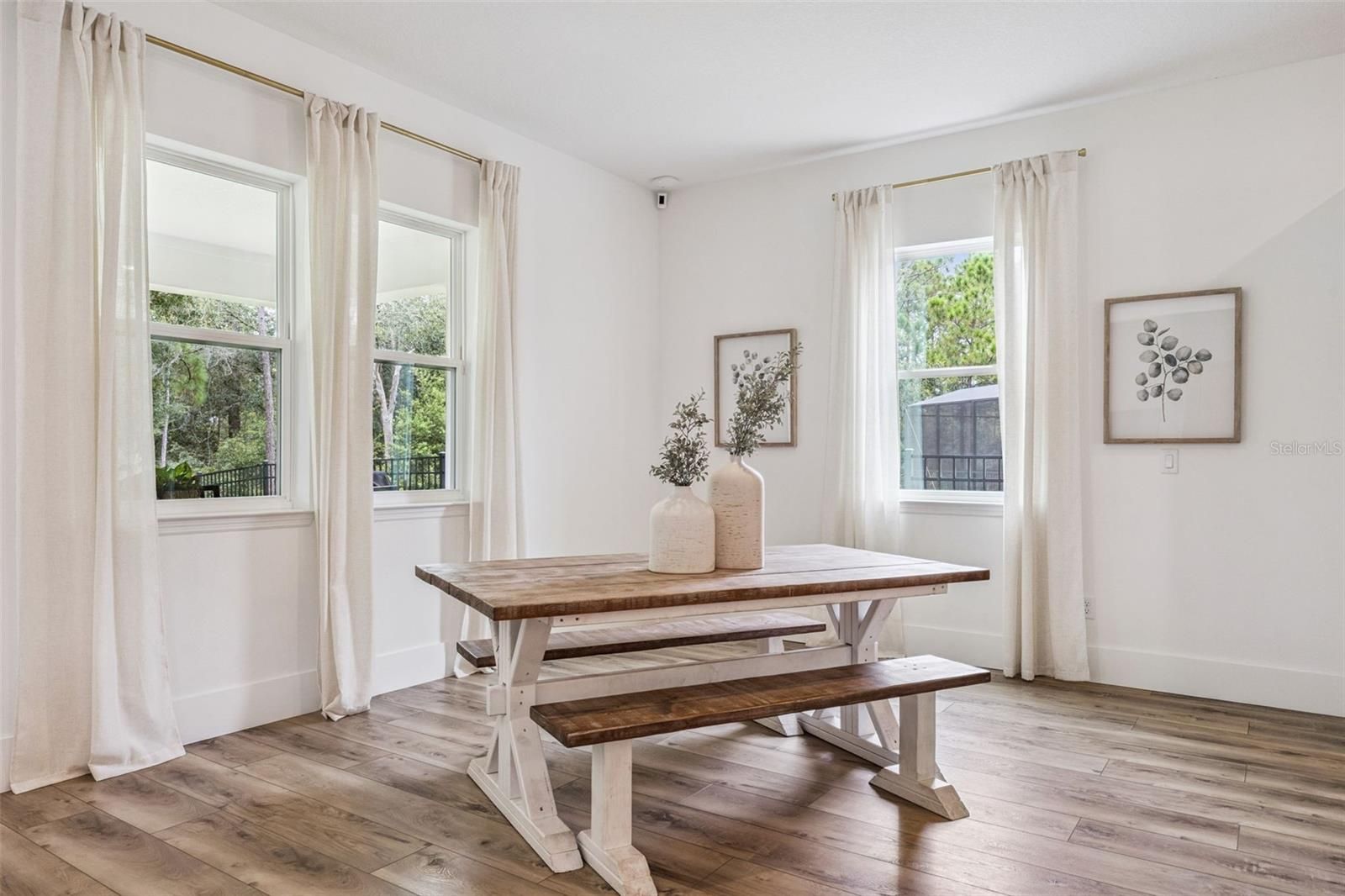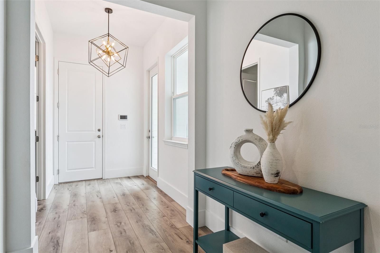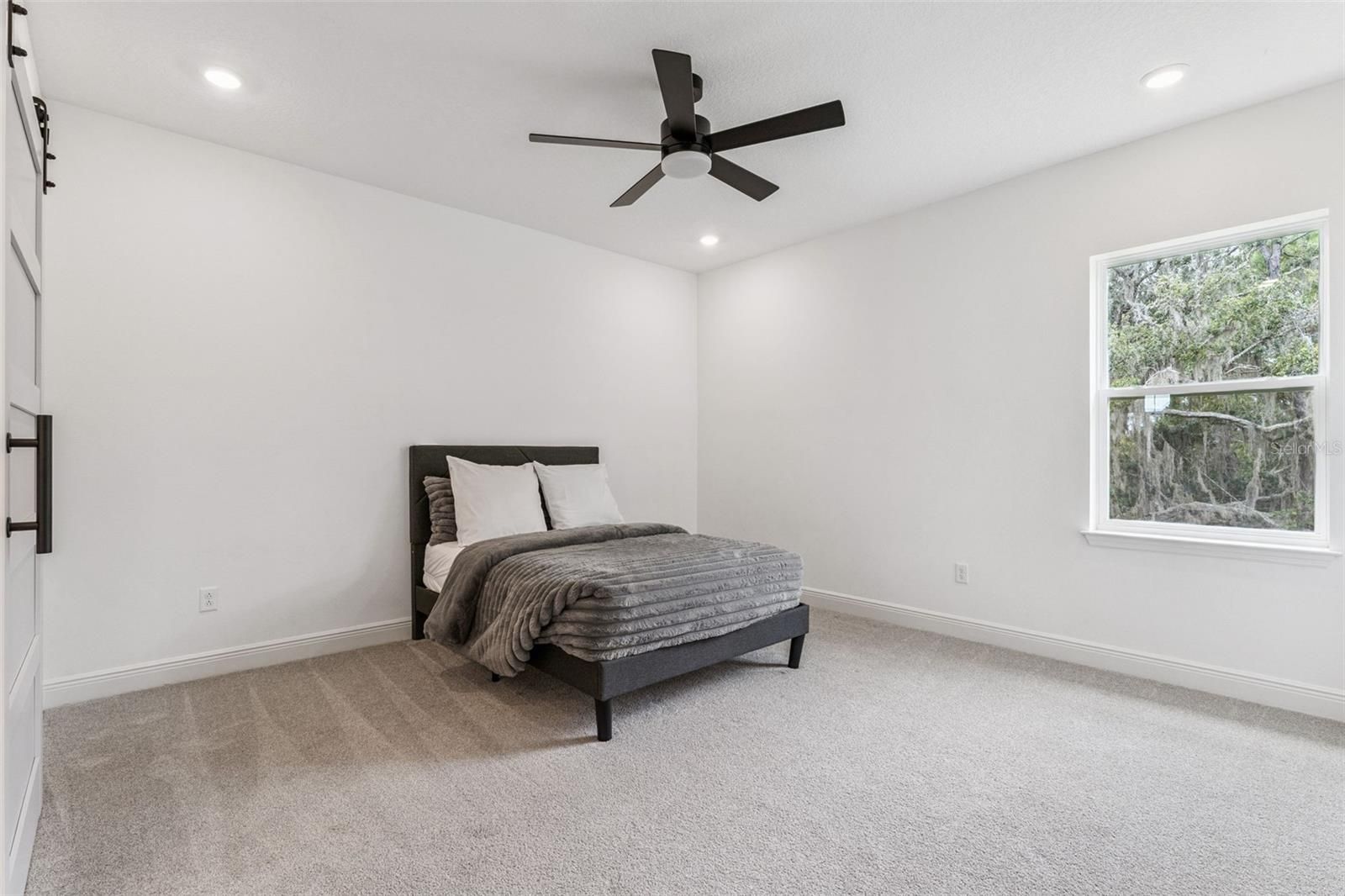 Practically brand new, this gorgeous 4 bedroom, 3.5 bath home offers 3,000 sq ft of living space plus a 3-car garage, tucked in the only fully built-out cul-de-sac on a private conservation lot. Energy savings come easy with fully paid-off Tesla solar panels, plus a whole-home water softener and reverse osmosis system. Inside, you’ll love the brand new luxury vinyl plank flooring, soaring ceilings, and an extra-large custom walk-in pantry with shelving and countertops. A private downstairs ensuite is perfect for guests, while three more bedrooms await upstairs. No detail was overlooked, upgraded extended driveway, gutters with a French drain system, epoxy-coated garage floors (including a metallic finish in one bay), stylish new barn doors, Pre-wiring for outdoor security cameras and pre-wired surround sound throughout. The extended covered patio is ready for an outdoor kitchen with plumbing and venting already in place. Weslyn Park offers amenities such as a community center, resort-style pools, a fitness center, walking and biking trails, playgrounds, a community garden, and open spaces with picnic areas. The community also provides access to a future amenity center with a kayak launch, fitness center, zero-entry pool, and restaurant, and promotes community events like outdoor fitness classes, farmers' markets, and festivals. Move-in ready, beautifully upgraded, and energy efficient, this home blends luxury with comfort in one of the best locations.