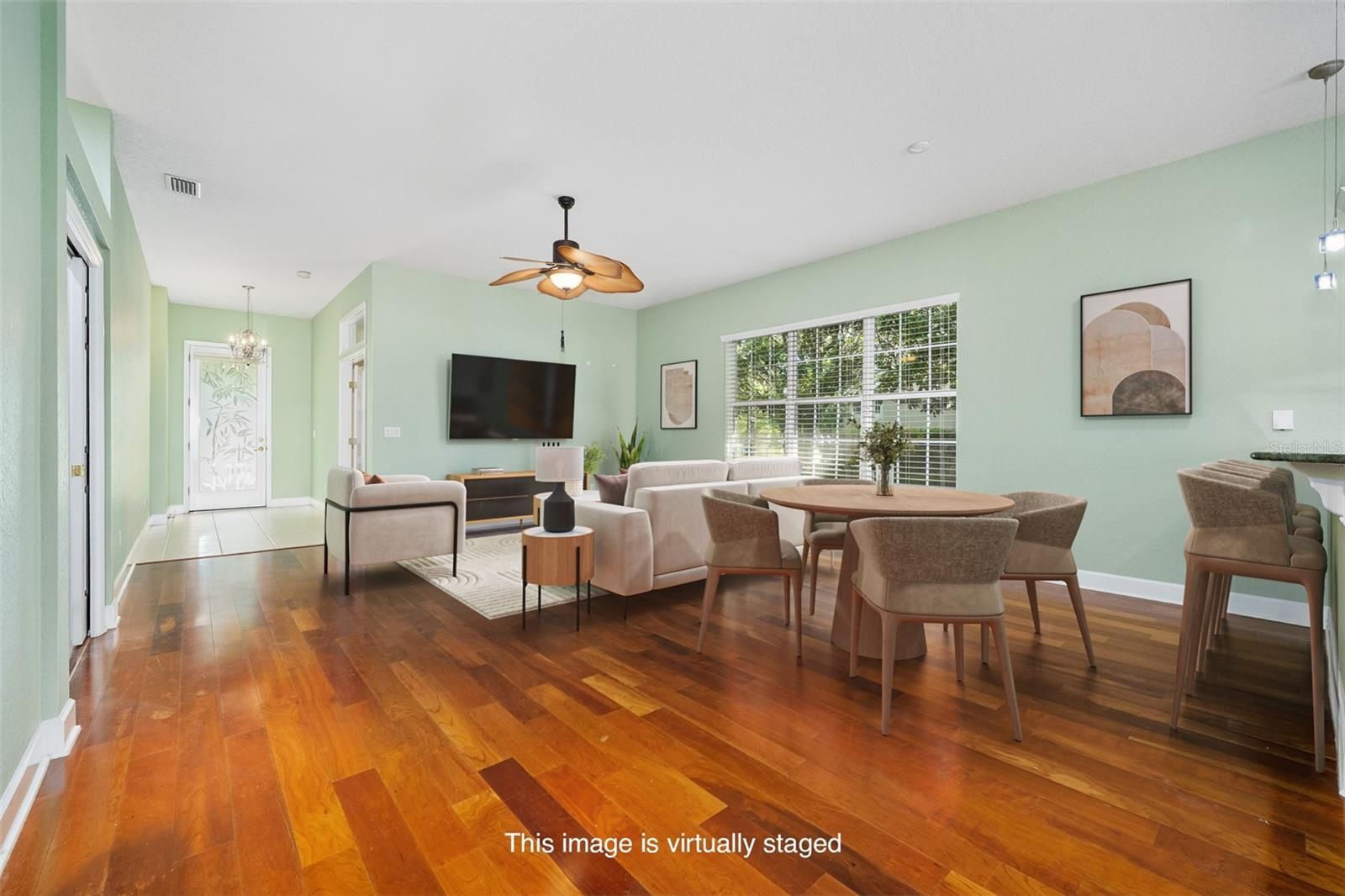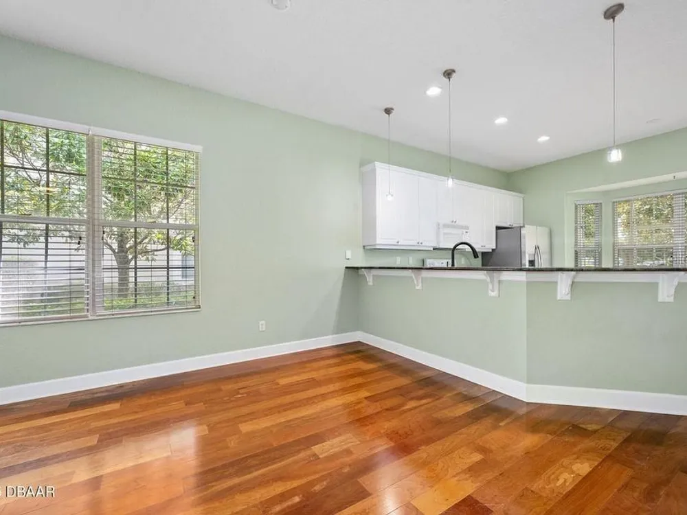 One or more photo(s) has been virtually staged. HALIFAX PLANTATION TOWNHOME... This is a single-family attached home located in the desirable Dunmore neighborhood of one of Ormond Beach's premier golf communities. It features 10-foot ceilings, large windows, and an open floor plan that seamlessly connects the kitchen, dining area, and living room. You'll find warm cherry wood flooring throughout the main living areas and 3 bedrooms, with tile in the foyer, kitchen, inside laundry room, and both bathrooms. The kitchen boasts newer granite countertops, and the primary bedroom includes French doors. The home offers two porches (one screened) and an attached two-car garage. Will have a NEW ROOF in August. It's also conveniently located very close to the public golf course, clubhouse, and the awesome restaurant/pub. For a nominal fee, memberships are available for the tennis courts, pool, and fitness center. The Master HOA covers common ground maintenance, and Dunmore's HOA fee includes lawn maintenance, landscaping, irrigation, and exterior painting every five years. All information recorded in the MLS is intended to be accurate but cannot be guaranteed.