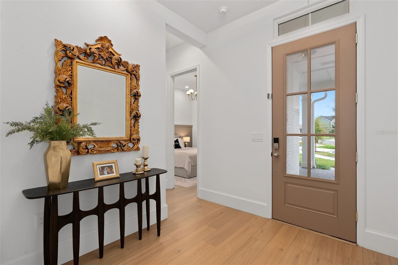Welcome to the NatureHood. Discover the perfect blend of luxury and nature in this exquisite Toll Brothers home, nestled in the highly sought-after Weslyn Park community inside Sunbridge—a place where modern living meets the beauty of the outdoors. This 4-bedroom + office (5th bedroom), 3.5-bathroom home is situated on one of the largest cul-de-sac lots, backing up to the serene Split Oak Forest for ultimate privacy and breathtaking views. Designed for both elegance and functionality, the home offers a spacious 3-car garage with a drop zone, an oversized saltwater pool and spa with a sun shelf, and a fenced backyard with extended patio, upgraded landscaping, irrigation, and gutters. Modern conveniences include a water softener, solar panels, EV charger, automated blinds and smart appliances. The home boasts with seamless flooring throughout, with no transitions between rooms, 7-inch baseboards, 8-foot doors, and upgraded brass door handles that add a refined touch. Designer chandeliers and additional recessed lighting elevate the ambiance, while all bathrooms have been tastefully upgraded. The primary suite is a true retreat, featuring dual shower heads and a freestanding tub. Step into a home where luxury meets sustainability, and nature is at your doorstep. Experience Naturehood in the heart of Sunbridge.