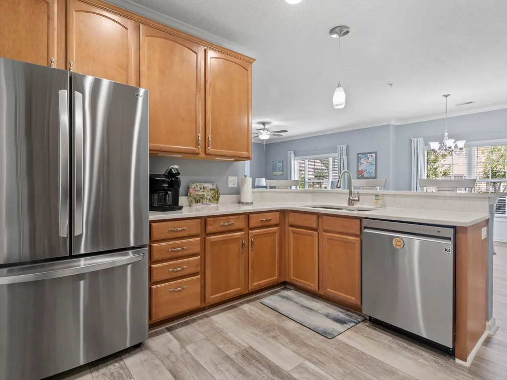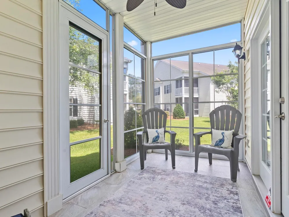 Beautifully Renovated 3-Bedroom Condo with Premium Upgrades in Blackmoor Golf Community Welcome to this stunning 3-bedroom, 2-bath end-unit condo located in the highly desirable Blackmoor Golf community—offering modern, move-in-ready comfort with a host of premium upgrades throughout. The open, split-bedroom layout is both functional and private, enhanced by luxury vinyl plank floors, updated light fixtures, ceiling fans throughout, fresh paint, bright and spacious atmosphere. The kitchen shines with L-shaped quartz countertops, bar stools included in the sale, stainless steel appliances, updated cabinetry hardware, and a convenient breakfast bar—perfect for casual dining or entertaining. Enjoy year-round comfort and energy savings with recently replaced HVAC system installed in 2020, and an Ecobee Wi-Fi Smart Thermostat. A keyless entry system offers added security and convenience. The guest bathroom features a stylish luxury vinyl plank floors.. Spacious primary suite with large walk-in closet, dual vanities, and a garden tub/shower combo for relaxing after a long day. Outdoor living is just as impressive with the four-season sunroom provides a serene space to enjoy the coastal lifestyle in any weather. The screened-in patio with slate flooring is perfect for morning coffee or evening unwinding. Additional highlights include a full laundry room with washer and dryer (included), generous interior storage. HOA dues include water, sewer, trash pickup, lawn care, landscaping, cable TV, exterior insurance, pest control, annual dryer vent cleaning, and access to a beautiful community pool and clubhouse. Located in Marcliffe West within the sought-after Prince Creek District of Murrells Inlet—just 4 miles from the beach—this condo is close to shopping, dining, boating, fishing, and top attractions like Huntington Beach State Park, Brookgreen Gardens, Garden City Pier, and the Murrells Inlet Marshwalk. Prince Creek is a vibrant, master-planned community built around South Carolina’s only TPC Golf Course. With its scenic streets, natural surroundings, and laid-back golf cart lifestyle, you’ll enjoy peaceful coastal living with easy access to everything the Grand Strand has to offer. Don’t miss out—schedule your private showing today and discover the best of life in Murrells Inlet!