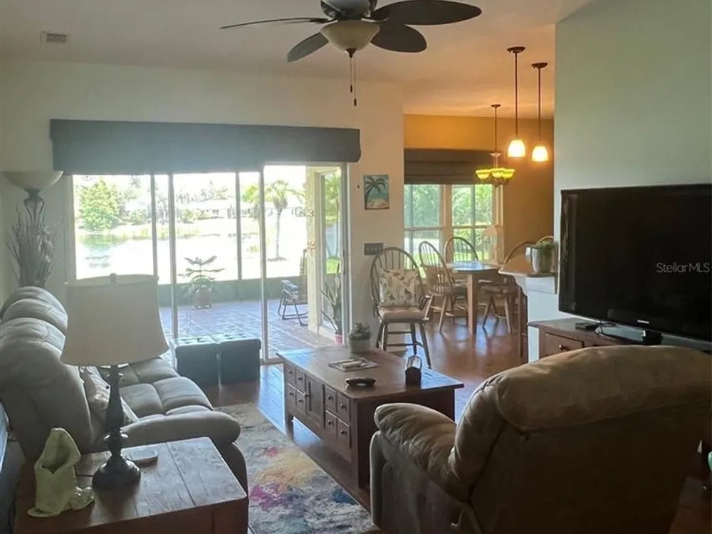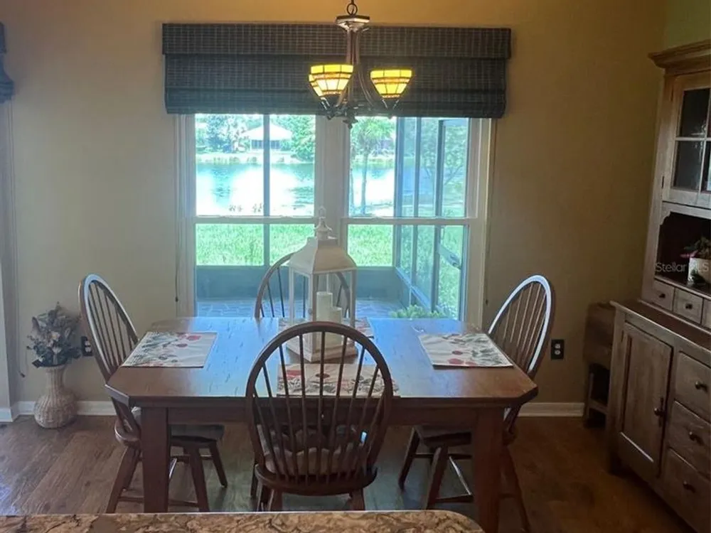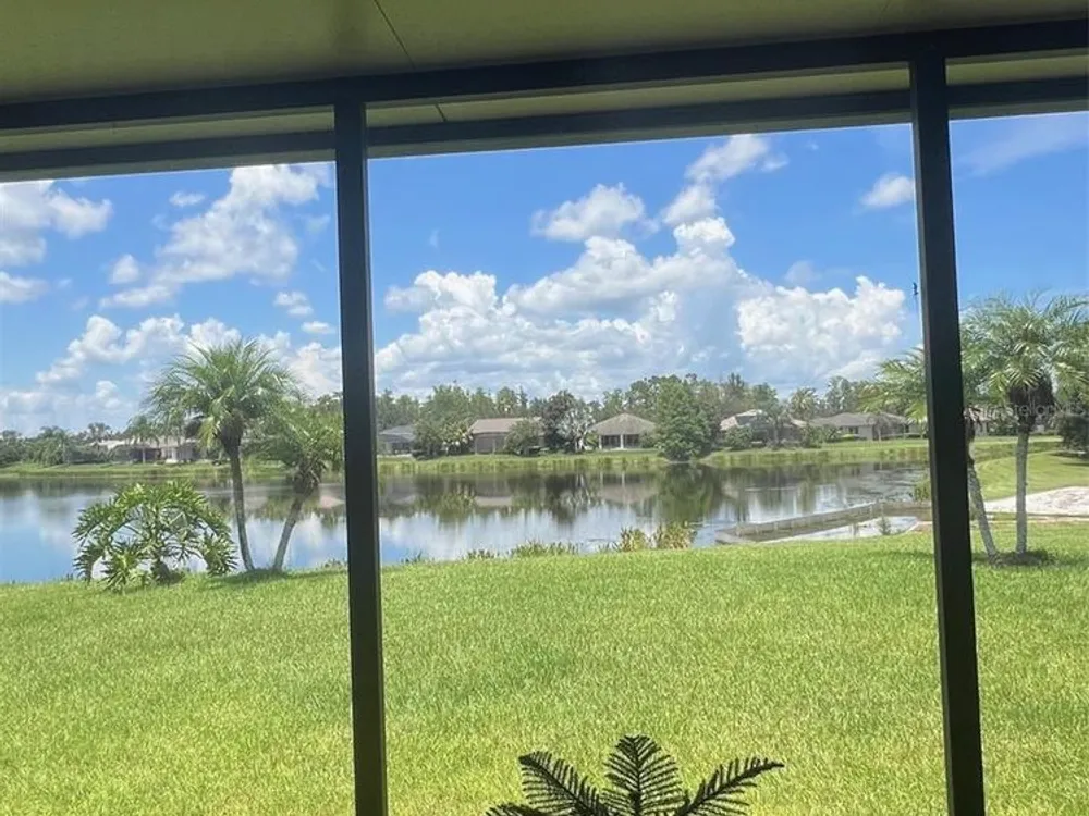 This well kept Allegro model is located on a pond with beautiful views from your Lanai, dining room, living room and primary bedroom. No carpet. All flooring is covered in ceramic tile and upgraded wood laminate.New roof installed in February of 2025. New windows installed in 2022. New A/C installed in 2021. Water heater is original. Home exterior was last painted in 2020. All gutters have gutter guards to keep leaves out. Furniture is available for purchase outside of contract.