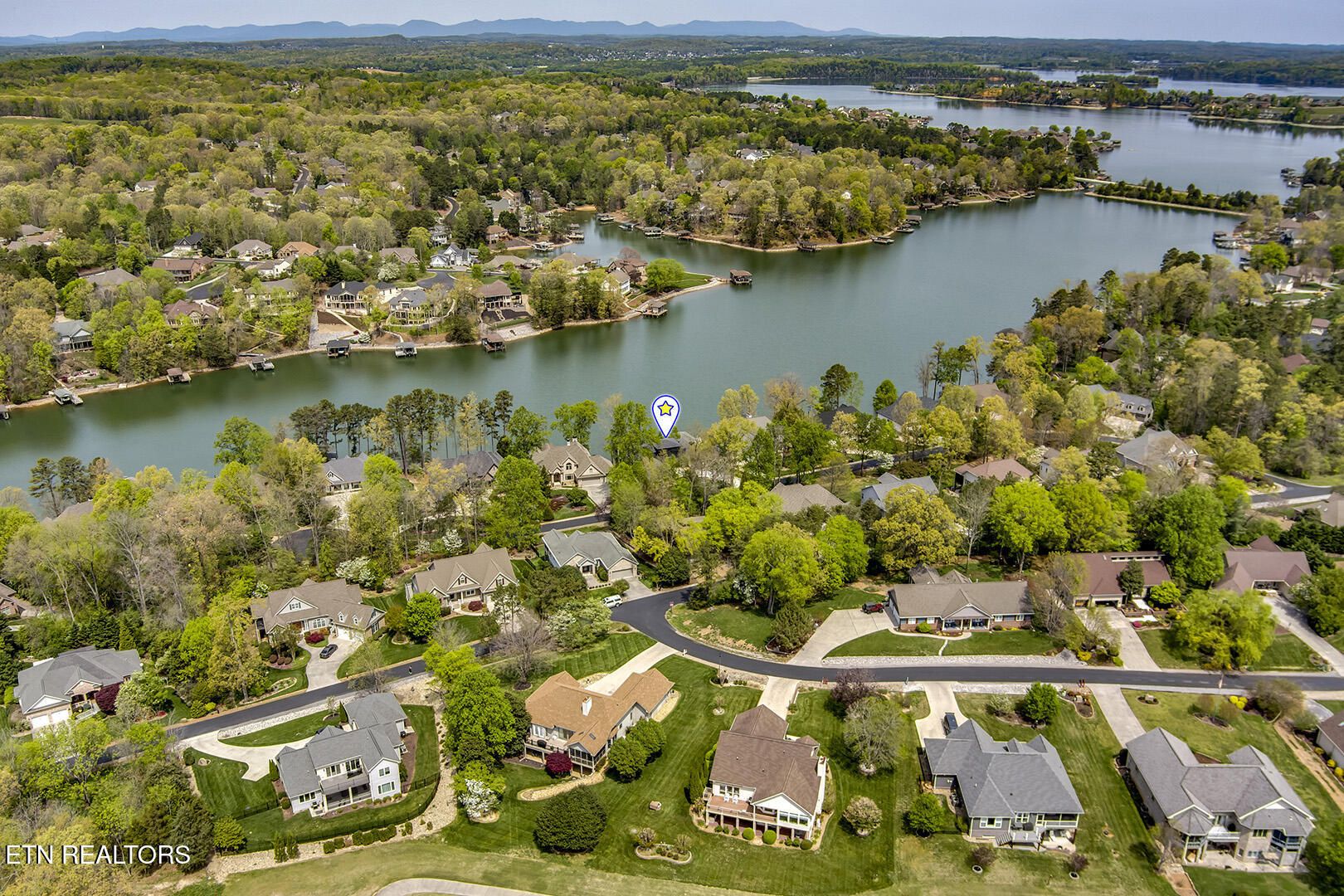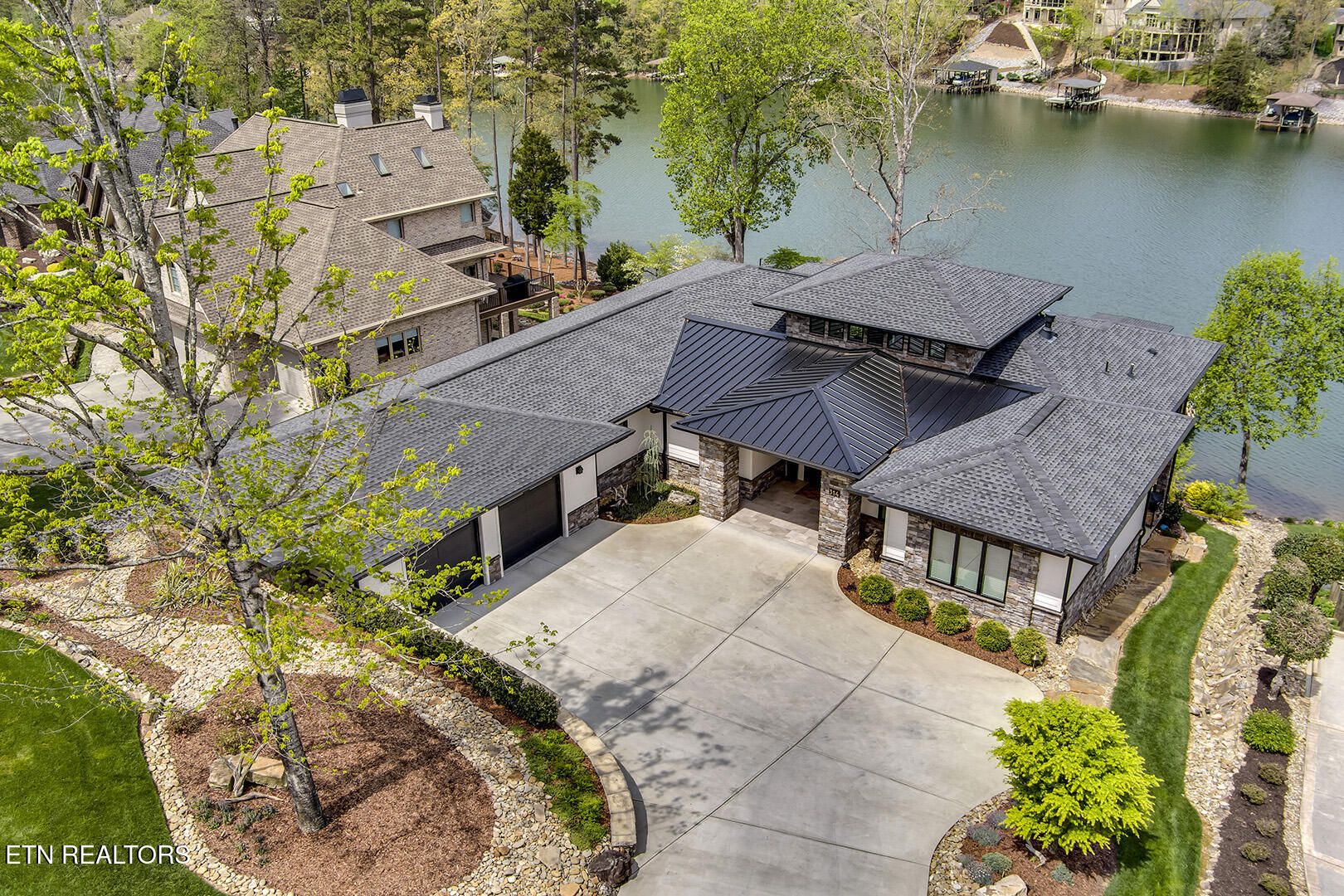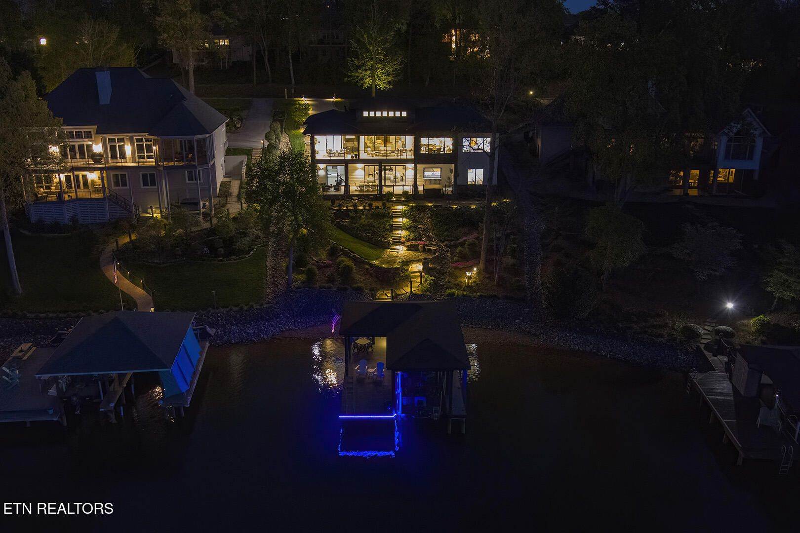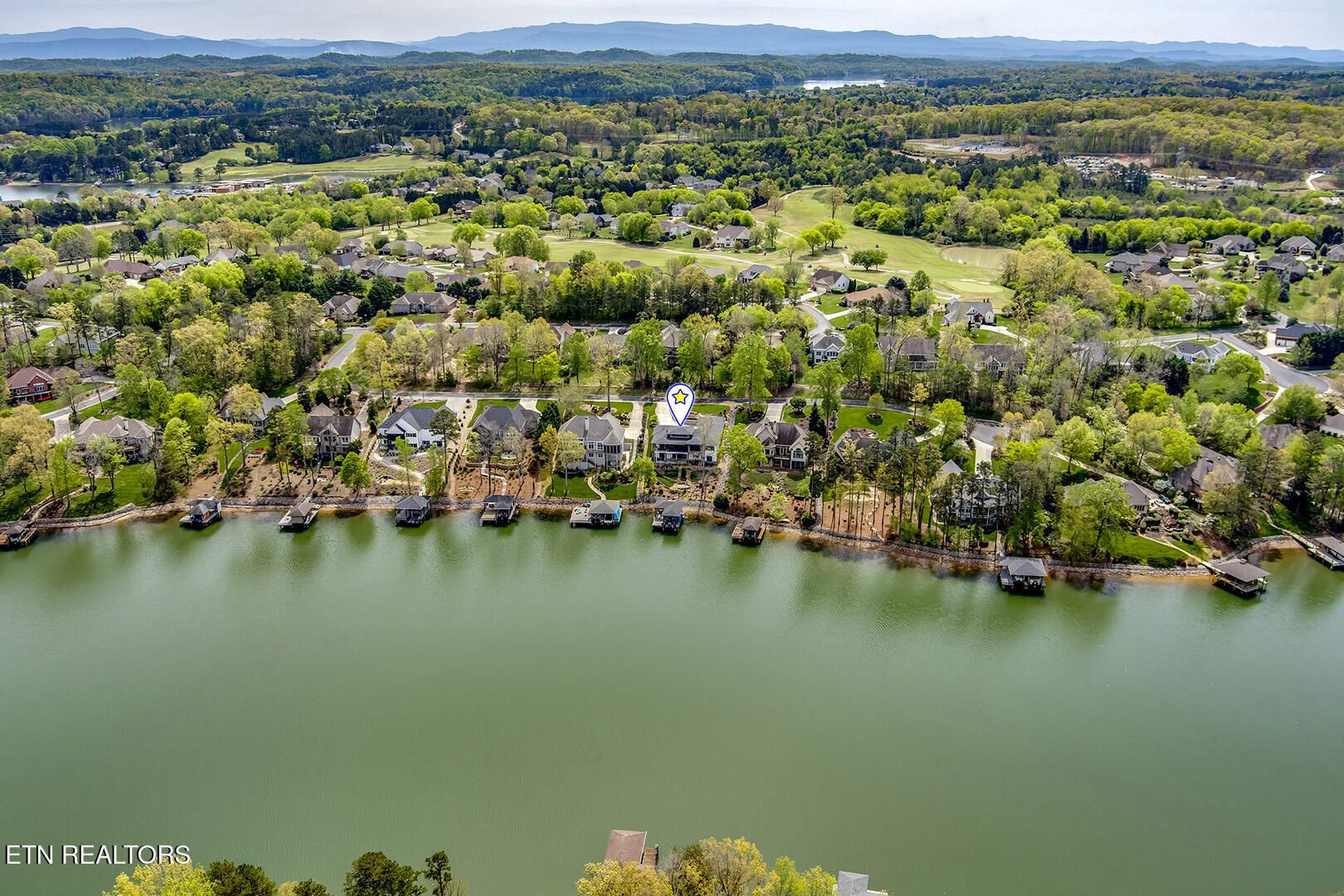 Lakefront Luxury Estate in Tellico Village. Experience the Pinnacle of Lakefront Living in this 2022 Parade of Homes masterpiece, ideally located to showcase breathtaking views of the tranquil Ski Cove in the Tommotley Neighborhood at the sought-after north end of the Village. With over 4,600 square feet of elegant design, this estate brings together expansive entertaining areas and the convenience of main-level zero-threshold living along with elevator access to the walkout lower level. You have Sophisticated Interiors and Main-Level Retreats. Step into an inviting open-concept sanctuary, highlighted by a stunning gas linear fireplace and expansive floor-to-ceiling windows. The main floor is thoughtfully designed with two lavish primary suites and a professional office featuring partner built-in desks. The premier master retreat provides a spa-like ambiance with a custom walk-in shower, heated flooring, and a heated towel rack. The secondary master suite offers a beautiful built-in steam shower. Every bedroom is equipped with a private ensuite bathroom, each finished with high-end tile, fixtures, and hardware. You have Exceptional Kitchens and Entertaining Spaces. The chef's kitchen stands out with its spacious layout, incorporating premium Monogram appliances, a generous walk-in butler's pantry, and ample storage. The lower level is designed for entertaining, featuring a second full kitchen and bar with a distinctive flip-out window for effortless indoor-outdoor service. The home is wired for sound and includes a central vacuum system and geothermal heating and cooling, ensuring a comfortable, low-maintenance environment suitable for any gathering. Outdoor Amenities and Lake Access. Outdoors, professionally landscaped and lighted grounds guide you to a first-class private dock. Designed for the ultimate lake lifestyle, the dock is equipped with a slip and lift for a 23-ft boat, dedicated jet ski and kayak lifts, and more. The oversized garage is meticulously organized with built-in cabinets and a spacious utility sink. This home was Crafted for Excellence. From designer finishes to deep-water access, every aspect of this Tellico Village estate is designed for those who seek the very best in life.