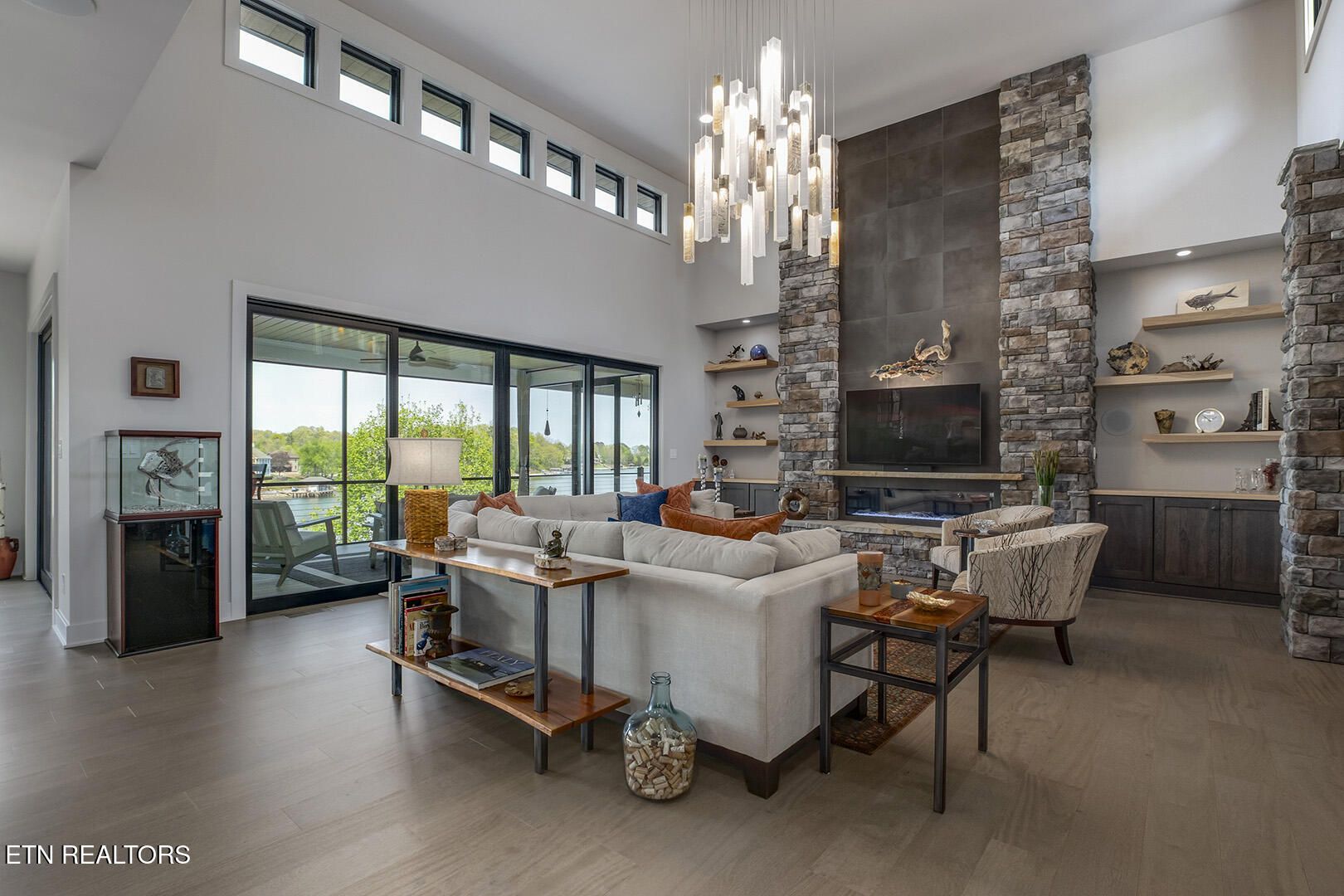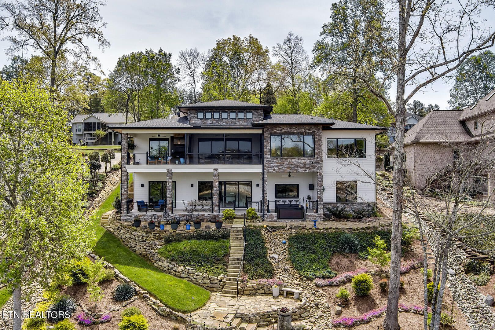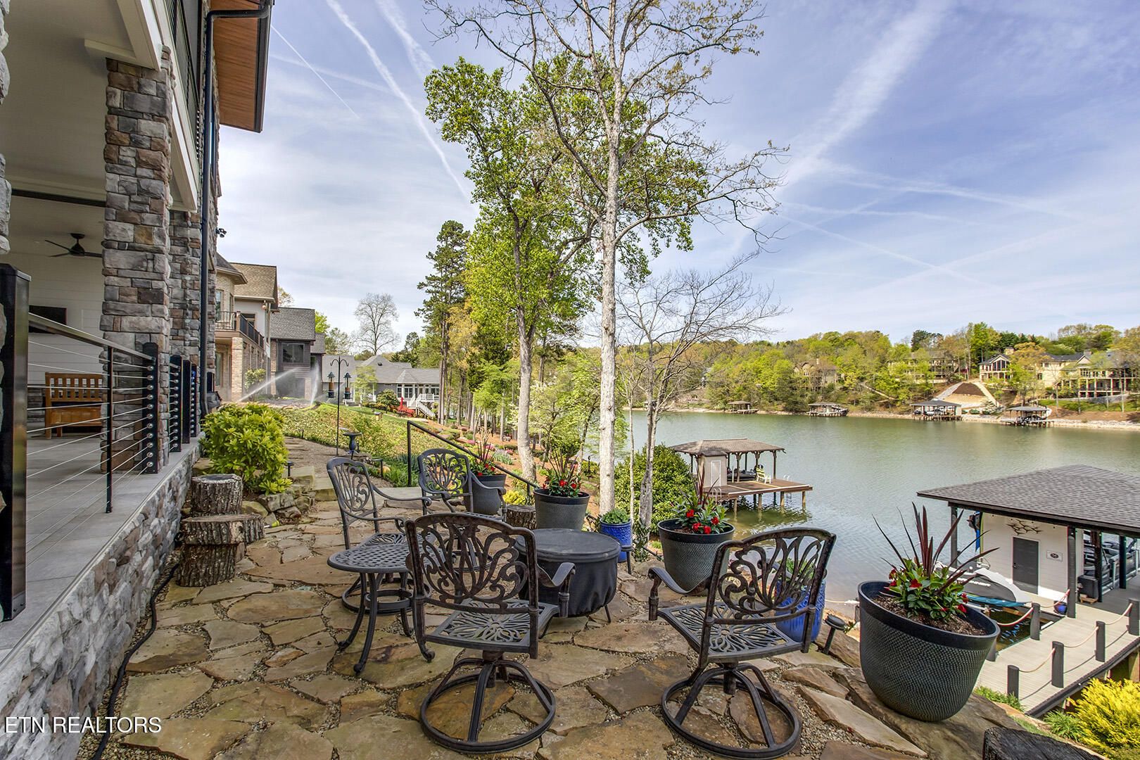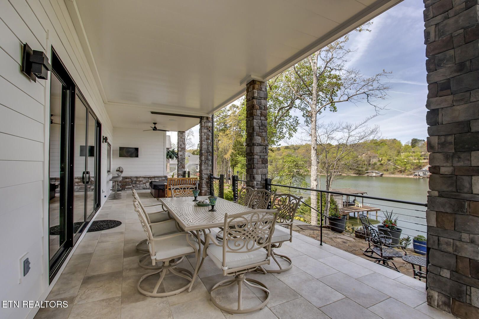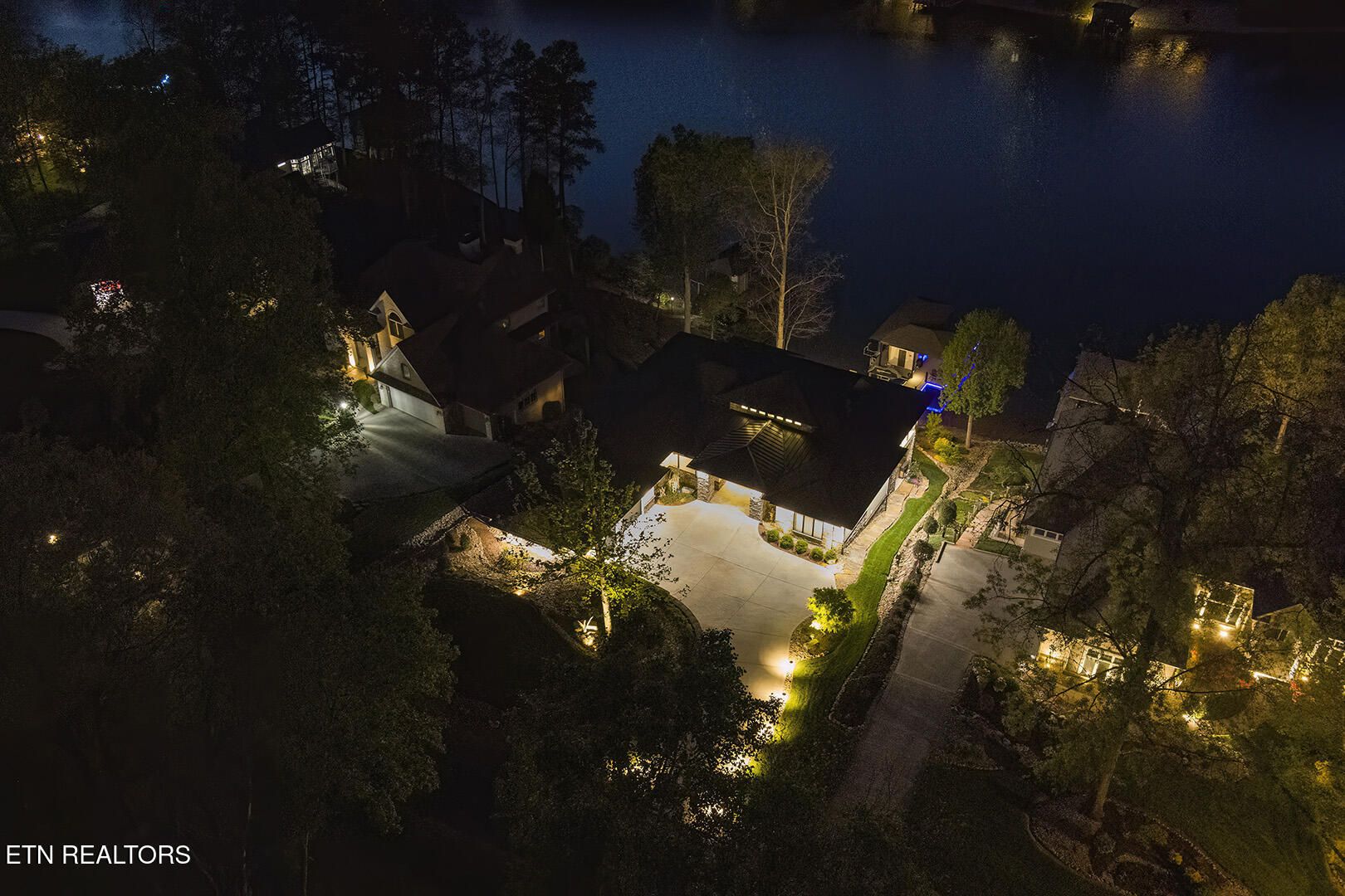 Lakefront Luxury Estate in Tellico Village. Experience the Pinnacle of Lakefront Living in this 2022 Parade of Homes masterpiece, ideally located to showcase breathtaking views of the tranquil Ski Cove in the Tommotley Neighborhood at the sought-after north end of the Village. With over 4,600 square feet of elegant design, this estate brings together expansive entertaining areas and the convenience of main-level zero-threshold living along with elevator access to the walkout lower level. You have Sophisticated Interiors and Main-Level Retreats. Step into an inviting open-concept sanctuary, highlighted by a stunning gas linear fireplace and expansive floor-to-ceiling windows. The main floor is thoughtfully designed with two lavish primary suites and a professional office featuring partner built-in desks. The premier master retreat provides a spa-like ambiance with a custom walk-in shower, heated flooring, and a heated towel rack. The secondary master suite offers a beautiful built-in steam shower. Every bedroom is equipped with a private ensuite bathroom, each finished with high-end tile, fixtures, and hardware. You have Exceptional Kitchens and Entertaining Spaces. The chef's kitchen stands out with its spacious layout, incorporating premium Monogram appliances, a generous walk-in butler's pantry, and ample storage. The lower level is designed for entertaining, featuring a second full kitchen and bar with a distinctive flip-out window for effortless indoor-outdoor service. The home is wired for sound and includes a central vacuum system and geothermal heating and cooling, ensuring a comfortable, low-maintenance environment suitable for any gathering. Outdoor Amenities and Lake Access. Outdoors, professionally landscaped and lighted grounds guide you to a first-class private dock. Designed for the ultimate lake lifestyle, the dock is equipped with a slip and lift for a 23-ft boat, dedicated jet ski and kayak lifts, and more. The oversized garage is meticulously organized with built-in cabinets and a spacious utility sink. This home was Crafted for Excellence. From designer finishes to deep-water access, every aspect of this Tellico Village estate is designed for those who seek the very best in life.