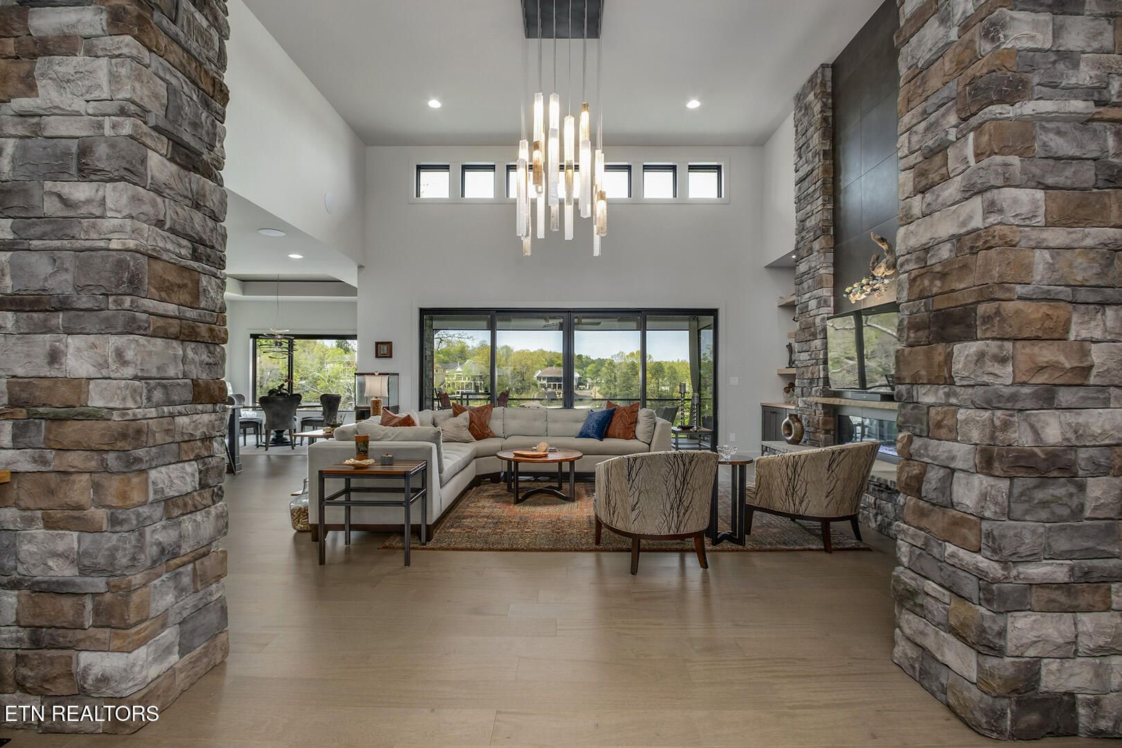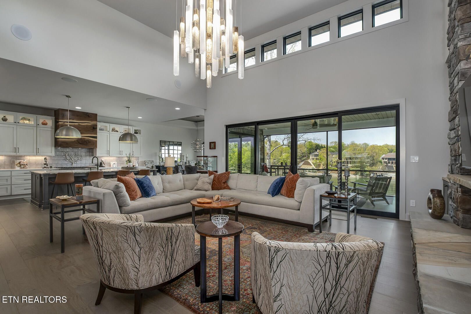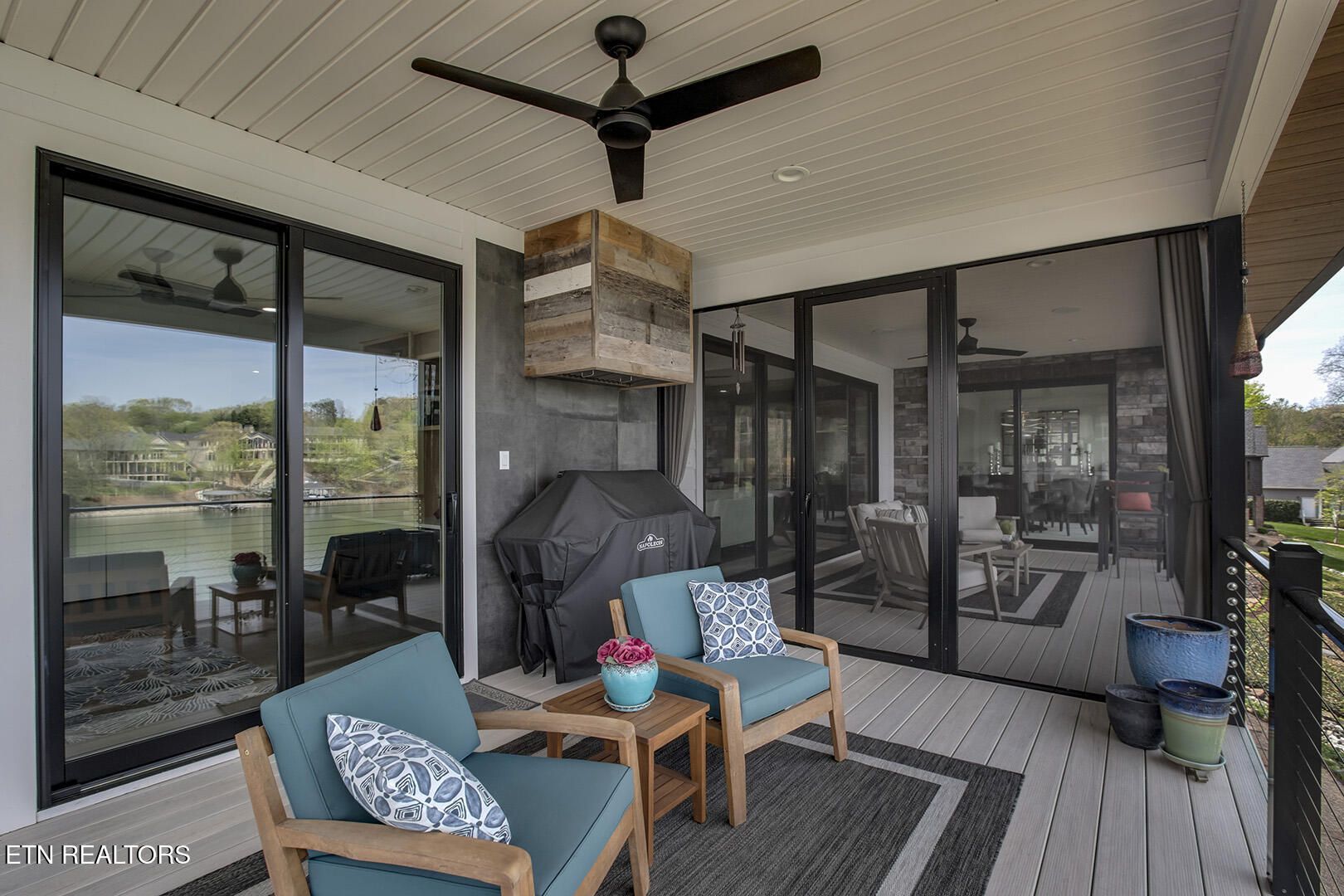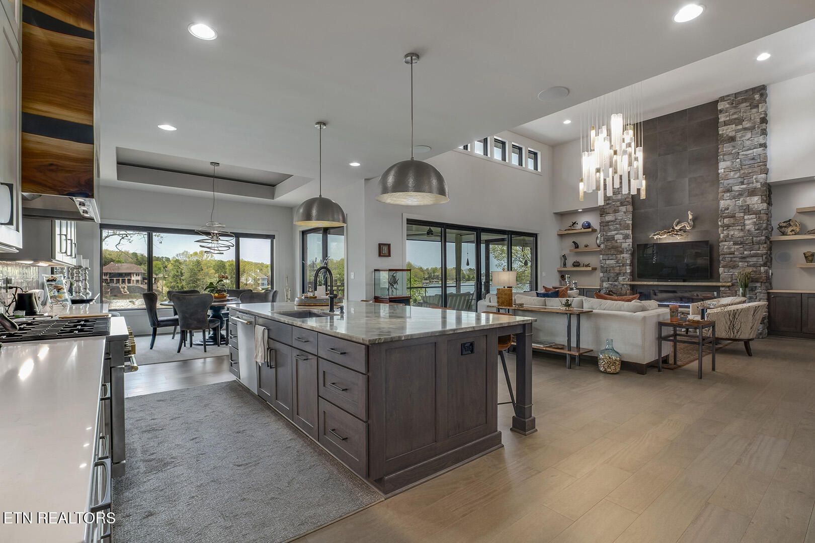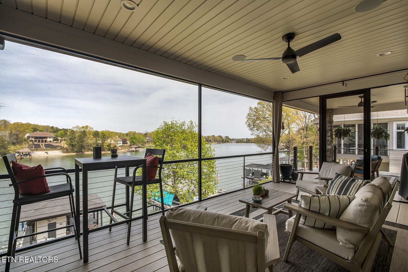Lakefront Luxury Estate in Tellico Village. Experience the Pinnacle of Lakefront Living in this 2022 Parade of Homes masterpiece, ideally located to showcase breathtaking views of the tranquil Ski Cove in the Tommotley Neighborhood at the sought-after north end of the Village. With over 4,600 square feet of elegant design, this estate brings together expansive entertaining areas and the convenience of main-level zero-threshold living along with elevator access to the walkout lower level. You have Sophisticated Interiors and Main-Level Retreats. Step into an inviting open-concept sanctuary, highlighted by a stunning gas linear fireplace and expansive floor-to-ceiling windows. The main floor is thoughtfully designed with two lavish primary suites and a professional office featuring partner built-in desks. The premier master retreat provides a spa-like ambiance with a custom walk-in shower, heated flooring, and a heated towel rack. The secondary master suite offers a beautiful built-in steam shower. Every bedroom is equipped with a private ensuite bathroom, each finished with high-end tile, fixtures, and hardware. You have Exceptional Kitchens and Entertaining Spaces. The chef's kitchen stands out with its spacious layout, incorporating premium Monogram appliances, a generous walk-in butler's pantry, and ample storage. The lower level is designed for entertaining, featuring a second full kitchen and bar with a distinctive flip-out window for effortless indoor-outdoor service. The home is wired for sound and includes a central vacuum system and geothermal heating and cooling, ensuring a comfortable, low-maintenance environment suitable for any gathering. Outdoor Amenities and Lake Access. Outdoors, professionally landscaped and lighted grounds guide you to a first-class private dock. Designed for the ultimate lake lifestyle, the dock is equipped with a slip and lift for a 23-ft boat, dedicated jet ski and kayak lifts, and more. The oversized garage is meticulously organized with built-in cabinets and a spacious utility sink. This home was Crafted for Excellence. From designer finishes to deep-water access, every aspect of this Tellico Village estate is designed for those who seek the very best in life.