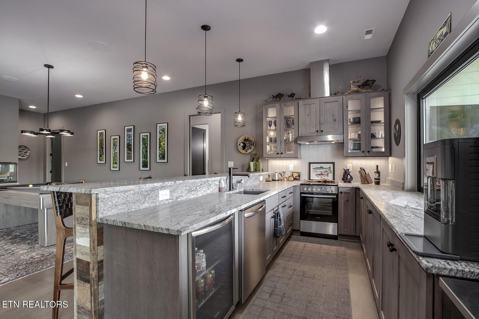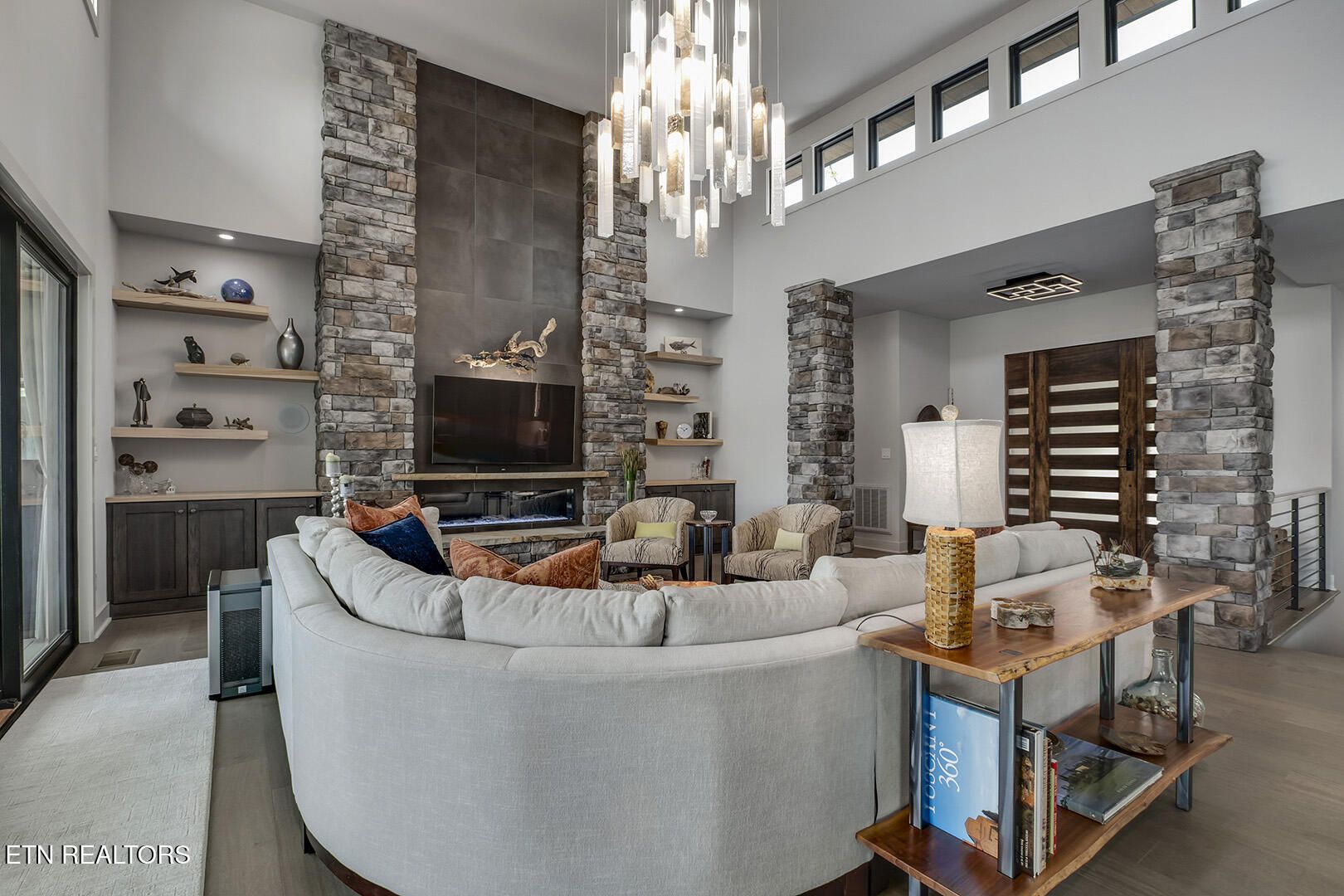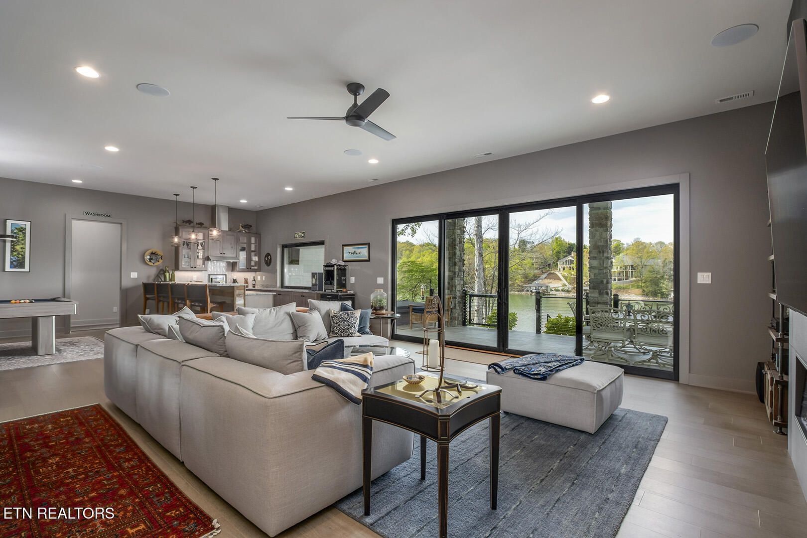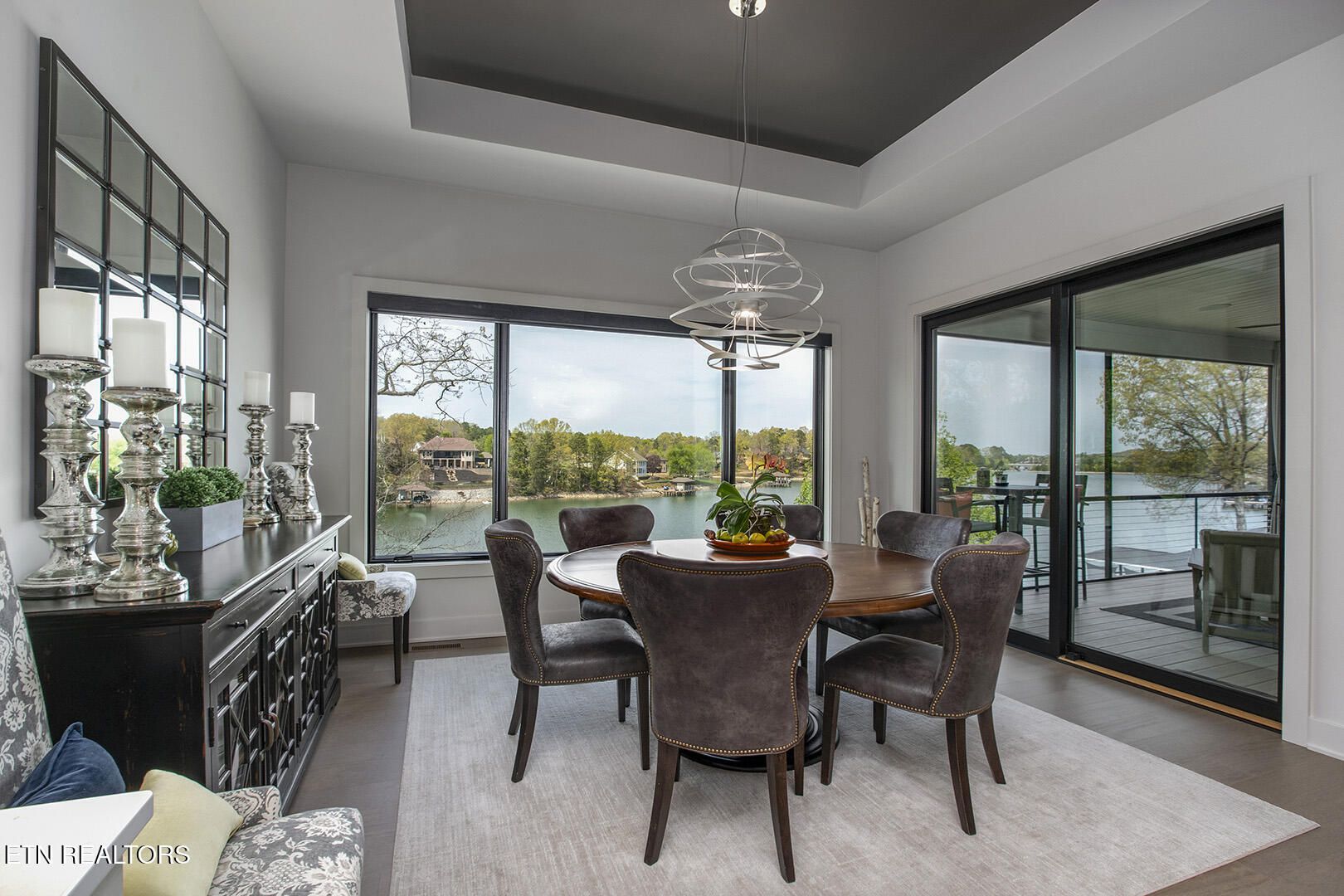 Lakefront Luxury Estate in Tellico Village. Experience the Pinnacle of Lakefront Living in this 2022 Parade of Homes masterpiece, ideally located to showcase breathtaking views of the tranquil Ski Cove in the Tommotley Neighborhood at the sought-after north end of the Village. With over 4,600 square feet of elegant design, this estate brings together expansive entertaining areas and the convenience of main-level zero-threshold living along with elevator access to the walkout lower level. You have Sophisticated Interiors and Main-Level Retreats. Step into an inviting open-concept sanctuary, highlighted by a stunning gas linear fireplace and expansive floor-to-ceiling windows. The main floor is thoughtfully designed with two lavish primary suites and a professional office featuring partner built-in desks. The premier master retreat provides a spa-like ambiance with a custom walk-in shower, heated flooring, and a heated towel rack. The secondary master suite offers a beautiful built-in steam shower. Every bedroom is equipped with a private ensuite bathroom, each finished with high-end tile, fixtures, and hardware. You have Exceptional Kitchens and Entertaining Spaces. The chef's kitchen stands out with its spacious layout, incorporating premium Monogram appliances, a generous walk-in butler's pantry, and ample storage. The lower level is designed for entertaining, featuring a second full kitchen and bar with a distinctive flip-out window for effortless indoor-outdoor service. The home is wired for sound and includes a central vacuum system and geothermal heating and cooling, ensuring a comfortable, low-maintenance environment suitable for any gathering. Outdoor Amenities and Lake Access. Outdoors, professionally landscaped and lighted grounds guide you to a first-class private dock. Designed for the ultimate lake lifestyle, the dock is equipped with a slip and lift for a 23-ft boat, dedicated jet ski and kayak lifts, and more. The oversized garage is meticulously organized with built-in cabinets and a spacious utility sink. This home was Crafted for Excellence. From designer finishes to deep-water access, every aspect of this Tellico Village estate is designed for those who seek the very best in life.